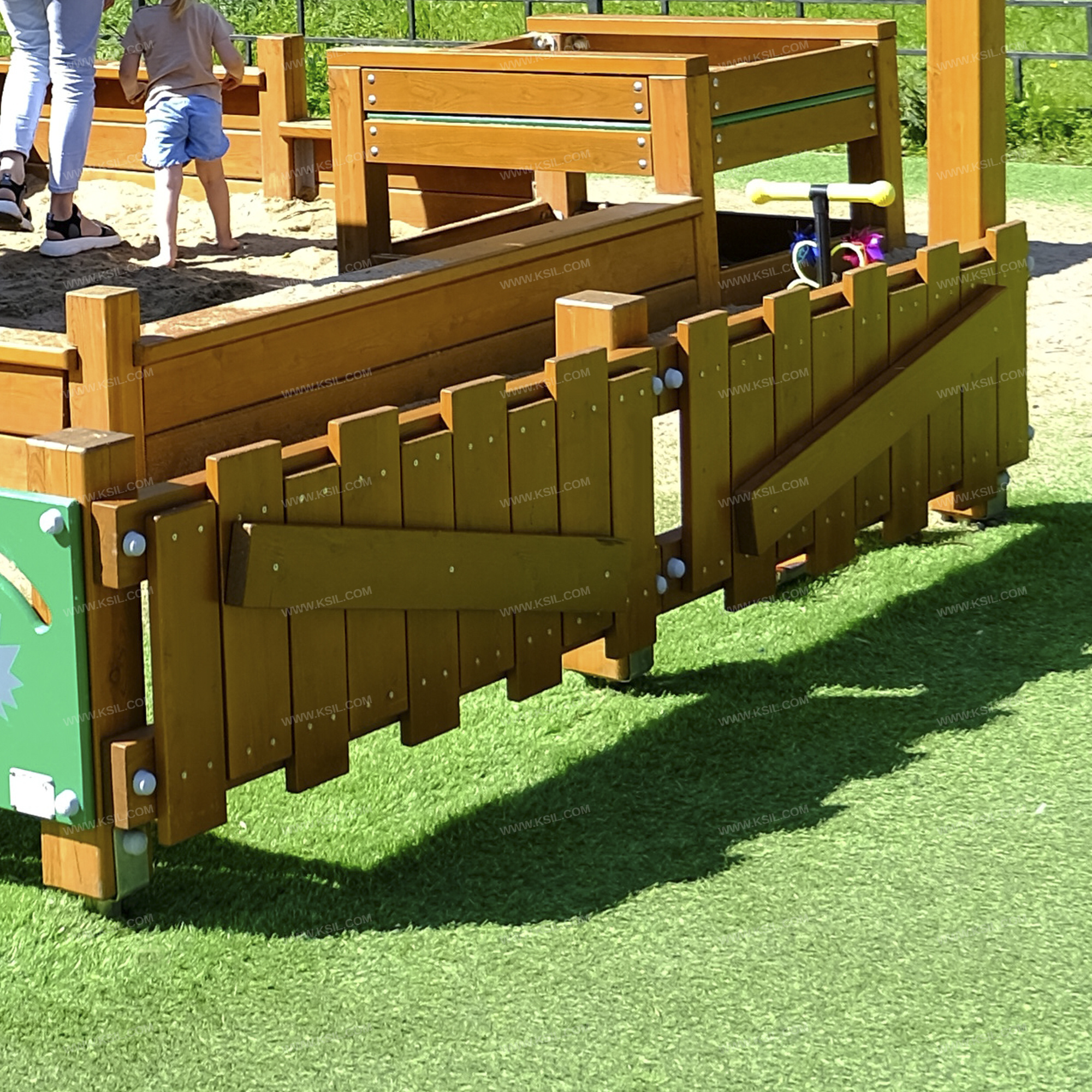 Деревянные доски лиственницы должны быть подвергнуты специальной обработке и сушке до мебельной влажности 7-10% для придания особой прочности несущим конструкциям.Материалы из древесины не должны иметь на поверхности дефектов обработки. Весь крепеж должен быть оцинкован, все углы закруглены радиусом не менее 3 мм. Промежутки и стыки между элементами оборудования не должны допускать застревания частей тела и одежды пользователей. В конструкции должна быть предусмотрена возможность доступа взрослого при обстоятельствах, требующих посторонней помощи пользователю.C целью повышения качества и безопасности продукции, в документацию на изделие могут вноситься изменения (изображение, размеры, и т.п.).