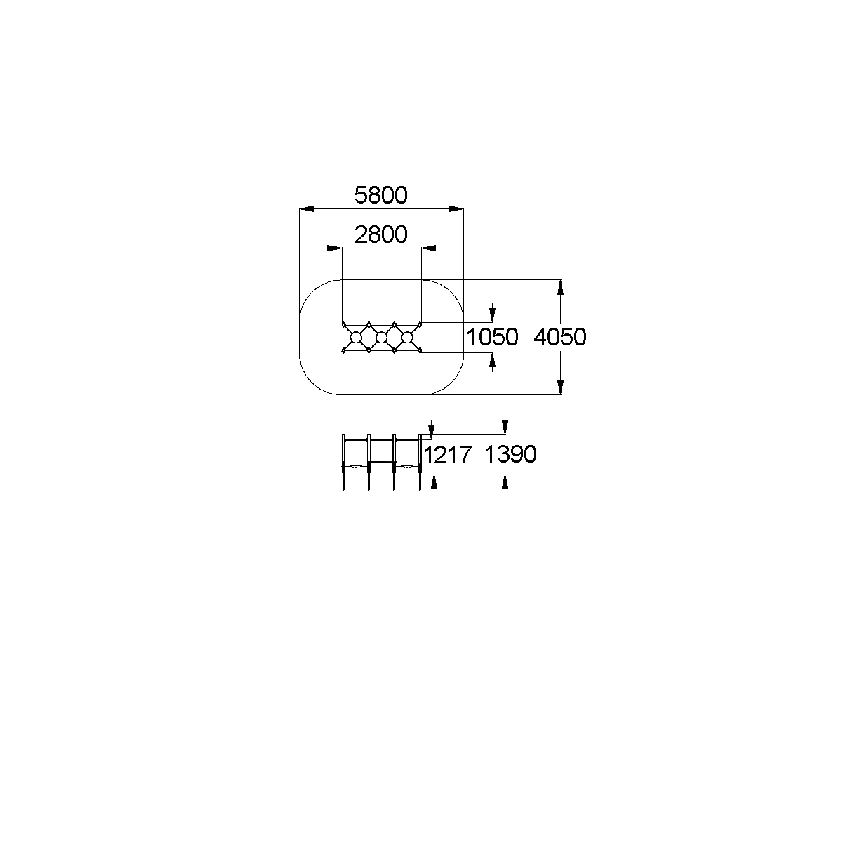 - Габаритные размеры: 2800x1050x1390 мм