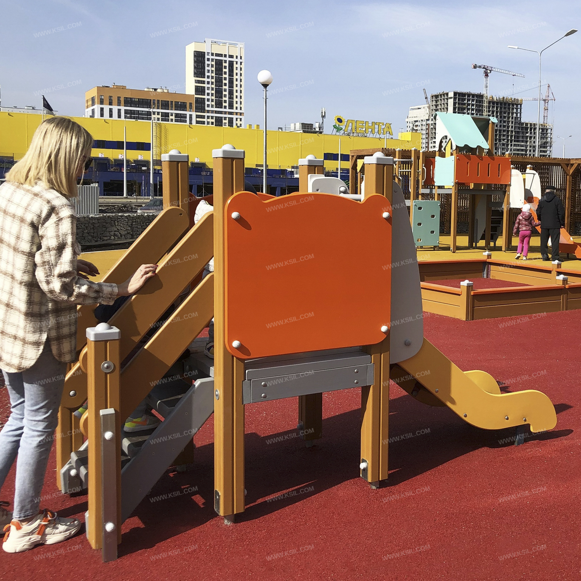 Металлические элементы должны быть покрыты порошковыми красками или подвергнуты гальванизации. Сварные швы должны быть гладкими и исключать возможность травмирования пользователей при контакте. Металлические элементы конструкции не должны состоять из нескольких частей, соединенных между собой.Весь крепеж должен быть оцинкован, все углы закруглены радиусом не менее 3 мм. Концы труб должны быть закрыты.Деревянный брус должен быть склеен под прессом из нескольких отборных сосновых досок, подвергнутых специальной обработке и сушке до мебельной влажности 7-10% для придания особой прочности несущим конструкциям.Деревянные доски хвойных пород дерева должны быть подвергнуты специальной обработке и сушке до мебельной влажности 7-10% для придания особой прочности несущим конструкциямФанера влагостойкая не ниже I сорта изготовленная из шлифованного березового шпона повышенной водостойкости, склеенного клеем класса эмиссии Е1 с предварительной заделкой (замазкой или вставками) естественных дефектов древесины.Материалы из древесины не должны иметь на поверхности дефектов обработки. Концы труб должны быть закрыты. Заглушки пластиковые на места резьбовых соединений и крышки на верхние основания несущих столбов.Промежутки и стыки между элементами оборудования не должны допускать застревания частей тела и одежды пользователей. В конструкции должна быть предусмотрена возможность доступа взрослого при обстоятельствах, требующих посторонней помощи пользователю.C целью повышения качества и безопасности продукции, в документацию на изделие могут вноситься изменения (изображение, размеры, и т.п.).
