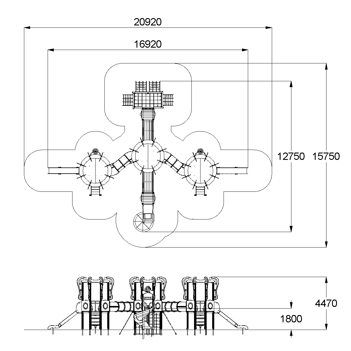 - Габаритные размеры: 16920x12750x4470 мм