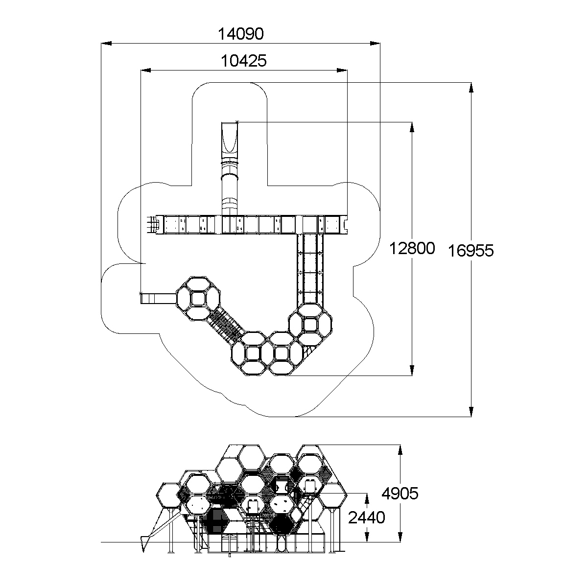 Металлические элементы должны быть покрыты порошковыми красками или подвергнуты гальванизации. Сварные швы должны быть гладкими и исключать возможность травмирования пользователей при контакте. Металлические элементы конструкции не должны состоять из нескольких частей, соединенных между собой.Весь крепеж должен быть оцинкован, все углы закруглены радиусом не менее 3 мм. Концы труб должны быть закрыты.Деревянный брус должен быть склеен под прессом из нескольких отборных сосновых досок, подвергнутых специальной обработке и сушке до мебельной влажности 7-10% для придания особой прочности несущим конструкциям.Деревянные доски хвойных пород дерева должны быть подвергнуты специальной обработке и сушке до мебельной влажности 7-10% для придания особой прочности несущим конструкциямФанера влагостойкая не ниже I сорта изготовленная из шлифованного березового шпона повышенной водостойкости, склеенного клеем класса эмиссии Е1 с предварительной заделкой (замазкой или вставками) естественных дефектов древесины.Материалы из древесины не должны иметь на поверхности дефектов обработки. Концы труб должны быть закрыты. Заглушки пластиковые на места резьбовых соединений и крышки на верхние основания несущих столбов.Промежутки и стыки между элементами оборудования не должны допускать застревания частей тела и одежды пользователей. В конструкции должна быть предусмотрена возможность доступа взрослого при обстоятельствах, требующих посторонней помощи пользователю.C целью повышения качества и безопасности продукции, в документацию на изделие могут вноситься изменения (изображение, размеры, и т.п.).