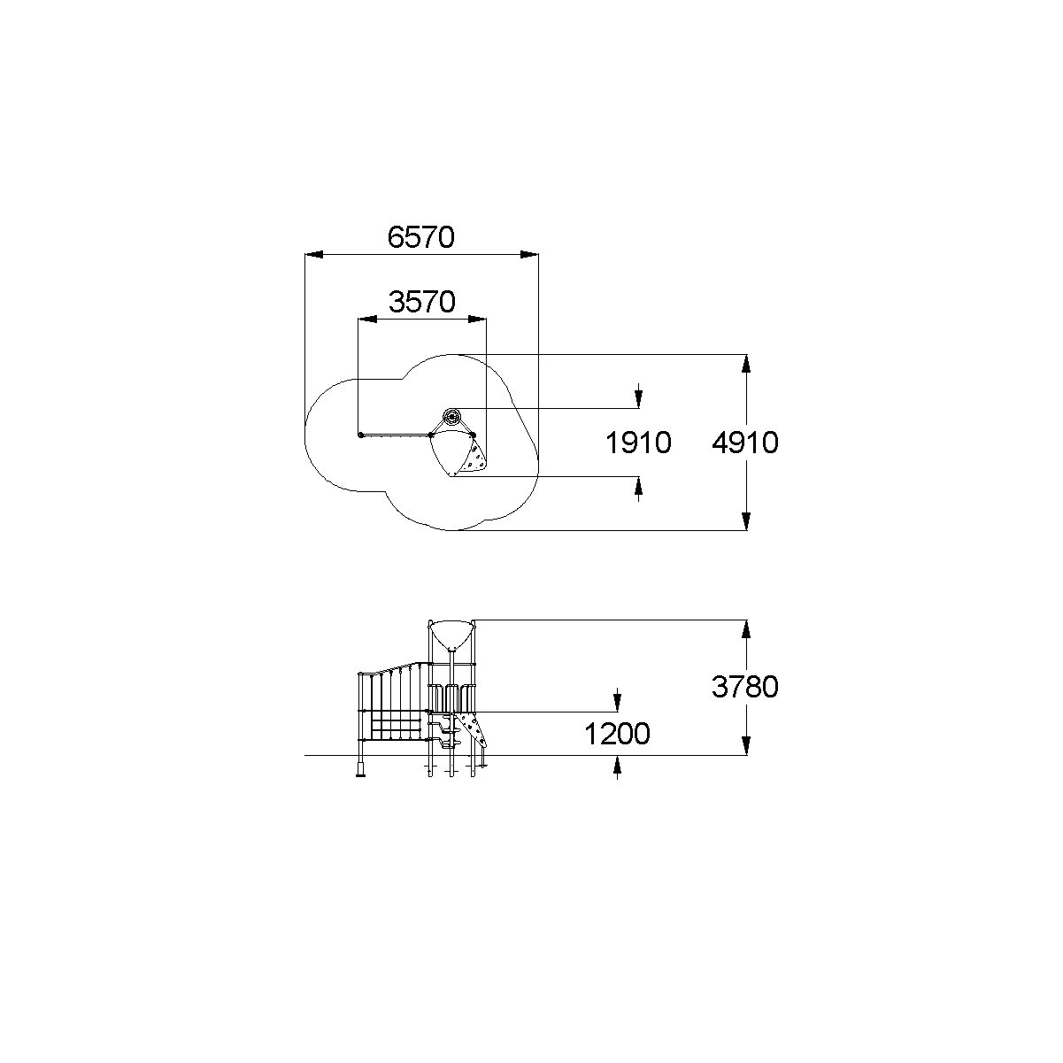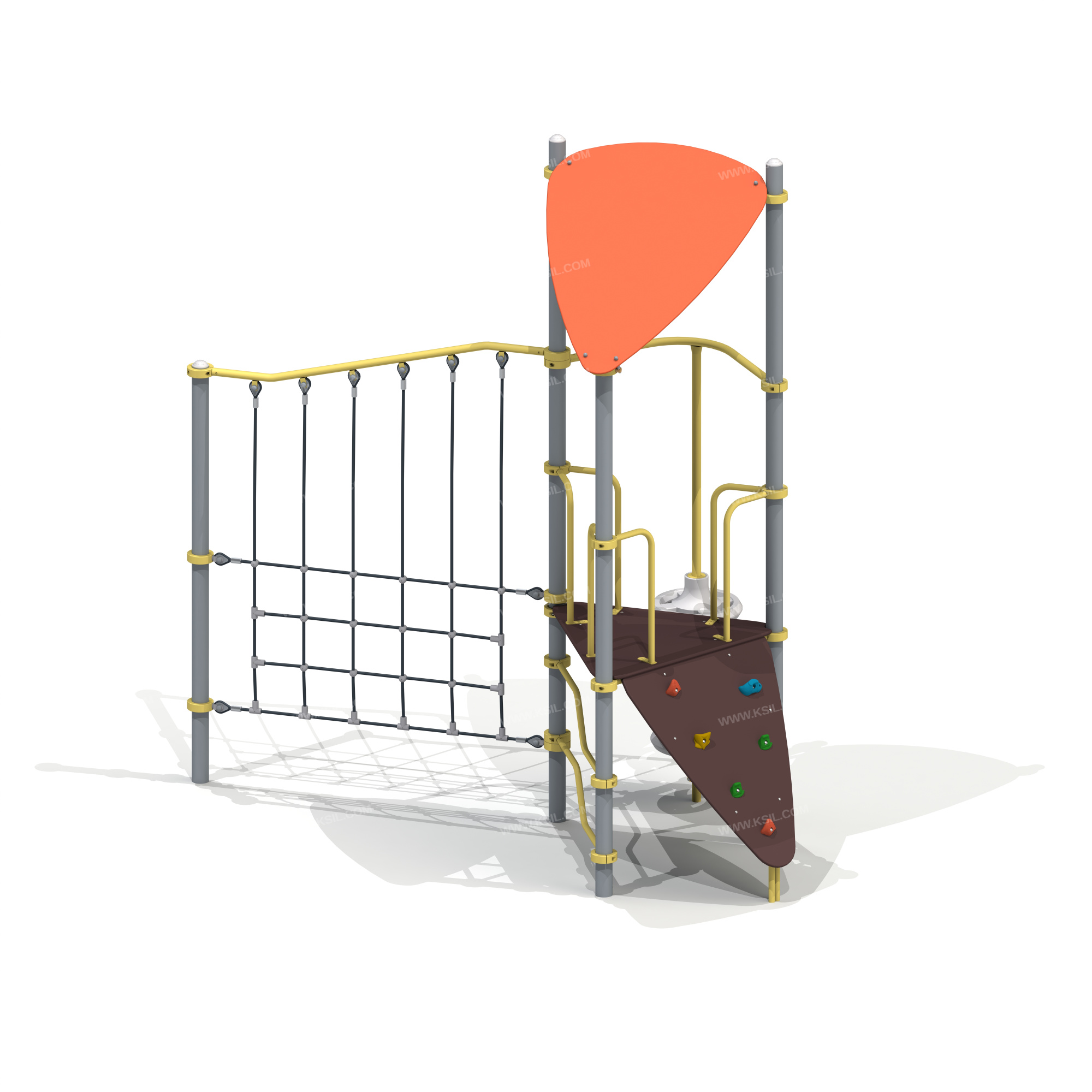 Игровой комплекс должен представлять собой модульную сборно-разборную конструкцию и состоять из башни с навесным оборудованием. Все навесное оборудование должно крепиться при помощи хомутов диаметром не менее 140 мм. Башня должна включать в себя: металлические ограждения в виде «Г» образного поручня, перекладины с перепадом, полипропиленовую сетку с перепадом, трап треугольной формы с захватами в виде камней и вертикальный шест с пластиковыми кольцами.Несущие столбы комплекса должны быть выполнены из металлической трубы диаметром не менее 88 мм. Сверху столб должен заканчиваться заглушкой, снизу столб должен бетонироваться в землю.Пол башни должен быть выполнен из влагостойкой противоскользящей фанеры толщиной не менее 21 мм. Трап должен быть выполнена из влагостойкой фанеры толщиной не менее 21 мм. с зацепами.Перекладины башни, ограждение виде «Г» образного поручня должны быть выполнены из металлической трубы диаметром не менее 33 мм. Сетка должна быть выполнена из полипропиленового 6-прядного армированного металлом каната тросовой свивки с резиновым сердечником, канат сетки должен быть диаметром не менее 16 мм и соединен между собой пластиковыми креплениями овальной формы. Шест с кольцами должен быть выполнен из металлической трубы диаметром не менее 48 мм. Кольца выполнены из пластика. Нижняя часть шеста бетонируется в землю. Навес над площадкой выполнен из фанера толщиной 21 мм.