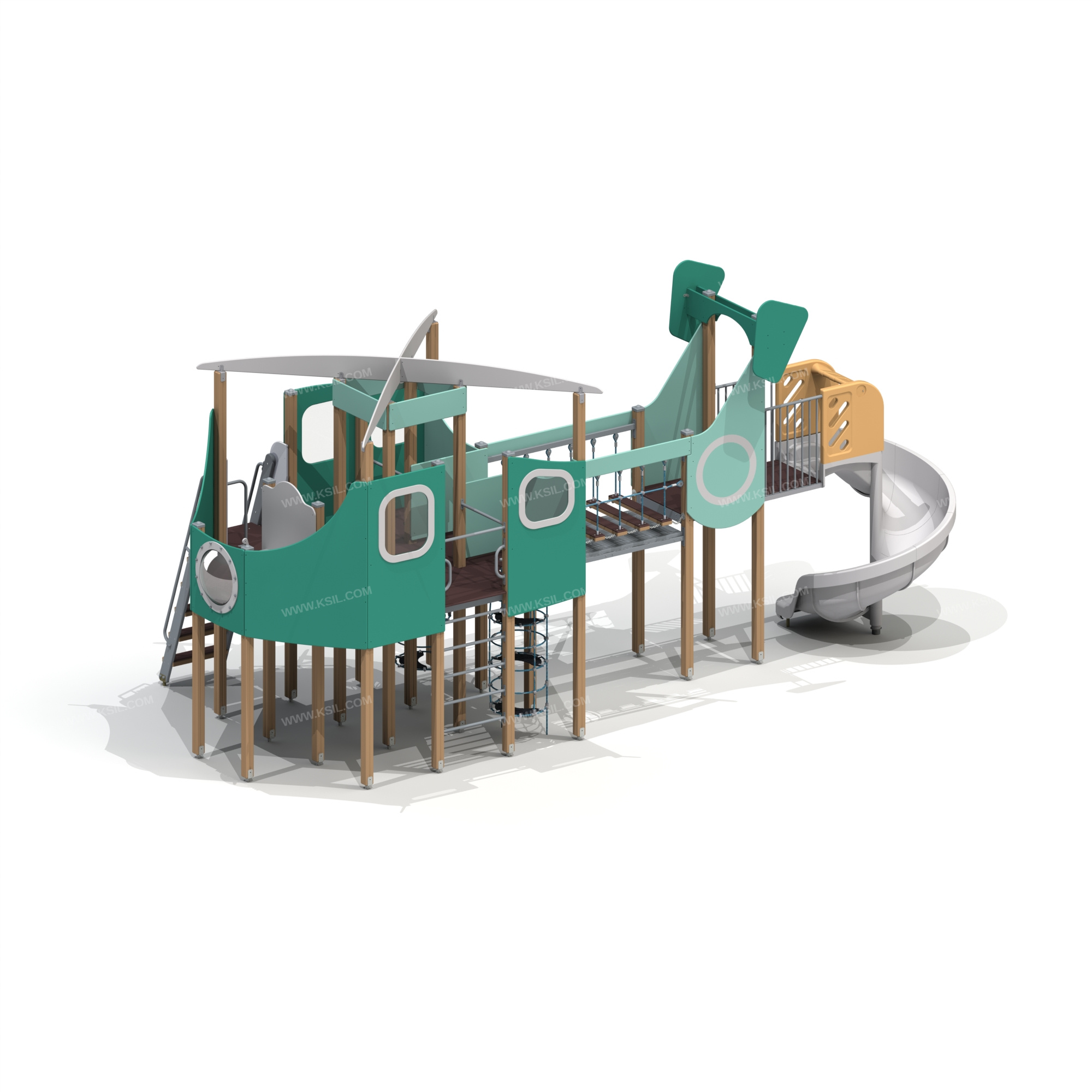 Детский игровой комплекс должен представлять собой модульную сборно-разборную конструкцию, состоящую из двух башен, соединенных между собой подвесным мостом.