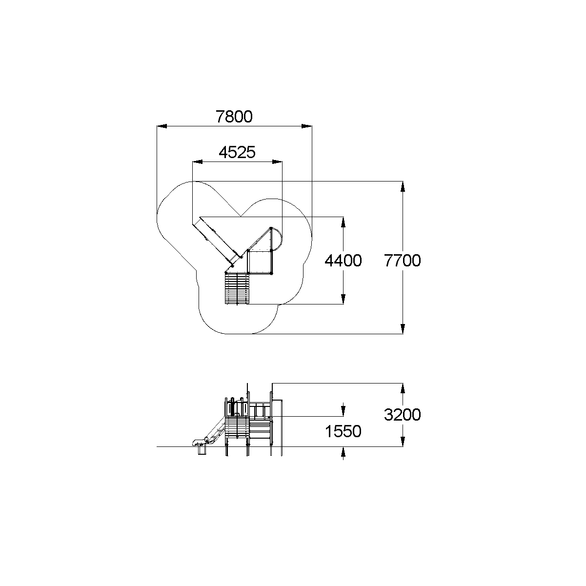 - Габаритные размеры: 4525x4400x3200 мм