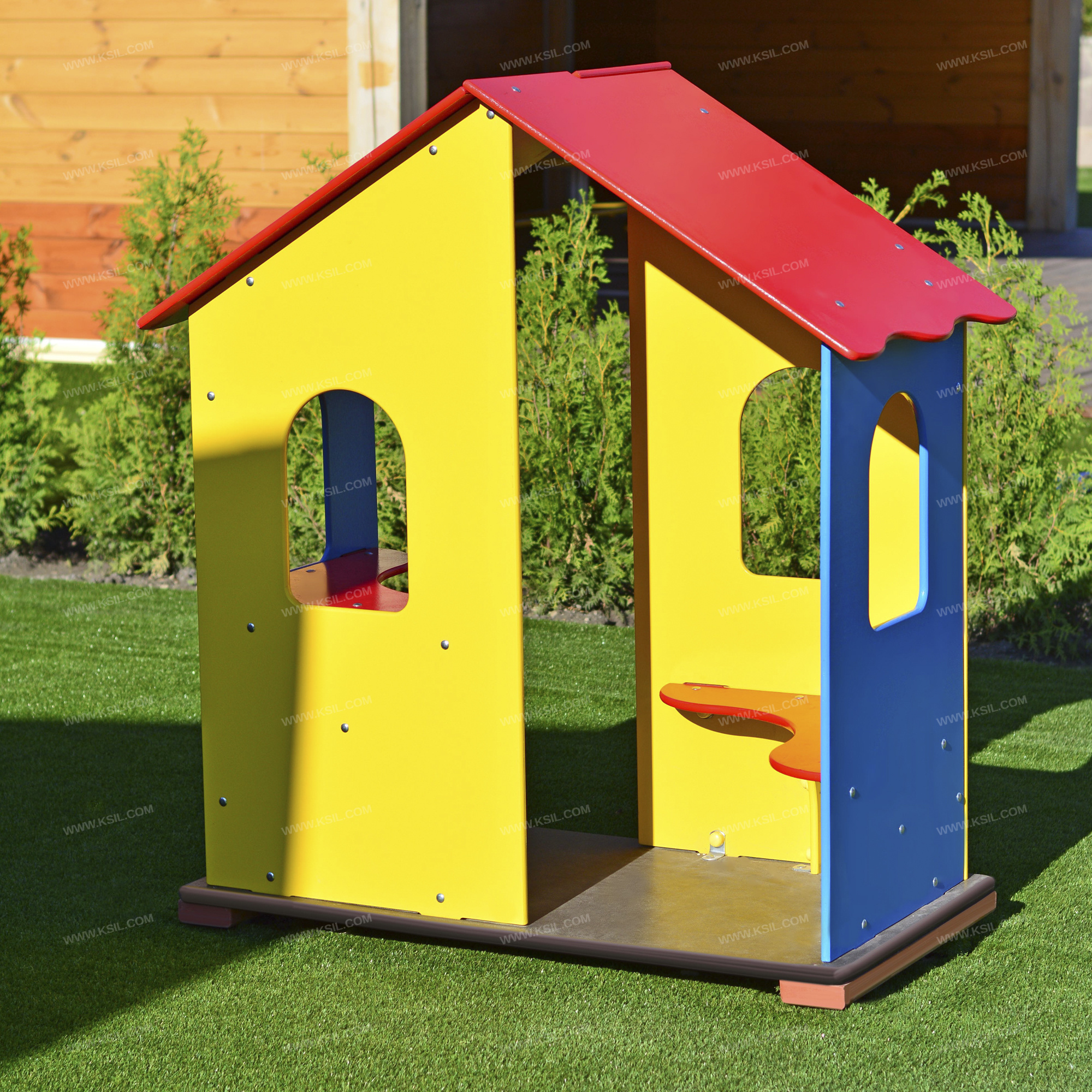 Домик – беседка должен представлять собой устойчивую модульную конструкцию, обеспечивающую ребенку комфортные условия для игры на открытом воздухе.Конструкция в виде домика должна иметь двухскатную крышу с волнообразной нижней гранью, два входа, 4 стенки с окошками, угловой стол и угловое сиденье изготовленных из влагостойкой фанеры толщиной не менее 21 мм.Пол домика должен быть выполнен из влагостойкой противоскользящей фанеры толщиной не менее 21 мм.