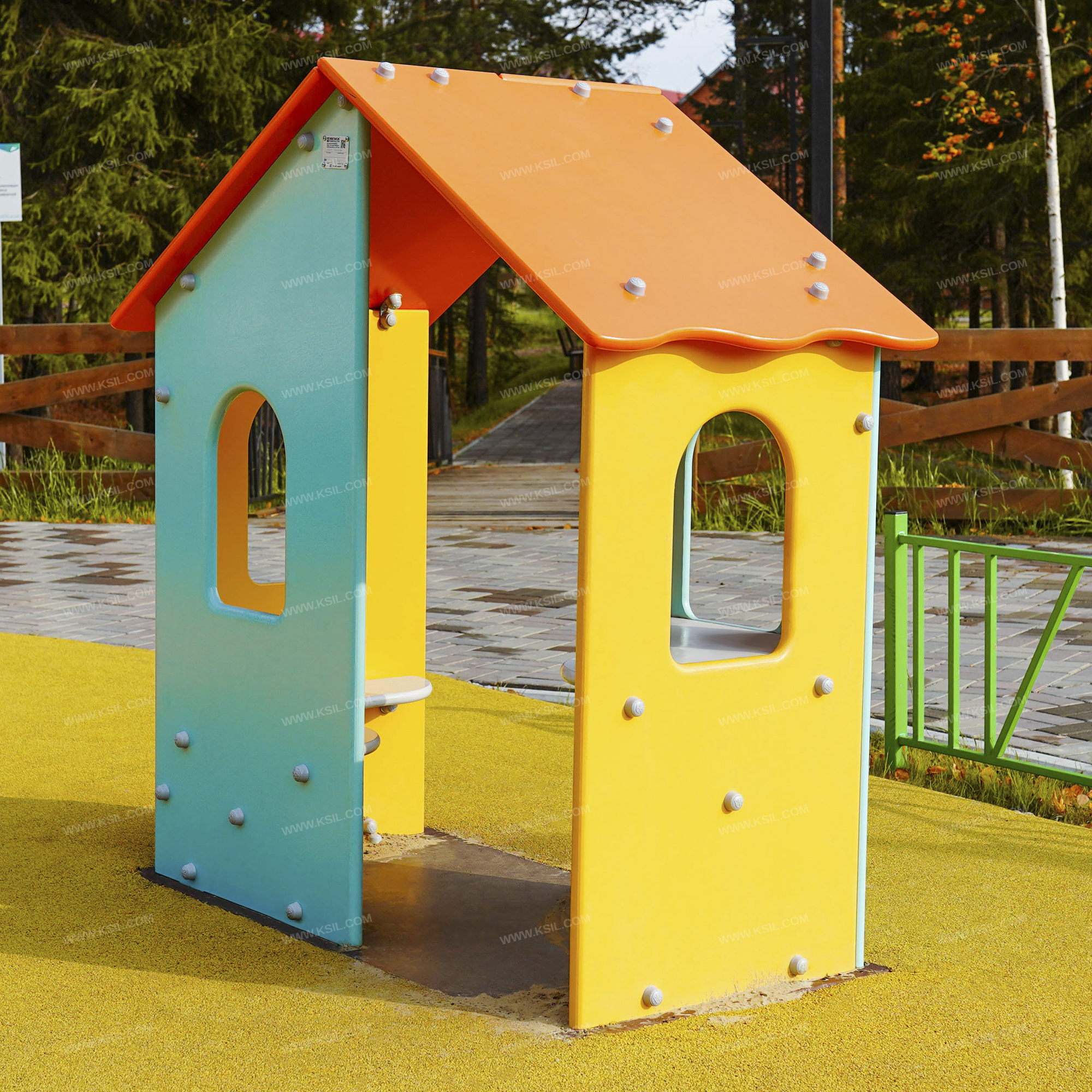 Металлические элементы должны быть покрыты порошковыми красками или подвергнуты гальванизации. Сварные швы должны быть гладкими и исключать возможность травмирования пользователей при контакте. Металлические элементы конструкции не должны состоять из нескольких частей, соединенных между собой.Весь крепеж должен быть оцинкован, все углы закруглены радиусом не менее 3 мм. Концы труб должны быть закрыты.Фанера влагостойкая не ниже I сорта изготовленная из шлифованного березового шпона повышенной водостойкости, склеенного клеем класса эмиссии Е1 с предварительной заделкой (замазкой или вставками) естественных дефектов древесины.Материалы из древесины не должны иметь на поверхности дефектов обработки. Концы труб должны быть закрыты. Заглушки пластиковые на места резьбовых соединений.Промежутки и стыки между элементами оборудования не должны допускать застревания частей тела и одежды пользователей. В конструкции должна быть предусмотрена возможность доступа взрослого при обстоятельствах, требующих посторонней помощи пользователю.C целью повышения качества и безопасности продукции, в документацию на изделие могут вноситься изменения (изображение, размеры, и т.п.).