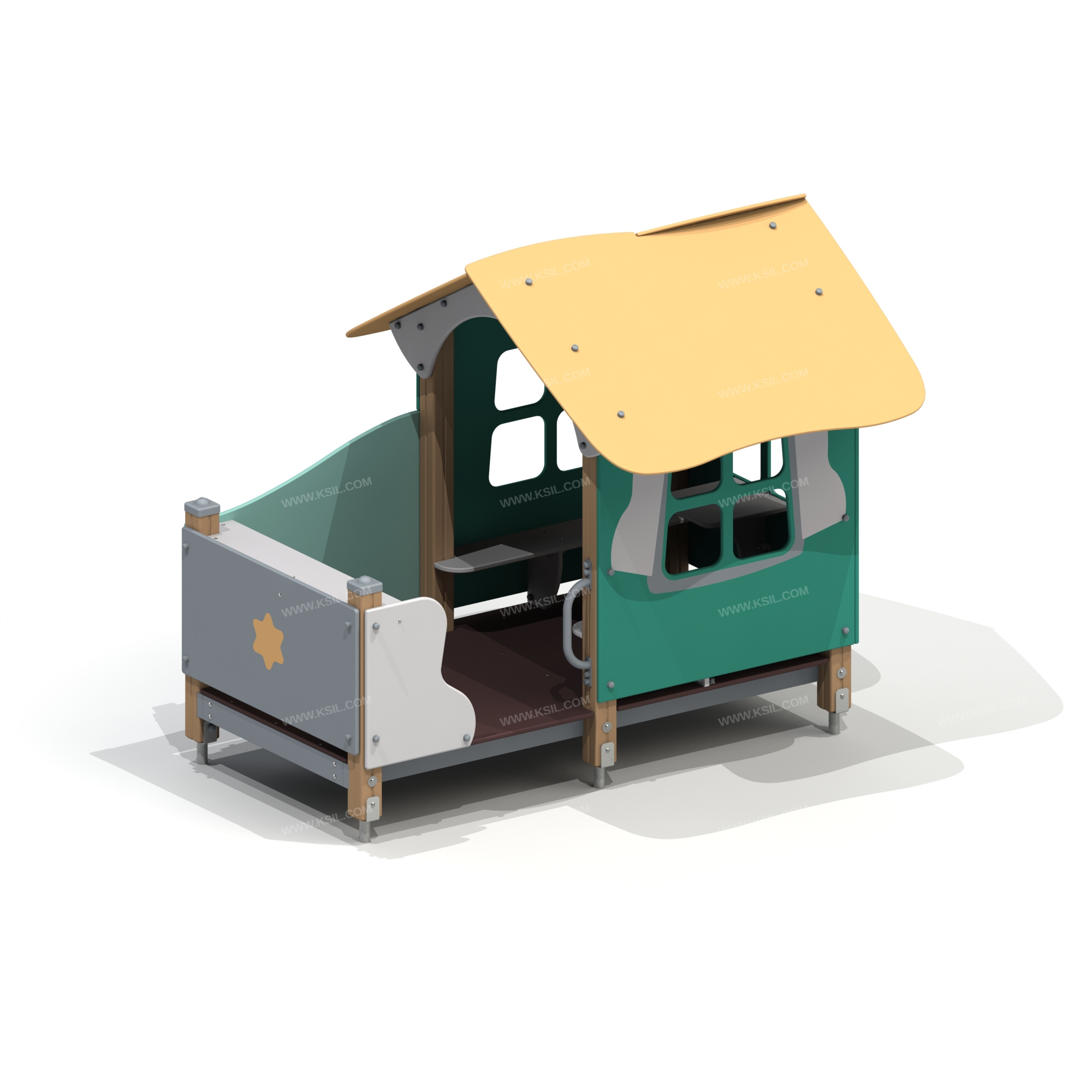Металлические элементы должны быть покрыты порошковыми красками или подвергнуты гальванизации. Сварные швы должны быть гладкими и исключать возможность травмирования пользователей при контакте. Металлические элементы конструкции не должны состоять из нескольких частей, соединенных между собой.Весь крепеж должен быть оцинкован, все углы закруглены радиусом не менее 3 мм. Концы труб должны быть закрыты.Деревянный брус должен быть склеен под прессом из нескольких отборных сосновых досок, подвергнутых специальной обработке и сушке до мебельной влажности 7-10% для придания особой прочности несущим конструкциям.Деревянные доски хвойных пород дерева должны быть подвергнуты специальной обработке и сушке до мебельной влажности 7-10% для придания особой прочности несущим конструкциямФанера влагостойкая не ниже I сорта изготовленная из шлифованного березового шпона повышенной водостойкости, склеенного клеем класса эмиссии Е1 с предварительной заделкой (замазкой или вставками) естественных дефектов древесины.Материалы из древесины не должны иметь на поверхности дефектов обработки. Концы труб должны быть закрыты. Заглушки пластиковые на места резьбовых соединений.Промежутки и стыки между элементами оборудования не должны допускать застревания частей тела и одежды пользователей. В конструкции должна быть предусмотрена возможность доступа взрослого при обстоятельствах, требующих посторонней помощи пользователю.C целью повышения качества и безопасности продукции, в документацию на изделие могут вноситься изменения (изображение, размеры, и т.п.).