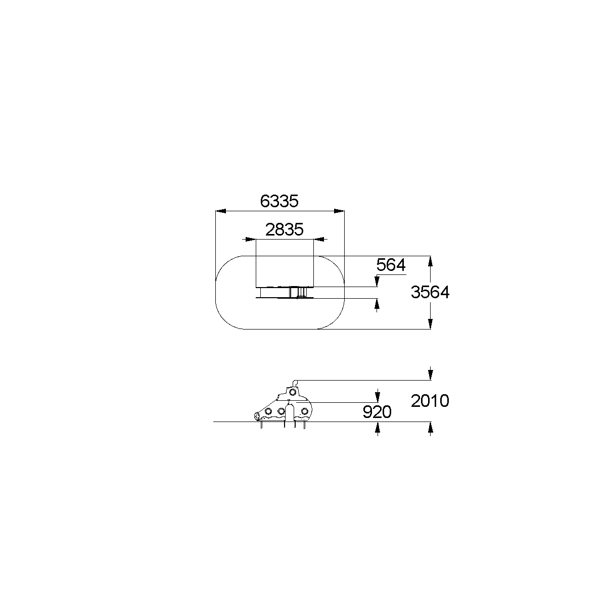 - Габаритные размеры: 2835x564x2010 мм