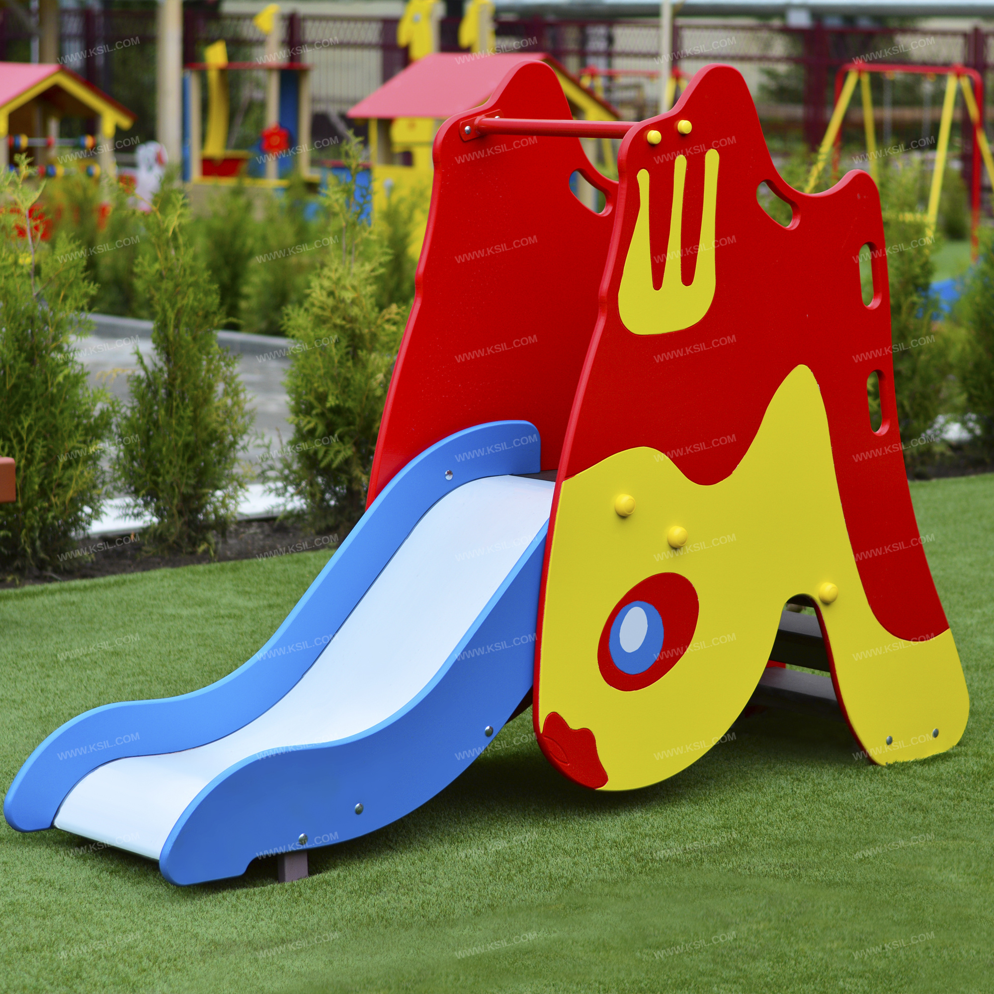 Горка должна быть стилизована под золотую рыбку и представлять собой устойчивую конструкцию, обеспечивающую безопасное движение детей по наклонной поверхности скольжения под действием силы тяжести.Горка должна состоять из площадки, ската, бортиков, боковых стенок в виде золотой рыбки с художественной росписью, защитной перекладины и лестницы. Горка должна иметь стартовый участок высотой не менее 620 мм, участок скольжения и конечный участок. Скат должен быть изготовлен из единого листа нержавеющей стали толщиной 1,5 мм, утопленный в паз бортиков горки. Бортики горки, выполненные из влагостойкой фанеры толщиной не менее 21 мм, должны быть высотой не менее 100 мм. Защитная перекладина должна быть выполнена из металлической трубы диаметром не менее 33 мм, побуждающая ребенка присесть и установлена на высоте не менее 600 мм от уровня поверхности стартового участка горки. Боковые стенки с вырезами для рук должны выполнять функцию защитной секции, перил лестницы и выполнены из влагостойкой фанеры толщиной не менее 21 мм.Ступени лестницы должны быть выполнены из ламинированной противоскользящей влагостойкой фанеры толщиной не менее 21 мм. Расстояние между ступенями должно быть одинаковым.Пол площадки стартового участка горки должен быть выполнен из влагостойкой противоскользящей фанеры толщиной не менее 21 мм.