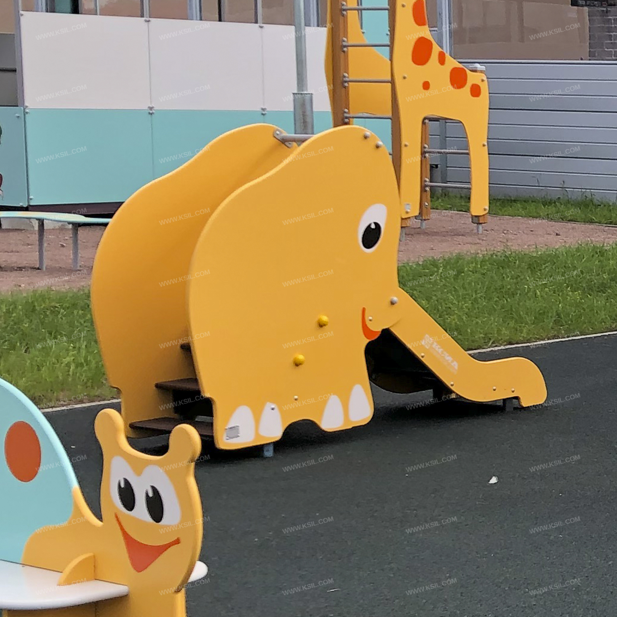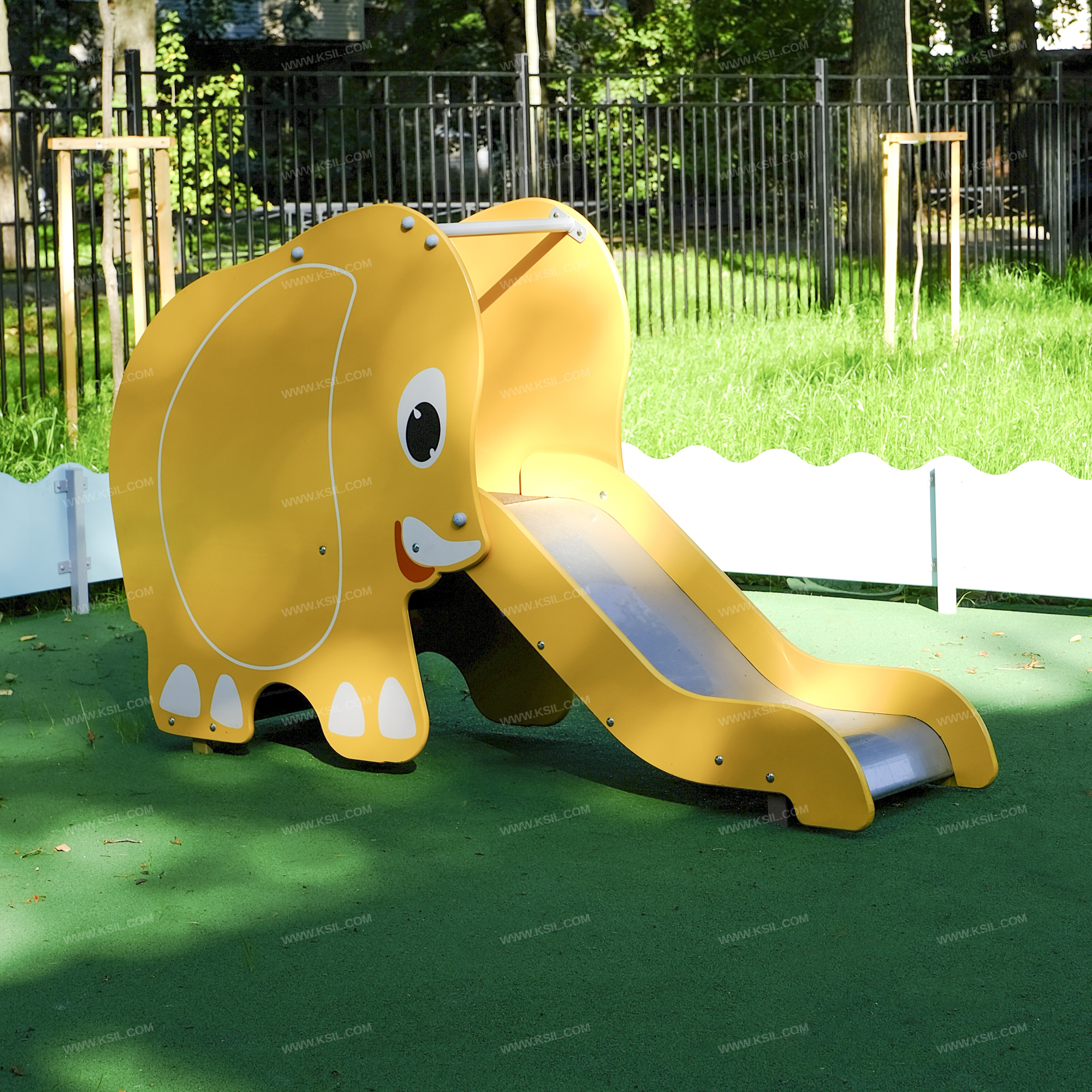 Горка должна быть стилизована под слоненка и представлять собой устойчивую конструкцию, обеспечивающую безопасное движение детей по наклонной поверхности скольжения под действием силы тяжести.Горка должна состоять из площадки, ската, бортиков, боковых стенок в виде слоненка с художественной росписью, защитной перекладины и лестницы. Горка должна иметь стартовый участок высотой не менее 620 мм, участок скольжения и конечный участок. Скат должен быть изготовлен из единого листа нержавеющей стали толщиной 1,5 мм, утопленный в паз бортиков горки. Бортики горки, выполненные из влагостойкой фанеры толщиной не менее 21 мм, должны быть высотой не менее 100 мм. Защитная перекладина должна быть выполнена из металлической трубы диаметром не менее 33 мм, побуждающая ребенка присесть и установлена на высоте не менее 600 мм от уровня поверхности стартового участка горки. Боковые стенки должны также выполнять функцию защитной секции и выполнены из влагостойкой фанеры толщиной не менее 21 мм.Лестница должна быть оснащена поручнем, выполненным из металлической трубы диаметром не менее 26 мм. Поручень должен крепиться к боковой стенки с внутренней стороны. Ступени лестницы должны быть выполнены из ламинированной противоскользящей влагостойкой фанеры толщиной не менее 21 мм. Между ступенями должен быть установлен вертикальный борт, ограничивающий безопасный зазор. Расстояние между ступенями должно быть одинаковым.Пол площадки стартового участка горки должен быть выполнен из влагостойкой противоскользящей фанеры толщиной не менее 21 мм.