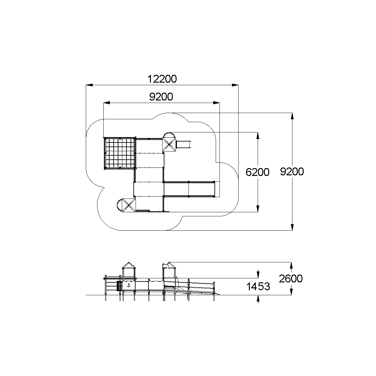 Весь крепеж должен быть оцинкован, все углы закруглены радиусом не менее 3 мм. Деревянный брус должен быть склеен под прессом из нескольких отборных сосновых досок, подвергнутых специальной обработке и сушке до мебельной влажности 7-10% для придания особой прочности несущим конструкциям.Деревянные доски хвойных пород дерева должны быть подвергнуты специальной обработке и сушке до мебельной влажности 7-10% для придания особой прочности несущим конструкциямМатериалы из древесины не должны иметь на поверхности дефектов обработки. Концы труб должны быть закрыты. Заглушки пластиковые на места резьбовых соединений. Промежутки и стыки между элементами оборудования не должны допускать застревания частей тела и одежды пользователей. В конструкции должна быть предусмотрена возможность доступа взрослого при обстоятельствах, требующих посторонней помощи пользователю.C целью повышения качества и безопасности продукции, в документацию на изделие могут вноситься изменения (изображение, размеры, и т.п.).