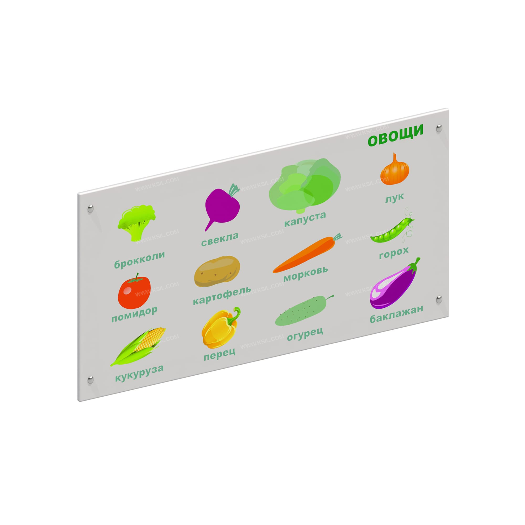 Игровая панель должна быть выполнена из влагостойкой фанеры толщиной не менее 15 мм с художественной росписью овощей и их надписью.