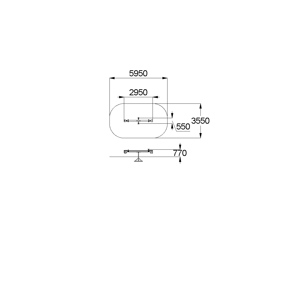 - Габаритные размеры: 2950x550x770 мм
