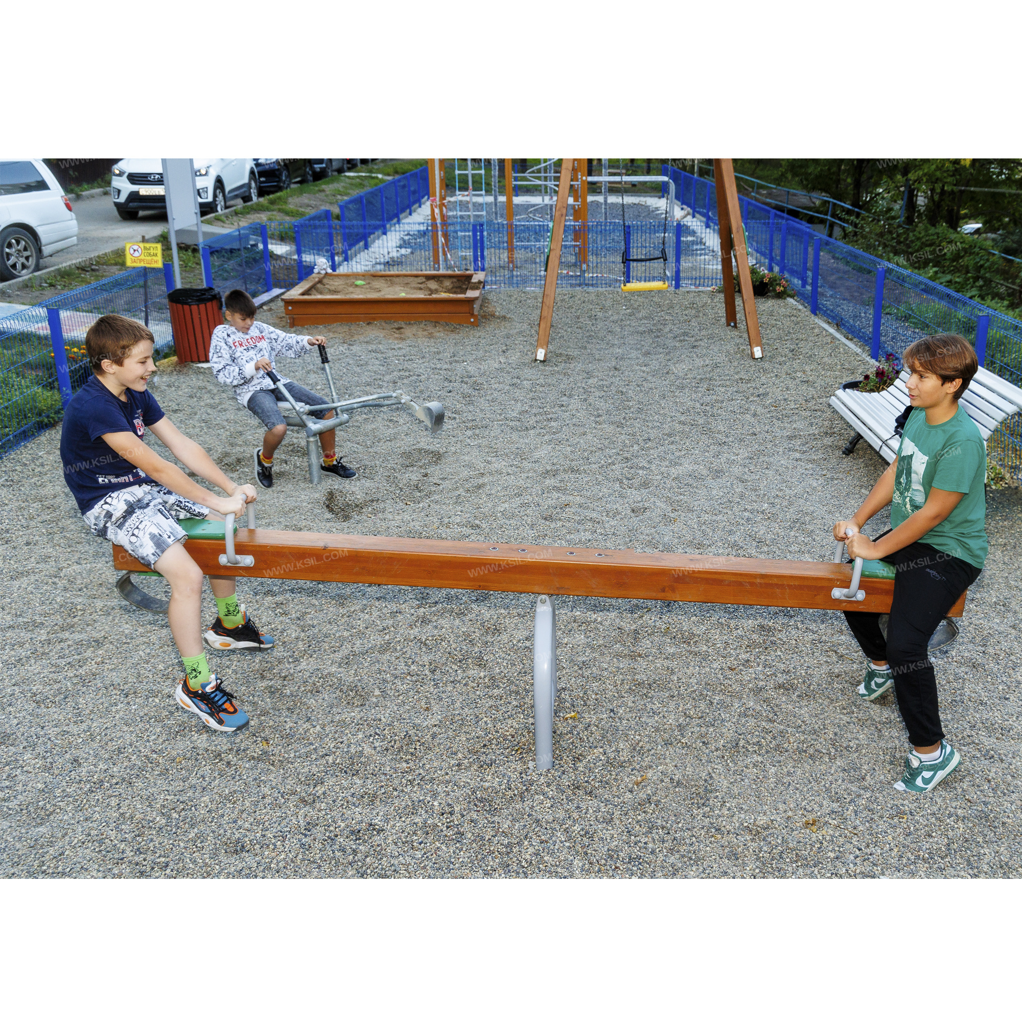 Металлические элементы должны быть покрыты порошковыми красками или подвергнуты гальванизации. Сварные швы должны быть гладкими и исключать возможность травмирования пользователей при контакте. Металлические элементы конструкции не должны состоять из нескольких частей, соединенных между собой.Весь крепеж должен быть оцинкован, все углы закруглены радиусом не менее 3 мм. Концы труб должны быть закрыты.Деревянный брус должен быть склеен под прессом из нескольких отборных досок из лиственницы, подвергнутых специальной обработке и сушке до мебельной влажности 7-10% для придания особой прочности несущим конструкциям.Фанера влагостойкая не ниже I сорта изготовленная из шлифованного березового шпона повышенной водостойкости, склеенного клеем класса эмиссии Е1 с предварительной заделкой (замазкой или вставками) естественных дефектов древесины.Материалы из древесины не должны иметь на поверхности дефектов обработки. Заглушки пластиковые на места резьбовых соединений.Промежутки и стыки между элементами оборудования не должны допускать застревания частей тела и одежды пользователей. В конструкции должна быть предусмотрена возможность доступа взрослого при обстоятельствах, требующих посторонней помощи пользователю.C целью повышения качества и безопасности продукции, в документацию на изделие могут вноситься изменения (изображение, размеры, и т.п.).