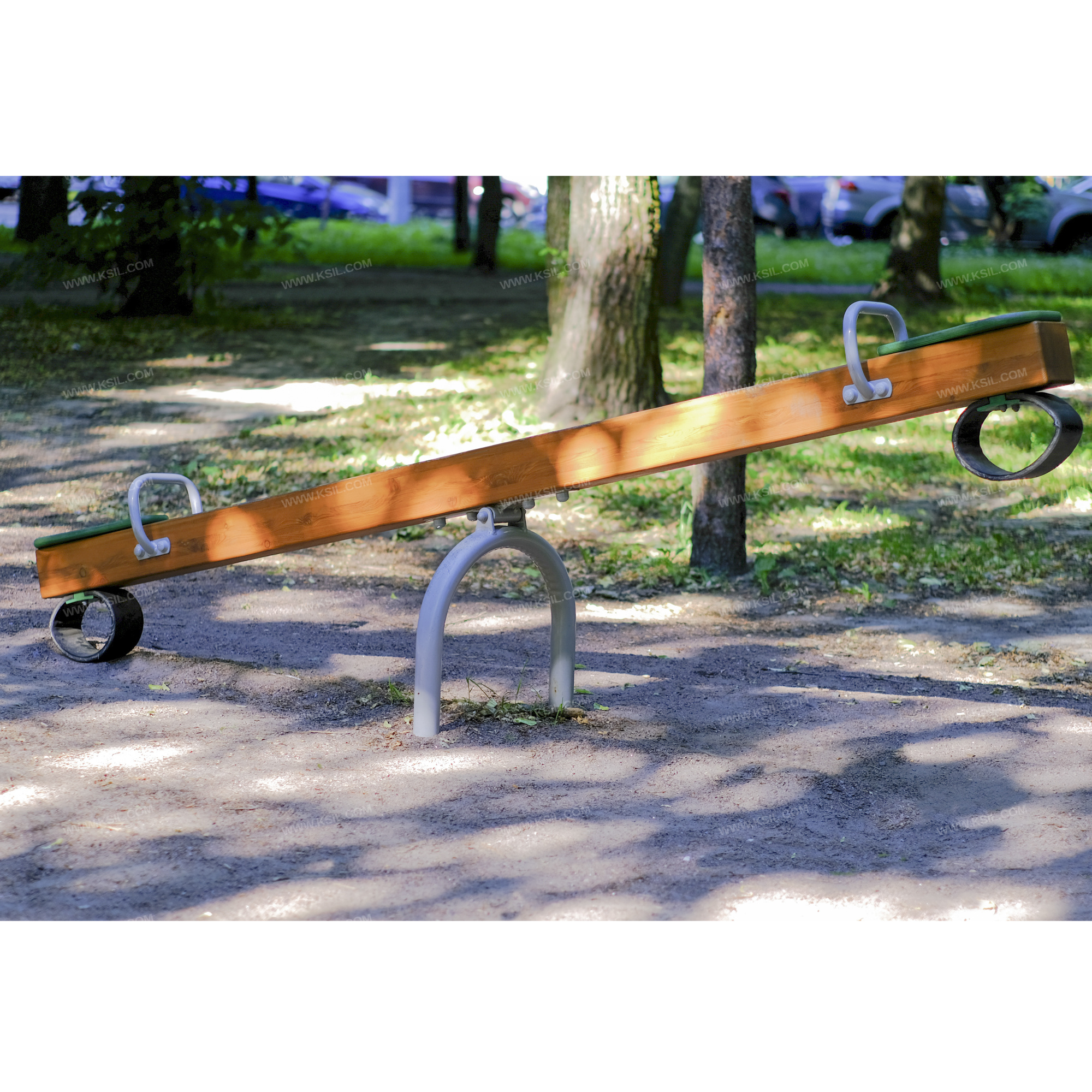 Качалка – балансир должна представлять собой устойчивую конструкцию, обеспечивающую безопасное движение детей в вертикальной плоскости. Качалка должна состоять из основания, корпуса, крепящегося к основанию через качающую опору, 2-х посадочных мест, 2-х ручек и 2-х демпфирующих устройств. Основание качалки-балансир должно быть выполнено из металлической трубы диаметром не менее 60 мм. Корпус должен быть выполнен из бруса сечением не менее 130*130мм. Качающаяся опора должна быть выполнена из металлических труб и представлять собой подвижную конструкцию, в шарнирном узле установлены подшипники качения. Посадочное место с сиденьем выполненным из влагостойкой фанеры толщиной не менее 21 мм. Ручки балансира должны быть выполнены из металлической трубы диаметром не менее 26 мм. Демпфирующее устройство должно быть выполнено из армированной резины толщиной не менее 10 мм.