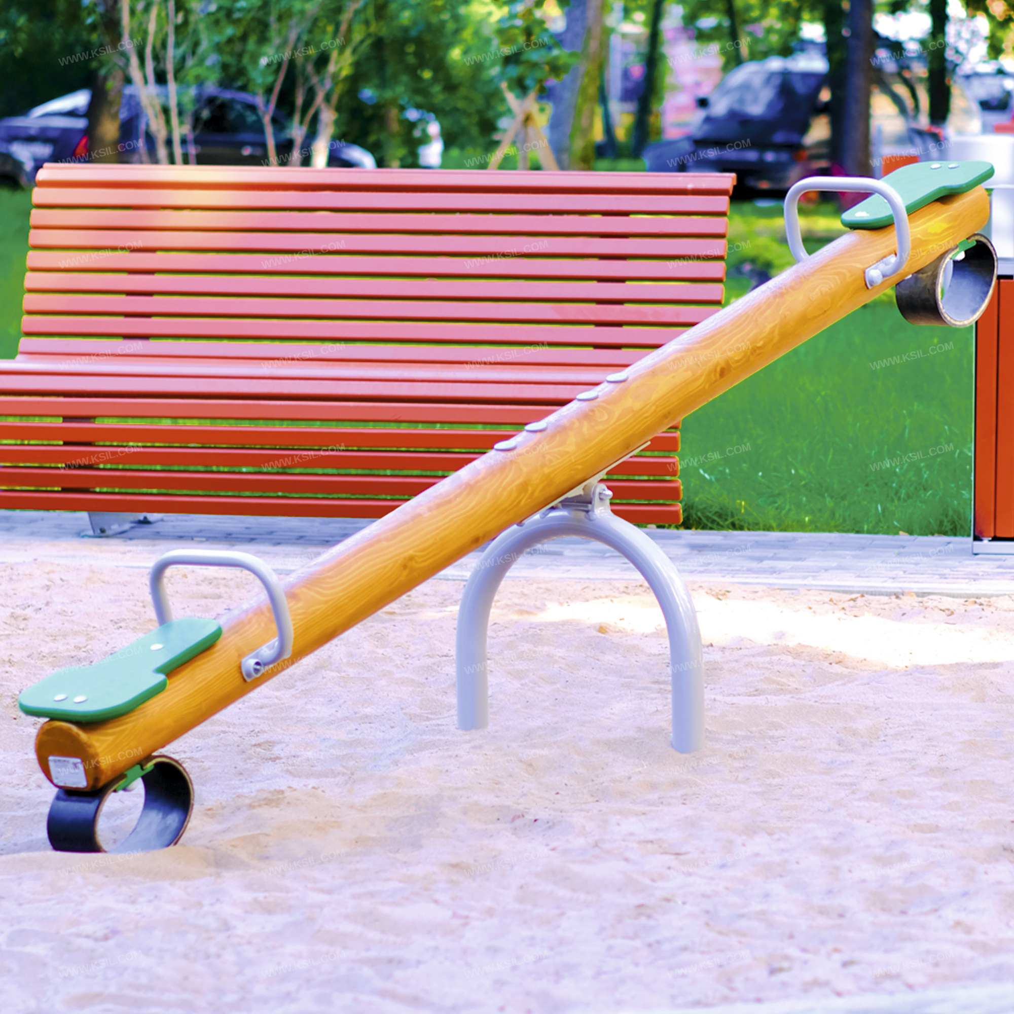 Качалка – балансир должна представлять собой устойчивую конструкцию, обеспечивающую безопасное движение детей в вертикальной плоскости. Качалка должна состоять из основания, корпуса, крепящегося к основанию через качающую опору, 2-х посадочных мест, 2-х ручек и 2-х демпфирующих устройств. Основание качалки-балансир должно быть выполнено из металлической трубы диаметром не менее 60 мм. Корпус должен быть выполнен из круглых столбов лиственницы диаметром не менее 140 мм и иметь скругленный торец.Качающаяся опора должна быть выполнена из металлических труб и представлять собой подвижную конструкцию, в шарнирном узле установлены подшипники качения. Посадочное место с сиденьем, выполненным из обрезиненного металла. Ручки балансира должны быть выполнены из металлической трубы диаметром не менее 26 мм. Демпфирующее устройство должно быть выполнено из армированной резины толщиной не менее 10 мм.