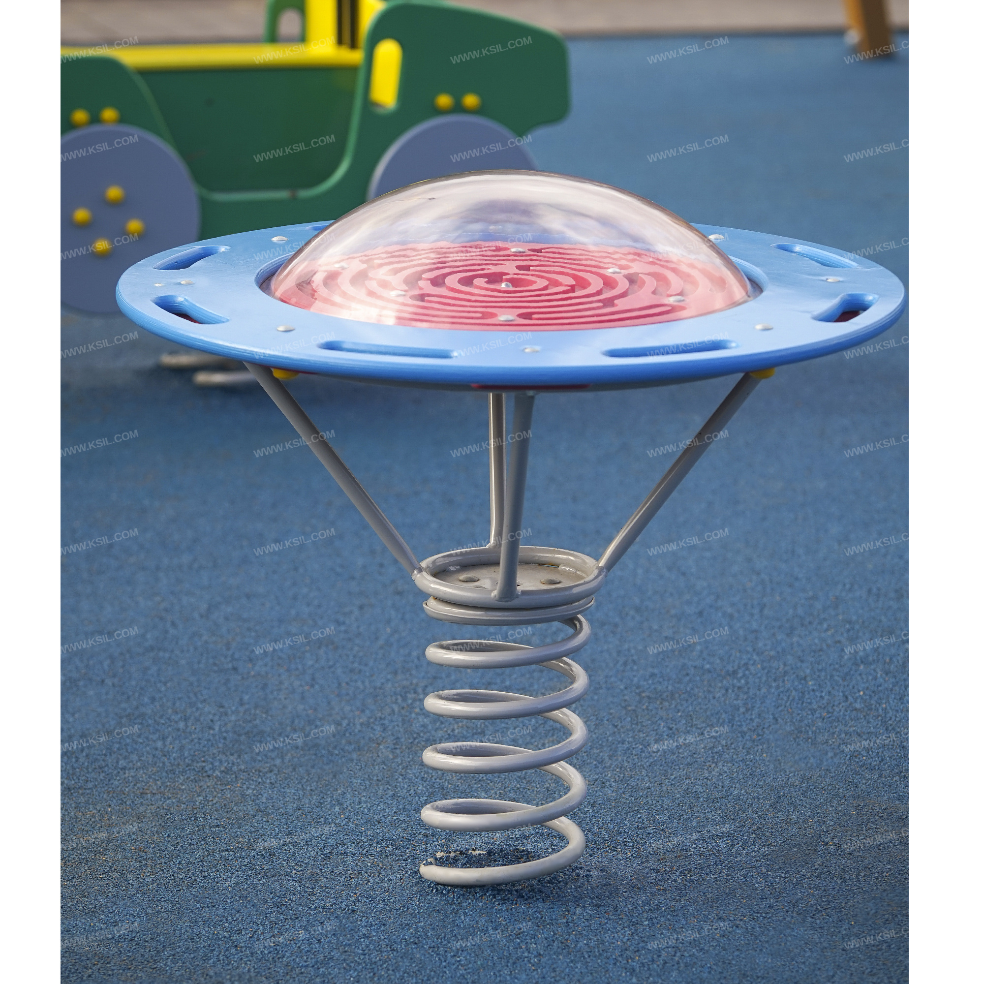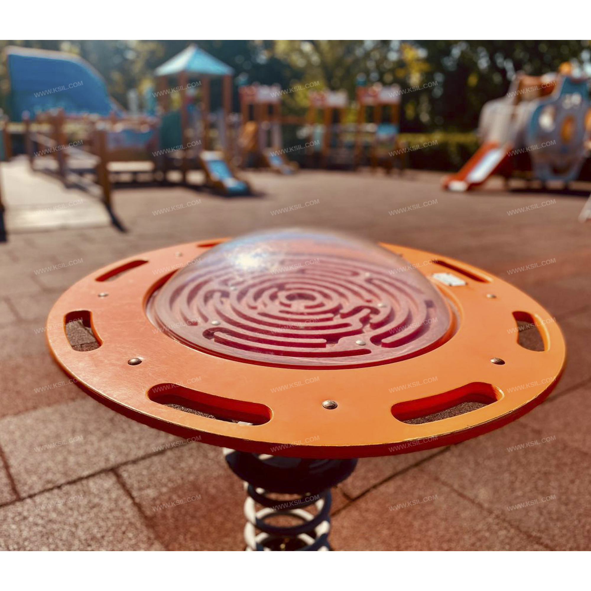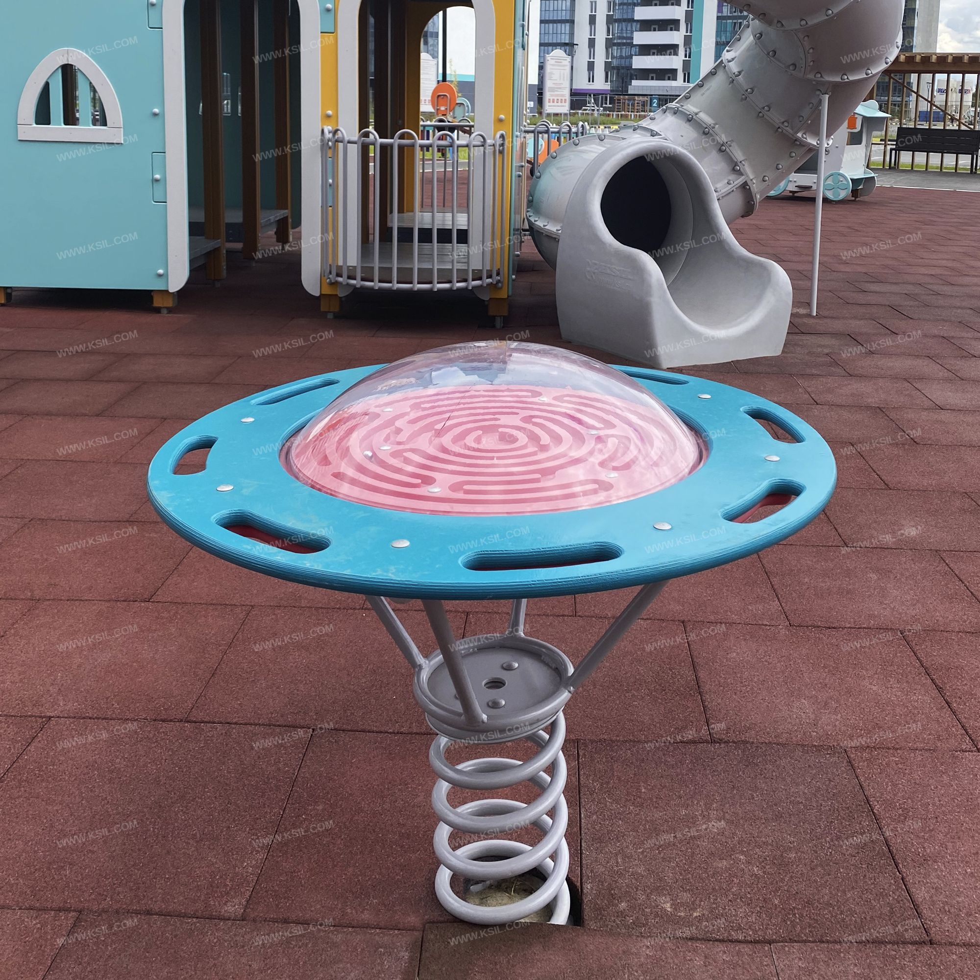 Шарик в лабиринте должен представлять собой устойчивую конструкцию и состоять из основания, опоры, лабиринта с шариком, закрытого прозрачной полусферой. По периметру должна быть установлена круглая накладка с отверстиями для рук. Качалка на пружине должна состоять из основания, на которое крепиться корпус лабиринта, опоры для крепления пружины в нижней части, 4-х раскосов, соединяющих опору с опорной плитой. Основание выполнено из металлической трубы Ø 21мм соединенного с пружиной при помощи соединительного металлического диска, при помощи болтового соединения.Опора выполнена из листа δ = 5 мм методом холодного прессования и соединена с пружиной в нижней её части при помощи металлического диска болтовым соединением.Пружина изготовлена из прутка Ø 22мм высотой 400мм и наружным Ø 202мм, число рабочих витков n= 6, окрашивается полимерными порошковыми красками.Раскосы выполнены из полосы толщиной 5 мм шириной 40 мм.Опорная плита выполнена из листа толщиной δ = 5 мм и выполняет роль фундамента. Опора и опорная плита соединены между собой при помощи раскосов на болтовых соединениях.Прозрачная полусфера должна быть выполнена из поликарбоната. Лабиринт должен быть выполнен из пластика. Круглая накладка должна быть выполнена из влагостойкой фанеры толщиной не менее 21 мм.