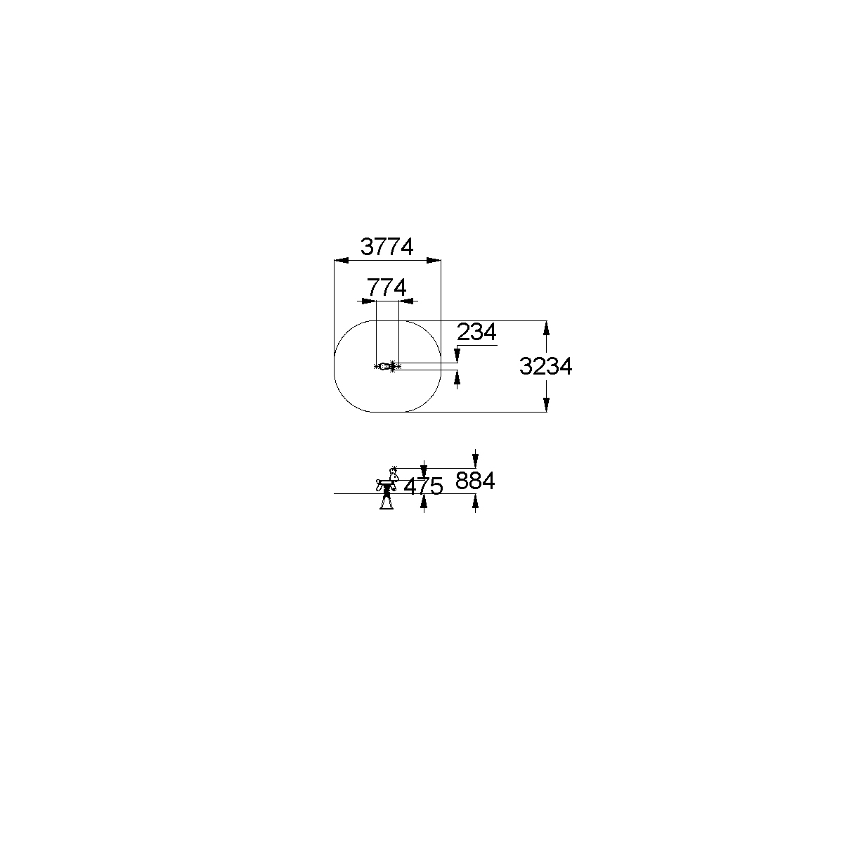 - Габаритные размеры: 774x234x884 мм
