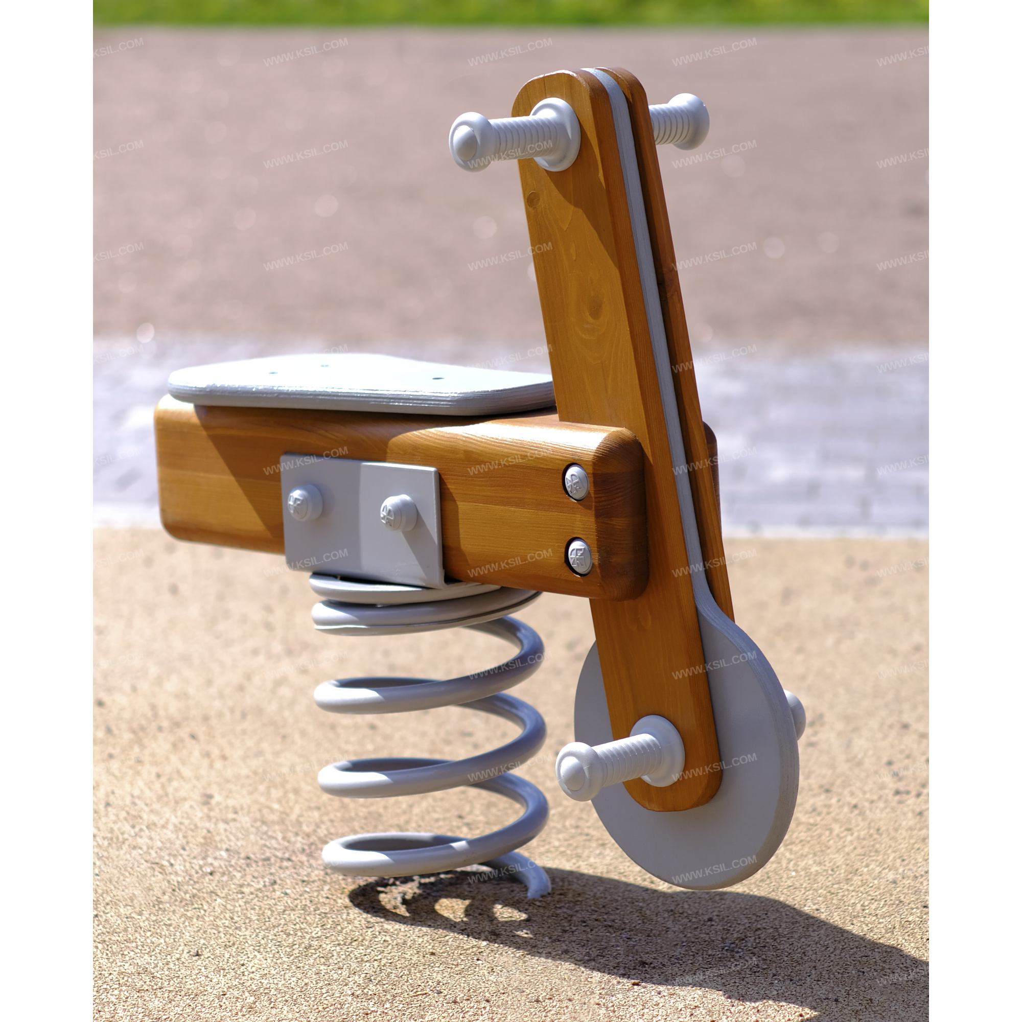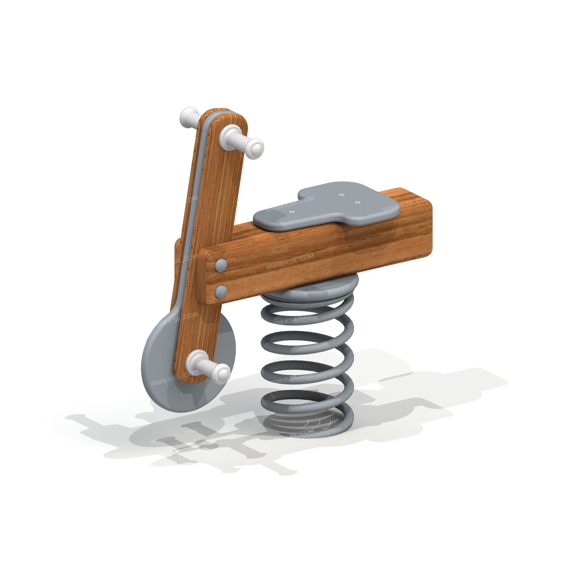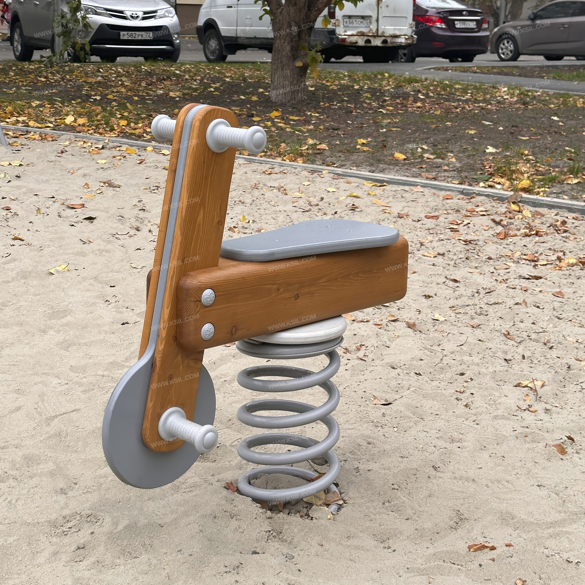 Качалка на пружине должна представлять собой устойчивую конструкцию, обеспечивающую безопасное движение детей. Качалка на пружине должна состоять из основания, на которое крепиться корпус качалки, опоры для крепления пружины в нижней части, 4-х раскосов, соединяющих опору с опорной плитой, корпуса, посадочного места, 2-х опор для ног, декоративных элементов и 2-х поручней из пластика. Основание выполнено из металлического листа толщиной δ =5 мм соединенного с пружиной при помощи соединительного металлического диска и болтового соединения.Опора выполнена из листа δ = 5 мм методом холодного прессования и соединена с пружиной в нижней её части при помощи металлического диска болтовым соединением.Пружина изготовлена из прутка Ø 22мм высотой 400мм и наружным Ø 202мм, число рабочих витков n= 6, окрашивается полимерными порошковыми красками.Раскосы выполнены из полосы толщиной 5 мм шириной 40 мм.Опорная плита выполнена из листа толщиной δ = 5 мм и выполняет роль фундамента. Опора и опорная плита соединены между собой при помощи раскосов на болтовых соединениях. Корпус выполнен из бруса 140х140мм, опоры для ног и рук должны быть выполнены из пластика Ø 33 мм. Основание качалки выполнено из клееного бруса лиственницы Сидение и колесо выполнены из фанеры δ = 21 мм.