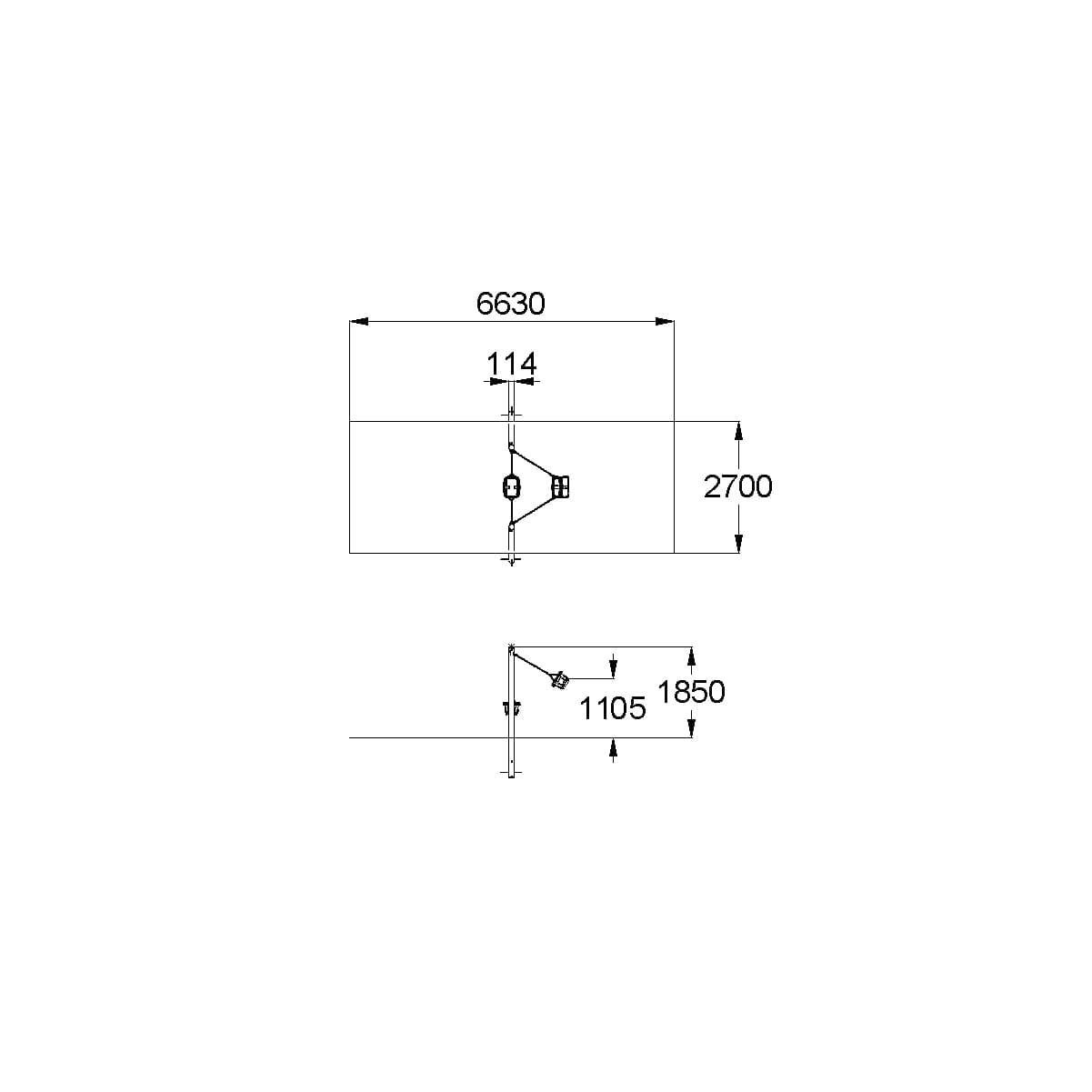 Качели односекционные должны представлять собой устойчивую конструкцию, обеспечивающую безопасное движение сиденья на подвесе. Качели должны состоять из боковых стоек, состоящих из двух металлических наклонных труб, гибкий подвес (004963 или 004964) не входит в комплект.Боковые стойки должны быть выполнены из металлической трубы диаметром не менее 114 мм. Сверху стойки должны заканчиваться пластиковой заглушкой, снизу стойки должны бетонироваться в землю.
