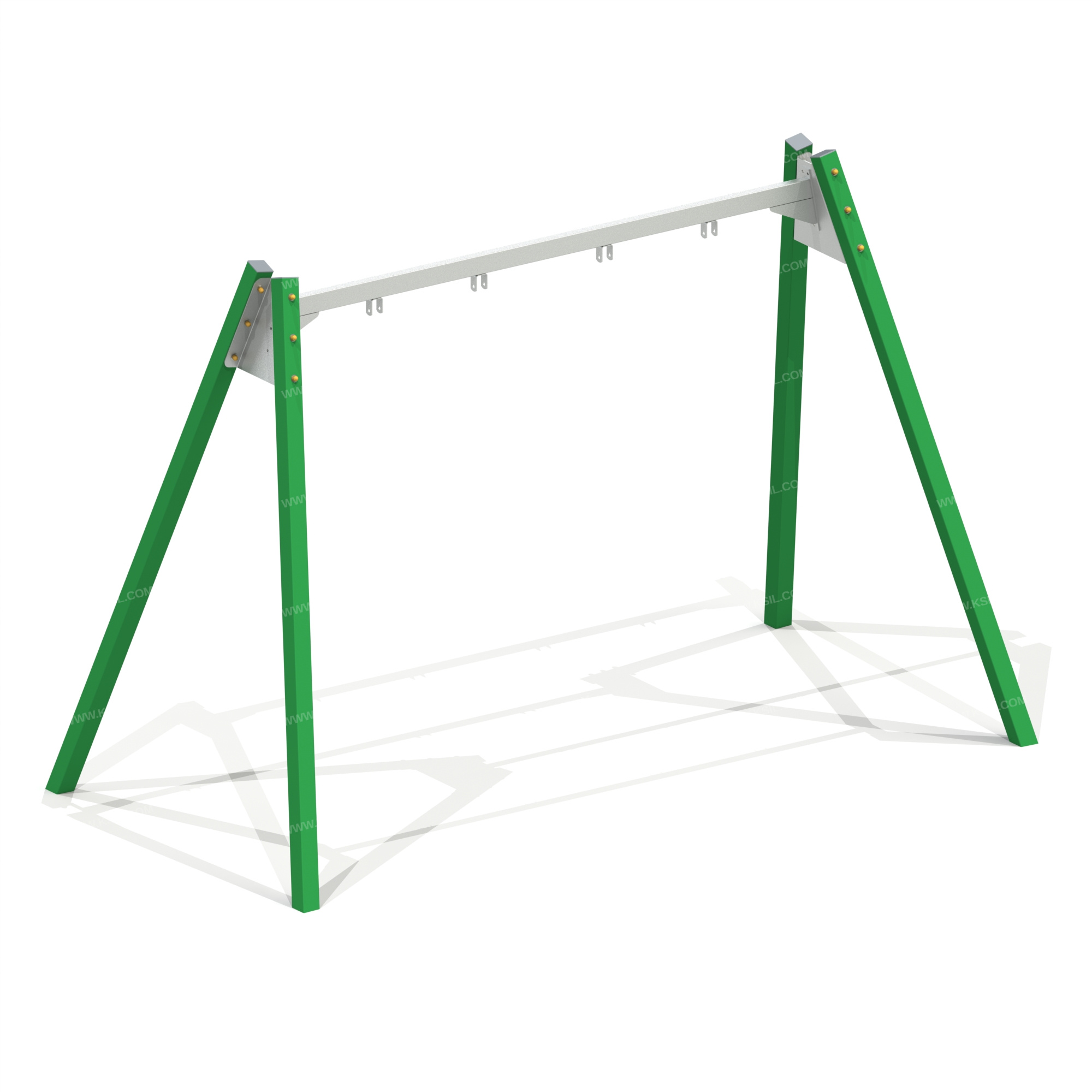 Качели односекционные должны представлять собой устойчивую конструкцию, обеспечивающую безопасное движение подвески качелей.Качели должны состоять из боковых стоек, состоящих из четырех металлических труб, в верхней части скрепленных между собой, двумя фитингами и перекладиной, и подвески качелей.Боковые стойки должны быть выполнены из металлической профильной трубы сечением не менее 80х80 мм. Фитинги, оцинкованные трапециевидной формы выполнены из металлического листа толщиной не менее 5мм.Балка оцинкованная выполнена из металлической трубы 40х80 мм с приваренными к ней фланцами, косынками, выполненными из металлического листа толщиной не менее 5мм и скоб для крепления подвесов выполненными из металлического листа толщиной не менее 3мм.