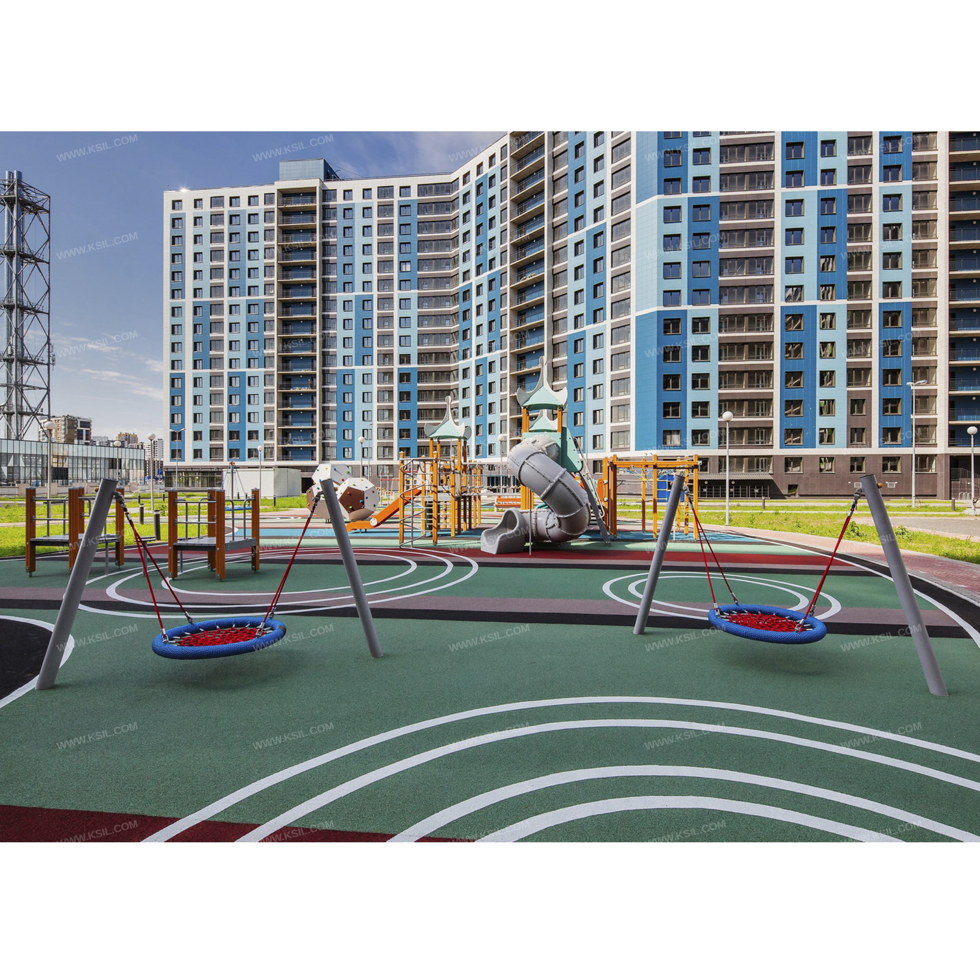 Весь крепеж должен быть оцинкован, все углы и кромки закруглены радиусом не менее 3 мм. Сварные швы должны быть гладкими и исключать возможность травмирования пользователей при контакте. Металлические элементы конструкции не должны состоять из нескольких частей, соединенных между собой. Концы труб должны быть закрыты. Промежутки и стыки между элементами оборудования не должны допускать застревания частей тела и одежды пользователей. В конструкции должна быть предусмотрена возможность доступа взрослого при обстоятельствах, требующих посторонней помощи пользователю.C целью повышения качества и безопасности продукции, в документацию на изделие могут вноситься изменения (изображение, размеры, и т.п.).