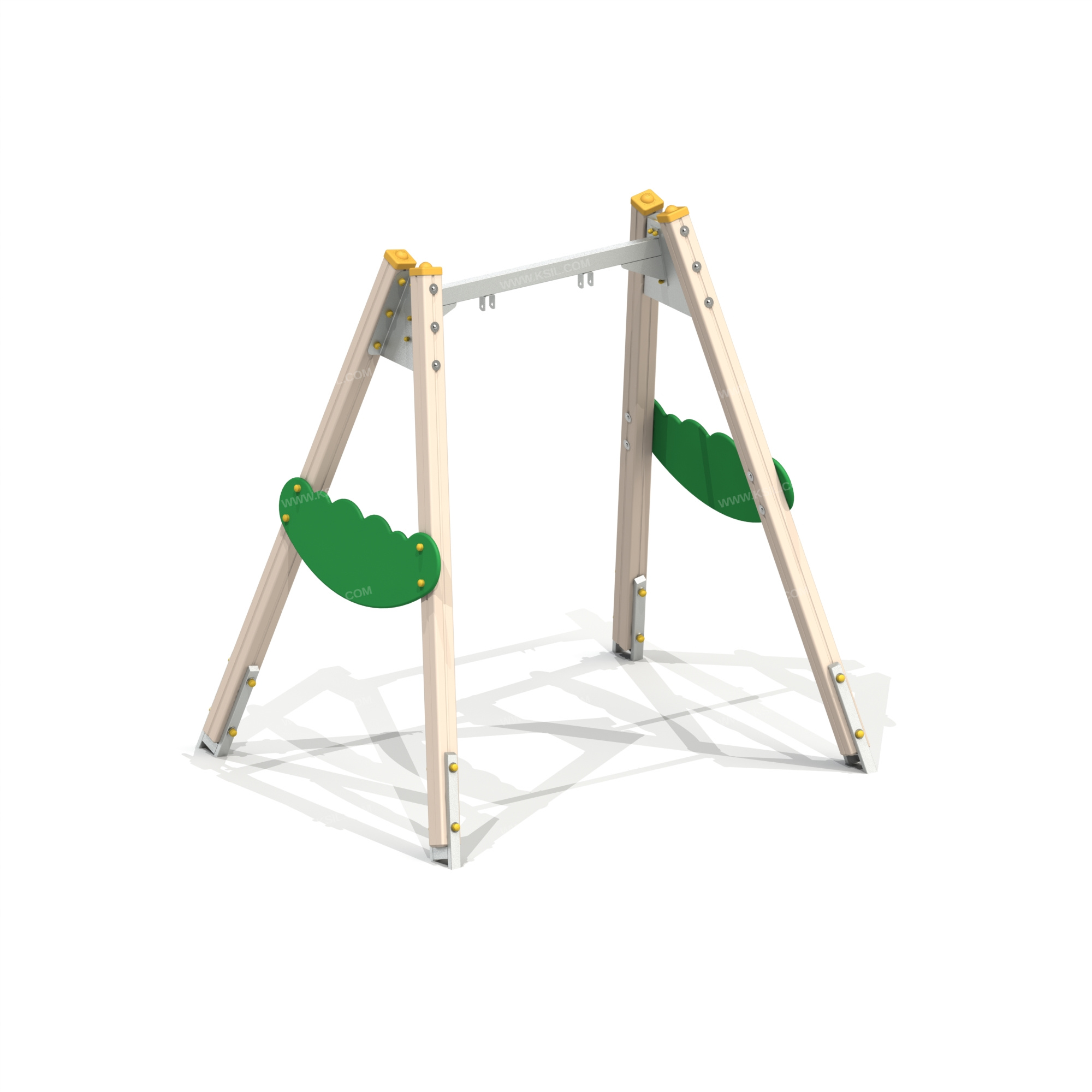 Качели односекционные должны представлять собой устойчивую конструкцию, состоящую из 4-х несущих столбов, подпятников, балки, 2-х фитингов и 2-х фанерных накладок в виде "облака" и подвески качелей. Несущие столбы должны быть выполнены из клееного деревянного бруса сечением не менее 100х100 мм и иметь скругленный профиль с канавкой посередине. Сверху открытый столб должен заканчиваться пластиковой заглушкой, снизу столб должен заканчиваться металлическим оцинкованным подпятником, изготовленным из трубы 50х25 мм, который бетонируется в землю.Фитинги, оцинкованные трапециевидной формы выполнены из металлического листа толщиной не менее 5мм.Балка оцинкованная выполнена из металлической трубы 40х80 мм с приваренными к ней фланцами, косынками, выполненными из металлического листа толщиной не менее 5мм и скоб для крепления подвесов выполненными из металлического листа толщиной не менее 3мм.Накладки декоративные должны быть выполнены из влагостойкой фанеры толщиной не менее 21 мм.