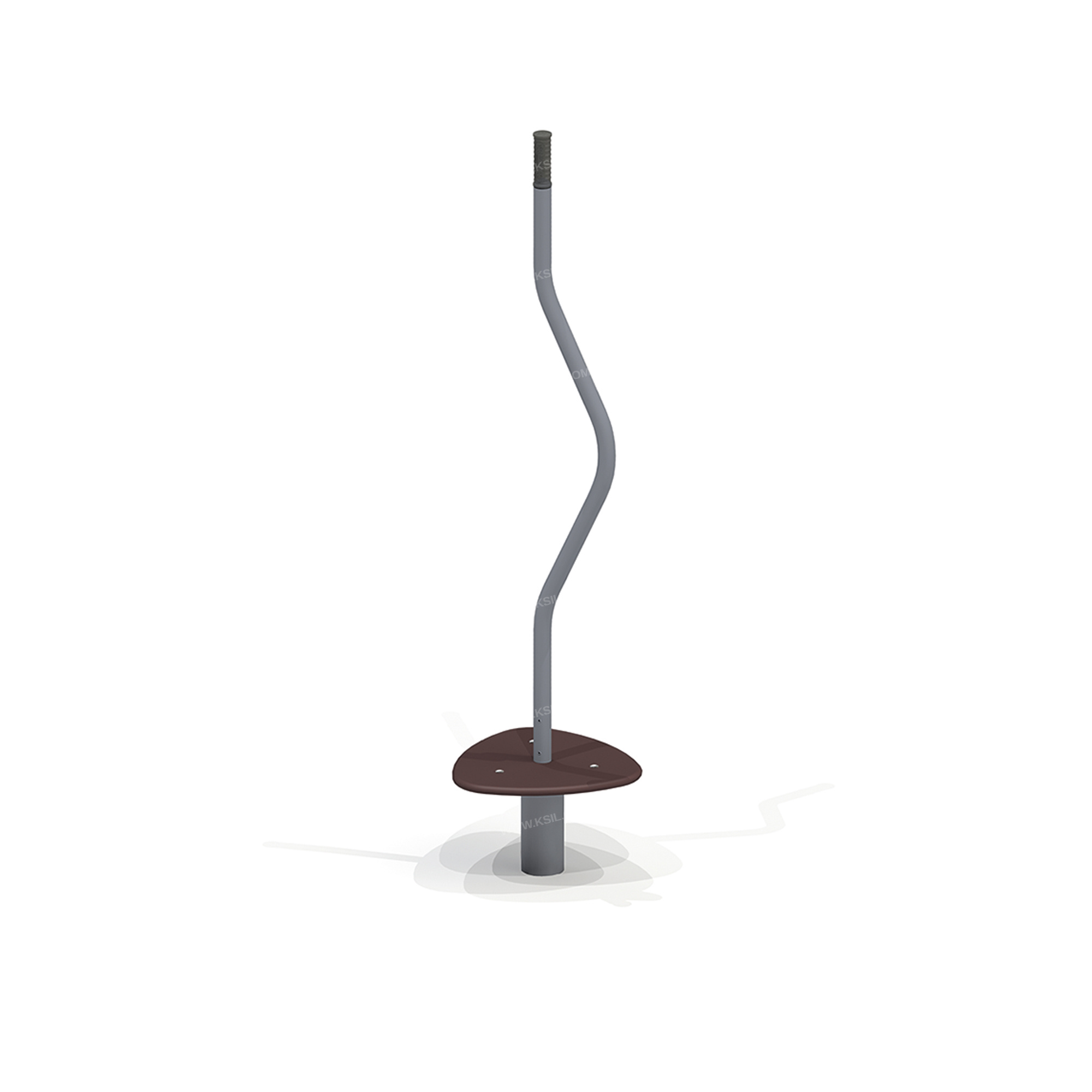 Детский игровой элемент “Колосок” должен представлять собой устойчивую конструкцию, обеспечивающую безопасное вращение платформы вокруг вертикальной оси. Колосок должен состоять из опоры, центральной оси вращения, платформы, вертикальной изогнутой стойки, оборудованной рукояткой. Опора должна состоять из металлической трубы диаметром не менее 102 мм и металлической платформы с отверстиями для крепления к фундаменту, выполненной из металлического листа толщиной не менее 8 мм, с приваренными к ней косынками, выполненными из металлического листа толщиной не менее 5 мм. Центральная ось вращения представляет собой ось, выточенную из круга диаметром не менее 60 мм, к которой приварен опорный фланец из металлического листа толщиной не менее 4 мм.На опорный фланец оси вращения крепится платформа колоска, которая должна быть выполнена из влагостойкой противоскользящей фанеры толщиной не менее 21 мм. К верхней части оси вращения крепится опорная изогнутая стойка, которая должна быть выполнена из металлической трубы диаметром не менее 42 мм, с отверстиями для крепления к оси. В верхней части стойки находится зона рукоятки, предназначенная для захвата, которая должна быть покрыта слоем атмосферостойкой резины.