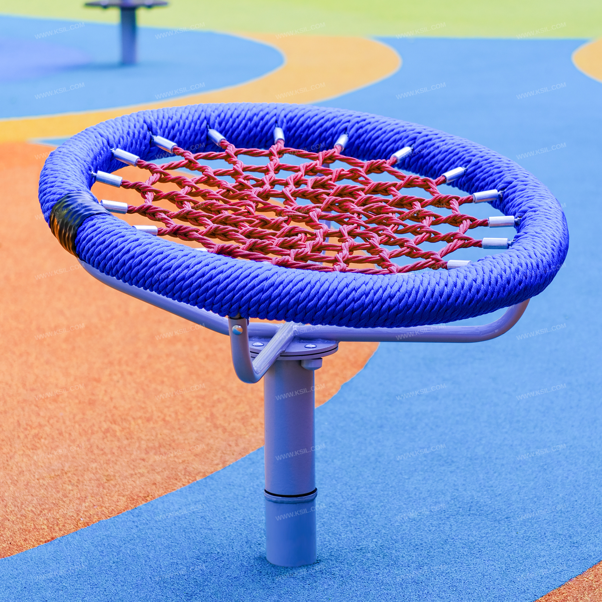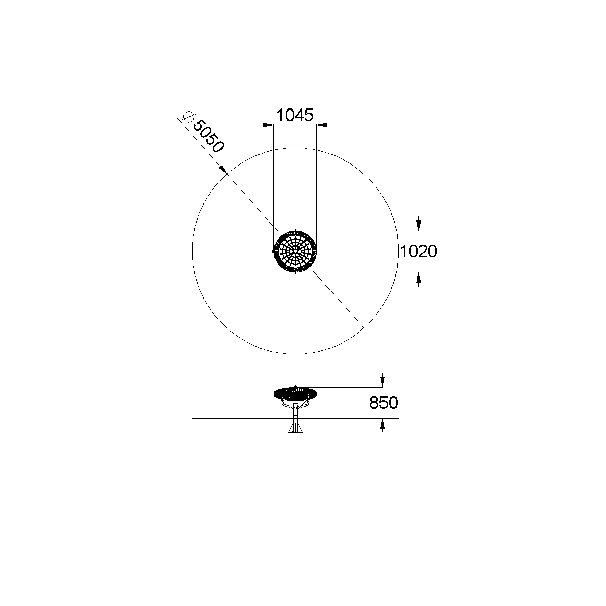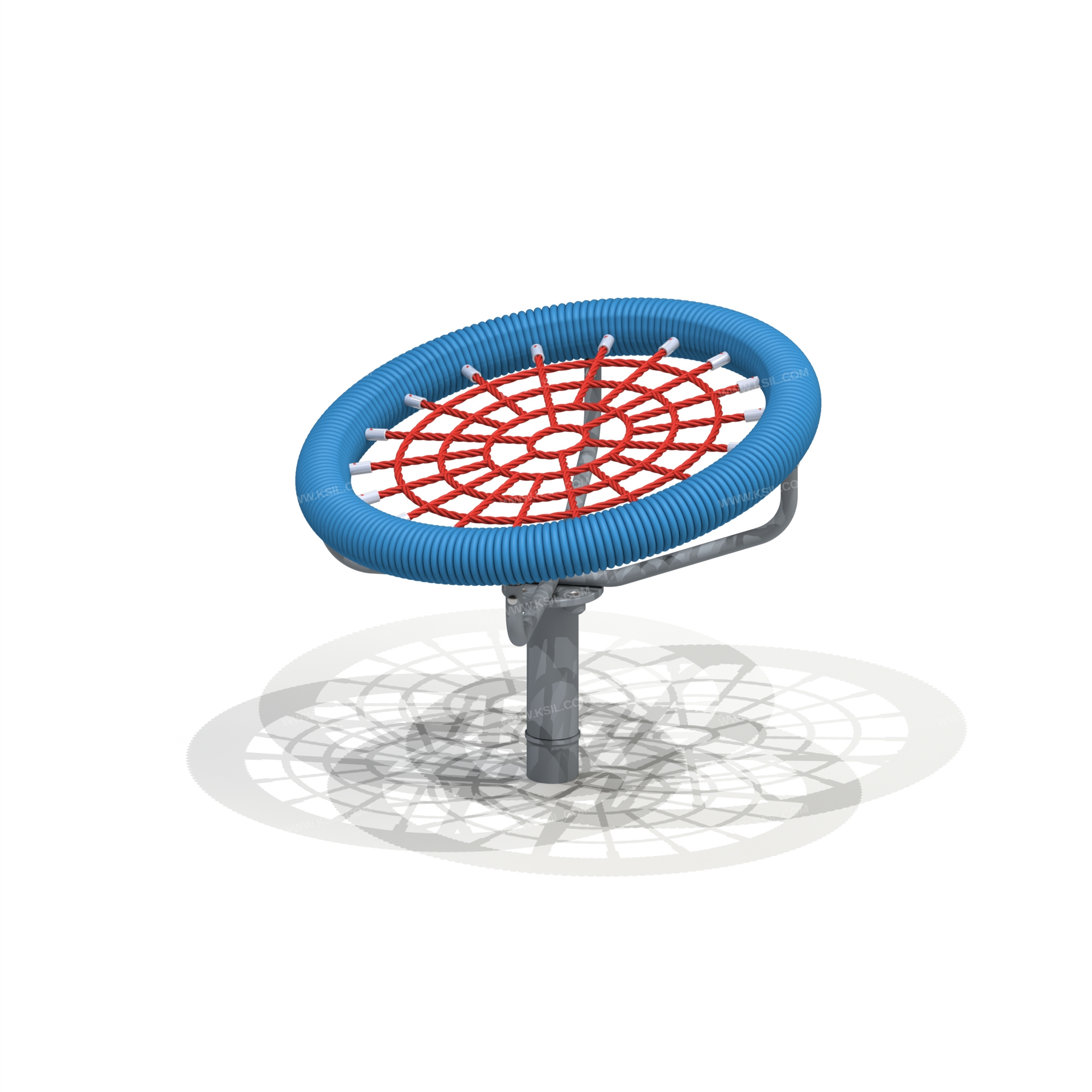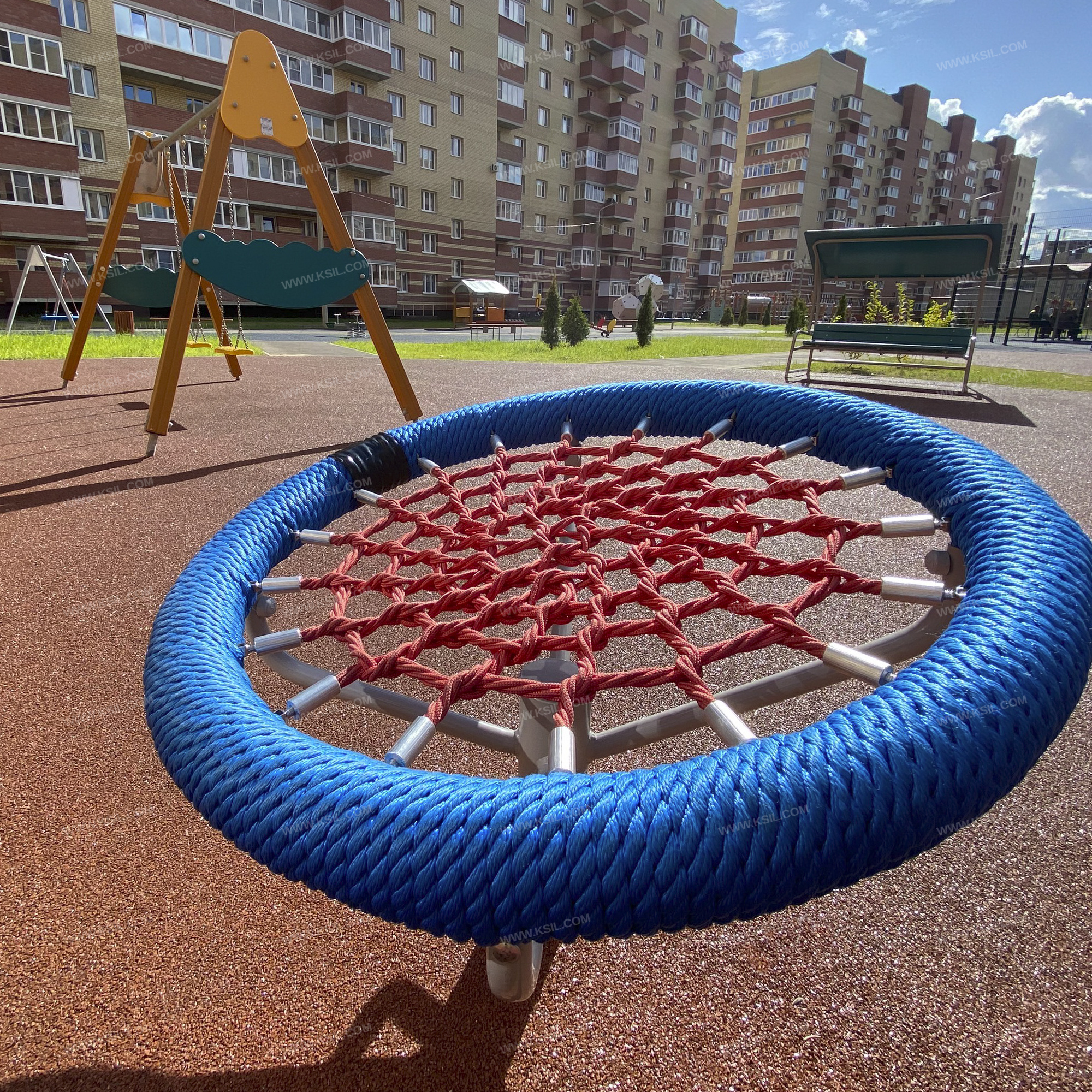 Детский игровой элемент должен представлять собой устойчивую конструкцию, обеспечивающую безопасное вращение посадочного места для детей вокруг вертикальной оси. Детский игровой элемент должен состоять из опоры, центральной оси с раскосами и плетеного сиденья “Гнездо”. Опора должна представлять собой точеный металлический круг диаметром не менее 60 мм и металлической платформы из листа толщиной не менее 8 мм, с приваренными к ней косынками, выполненными из металлического листа толщиной не менее 5 мм. Центральная ось с раскосами должна быть выполнена из металлической трубы диаметром не менее 100 мм, раскосы выполнены из трубы диаметром не менее 33 мм, сверху на центральную ось с помощью штифта крепится крышка, выполненная из металлического листа толщиной не менее 3 мм и трубы диаметром не менее 89 мм.Сиденье плетеное «Гнездо» должно состоять из каркаса и «сетки-паутины». «Сетка-паутина», выполненная из высокотехнологичного полиамидного каната диаметром не менее 16 мм должна располагаться в пространстве, ограниченном обручем из металлической трубы диаметром не менее 26 мм. Канат сетки должен быть надежно закреплен специальными зажимами и креплениями из алюминиевого сплава, позволяющими удерживать конструкцию сетки под нагрузкой. Обруч и крепления должны быть скрыты под оплеткой из каната.
