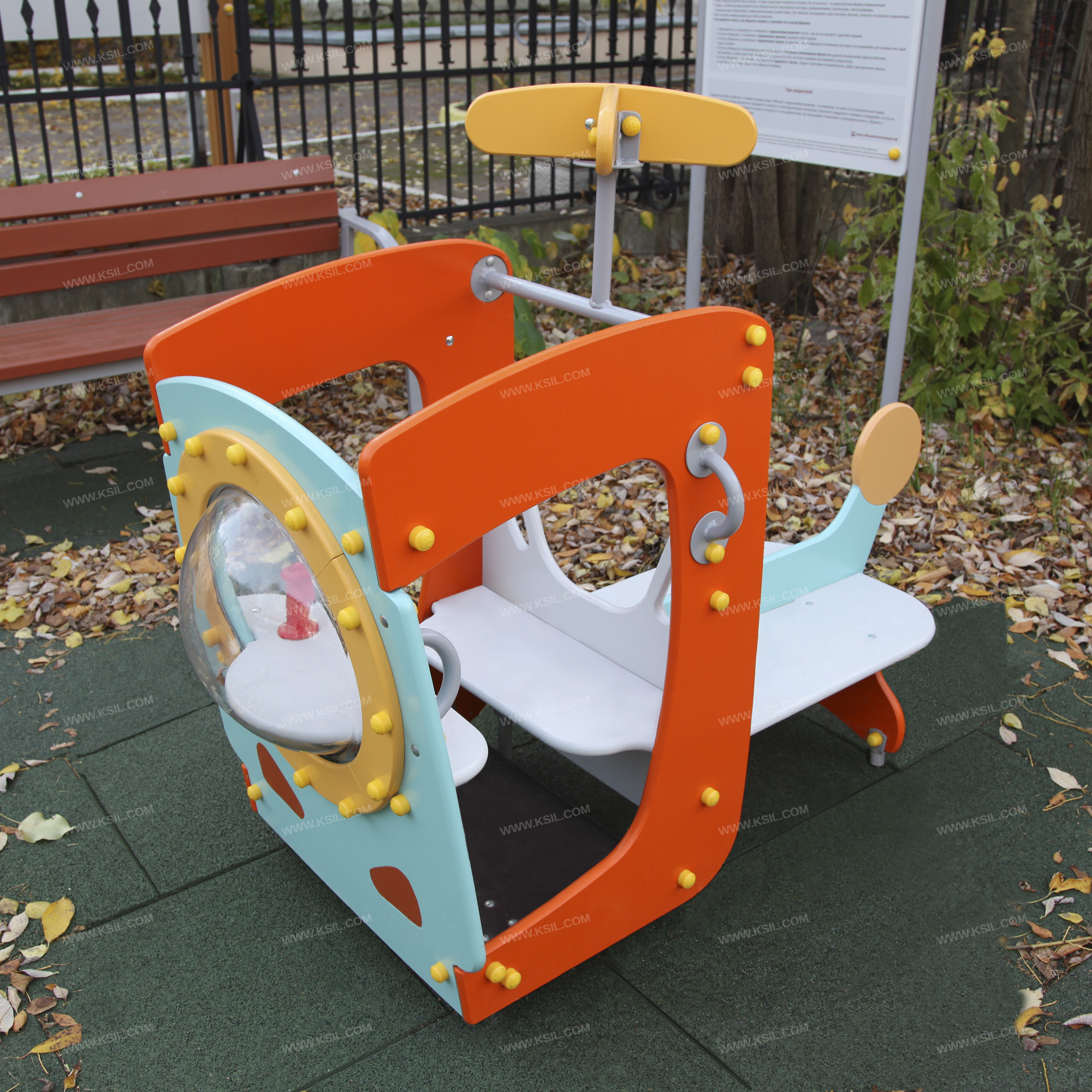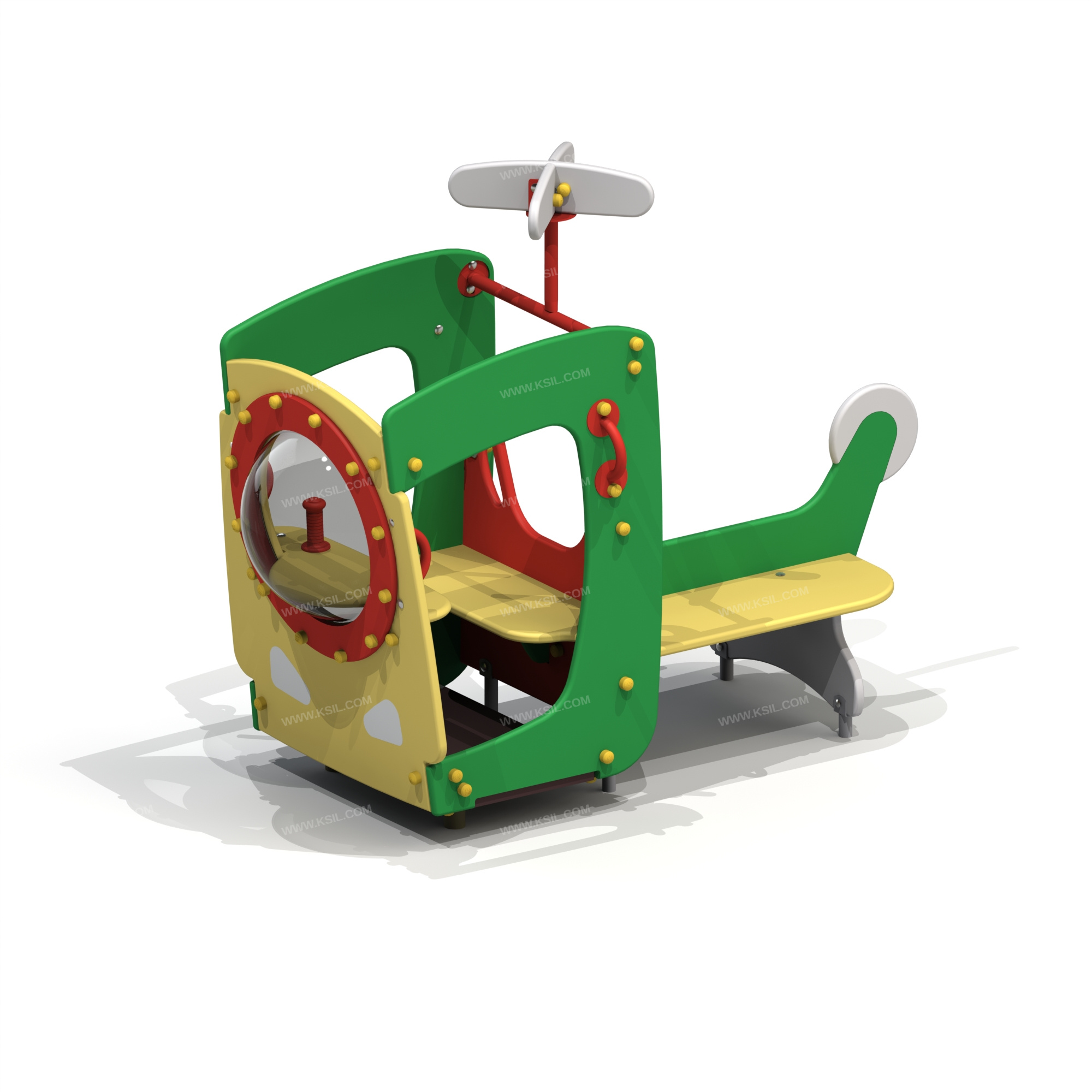 Игровое оборудование должно представлять собой модульную сборно-разборную конструкцию, в виде вертолетика и состоит из башни с пропеллером, имитирующую кабину с хвостовой частью. К башне, имитирующая кабину вертолета, должны быть пристроены: панель управления, боковые борта кабины с входами, передняя стенка с иллюминатором, задняя стенка с отверстиями для рук и пристроенной скамейкой, поручни, перекладина с пропеллером. Хвостовая часть вертолетика должна состоять из двух скамеек, разделенных фигурной спинкой с опорой.