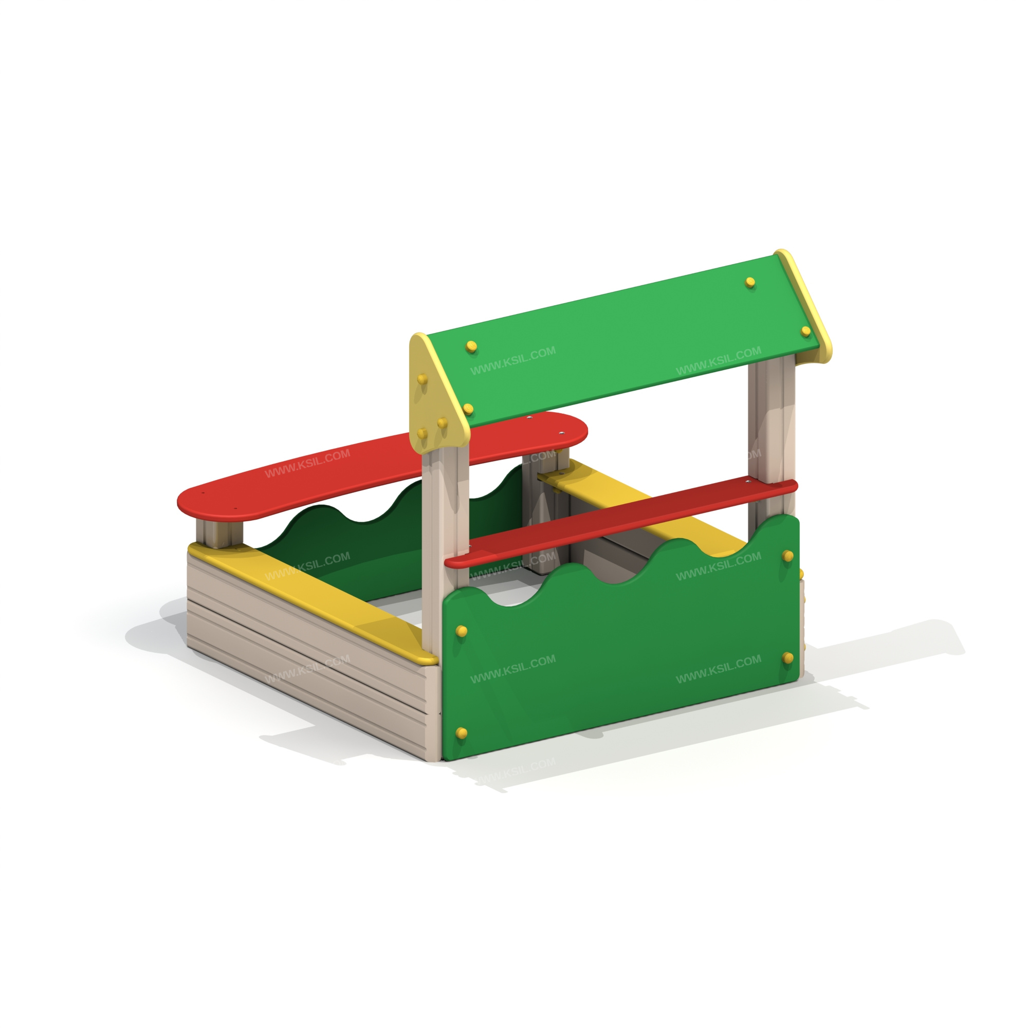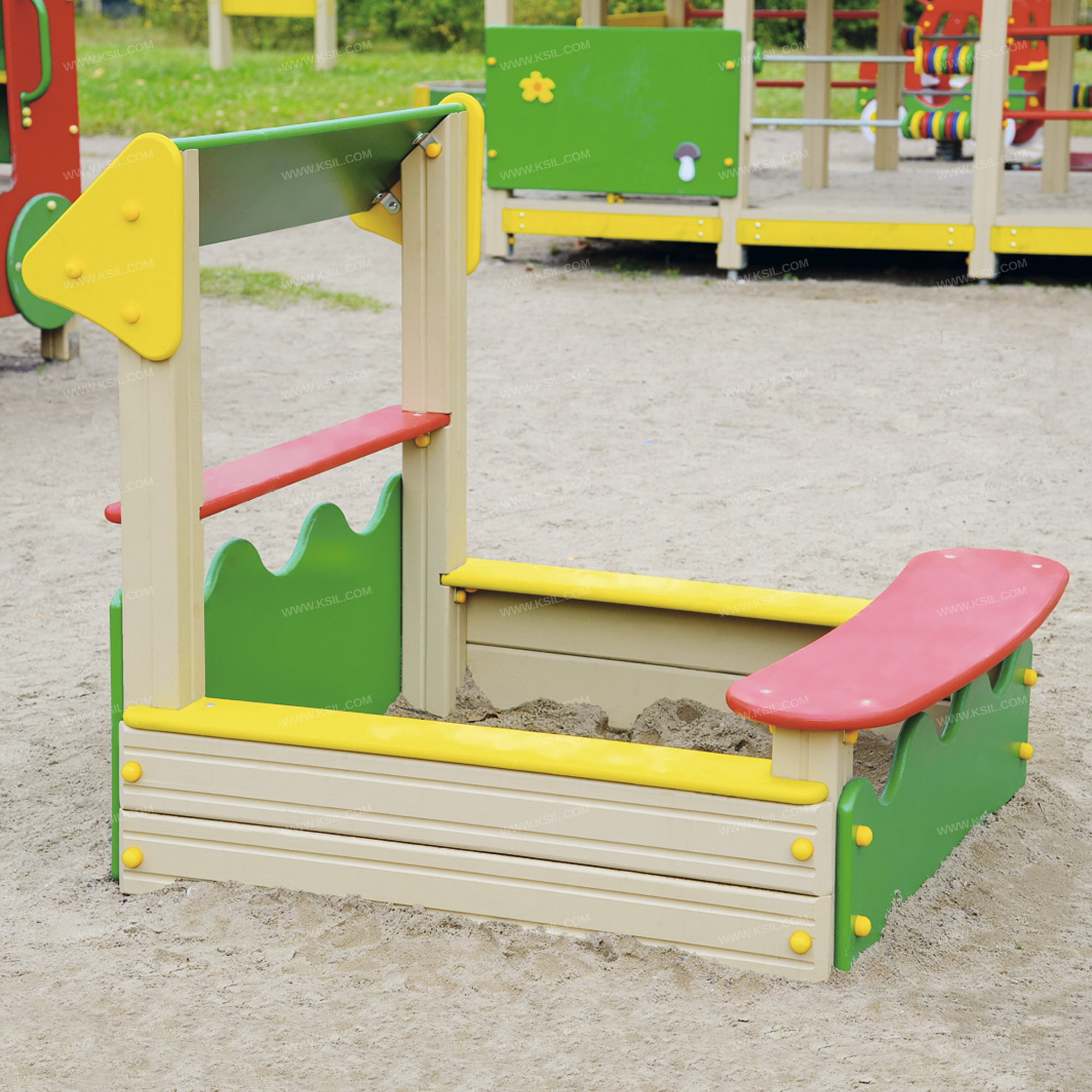 Песочница должна представлять собой устойчивую, модульную конструкцию, обеспечивающую ребенку комфортные условия для игры с песком на открытом воздухе. Песочница должна быть стилизована под тематику «полянка» и состоять из несущих столбов с прикрепленными к ним по периметру ограждениями с волнообразной верхней гранью, бортами, сиденьями. На 2-х столбах должен быть установлен спойлер с фанерными угловыми накладными элементами.Несущие разновысокие столбы должны быть выполнены из клееного деревянного бруса сечением не менее 100х100 мм и иметь скругленный профиль с канавкой посередине. Снизу столб должен заканчиваться металлическим оцинкованным подпятником диаметром не менее 42 мм, который бетонируется в землю.Спойлер, сиденья, ограждения должны быть изготовлены из влагостойкой фанеры толщиной не менее 21 мм. Борта песочницы должны быть выполнены из деревянной доски толщиной не менее 40 мм.