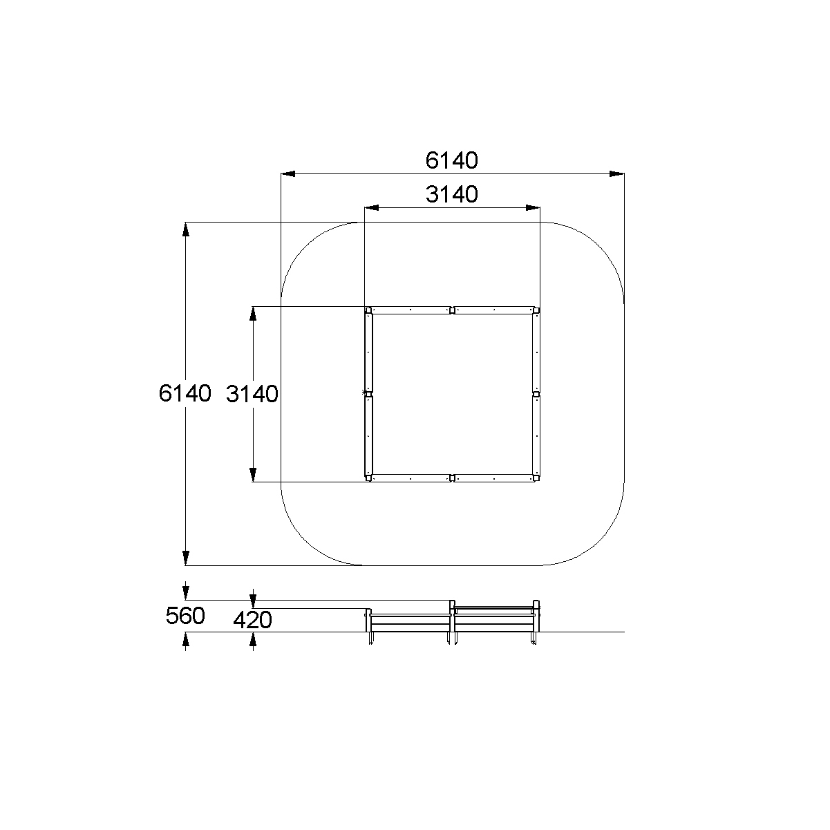 - Габаритные размеры: 3140x3140x560 мм