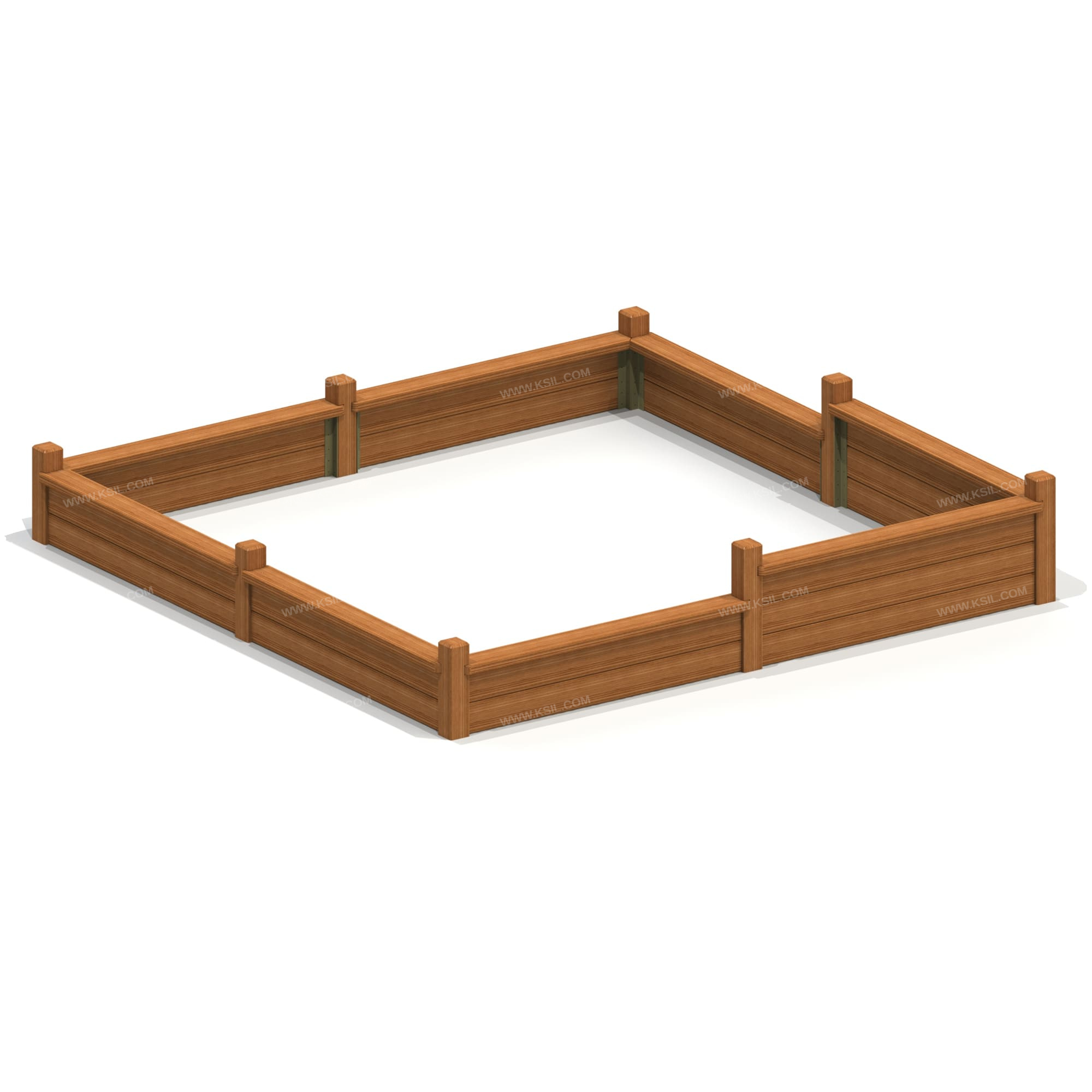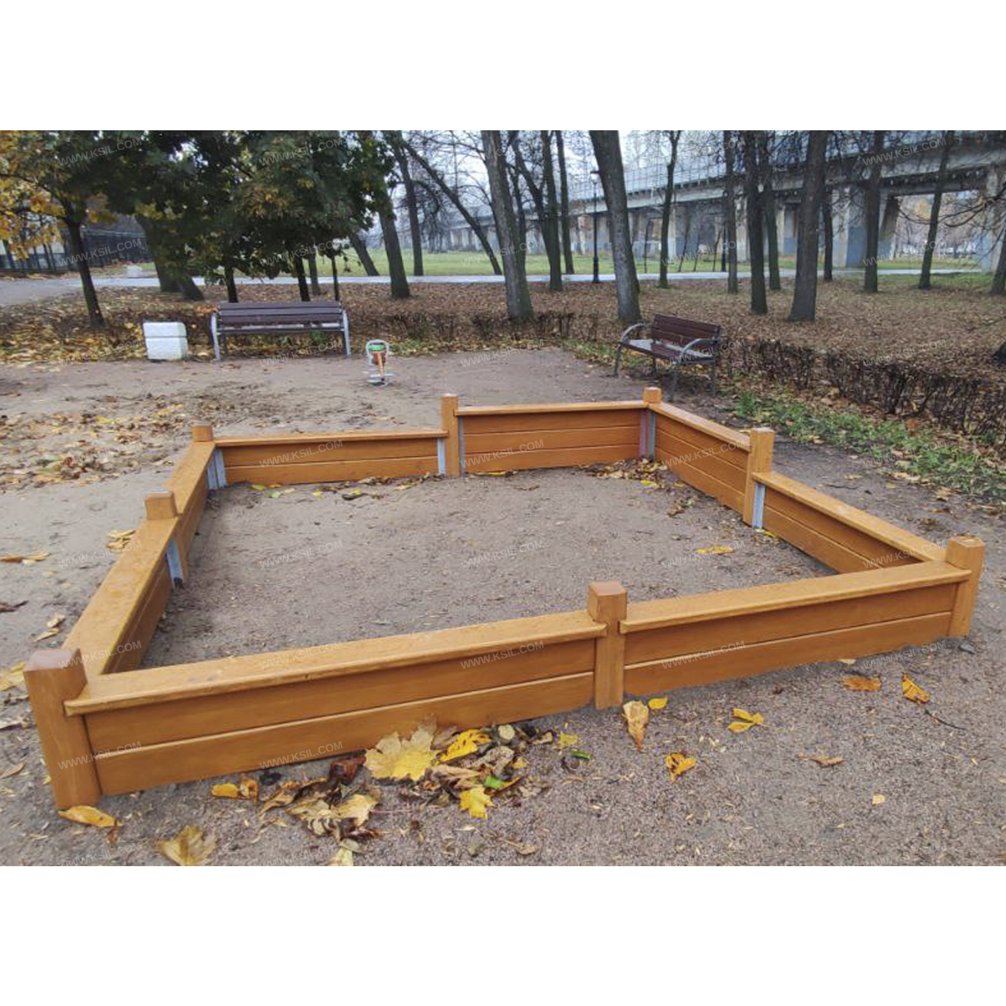 Песочница должна представлять собой устойчивую конструкцию, обеспечивающую ребенку комфортные условия для игры с песком на открытом воздухе. Песочница должна состоять из 8-ми несущих стоек, 18-ти бортовых и 8-ми накрывочных досок.Несущие разновысокие столбы должны быть выполнены из клееного деревянного бруса лиственницы сечением не менее 100х100 мм и иметь скругленный профиль. Бортовые и накрывочные доски должны быть выполнены из доски сечением не менее 140х40 мм. Бортовые доски должны быть связаны со столбиками металлическими уголками сечением не менее 40х40 мм, которые закрепляются в грунте, для устойчивости песочницы.