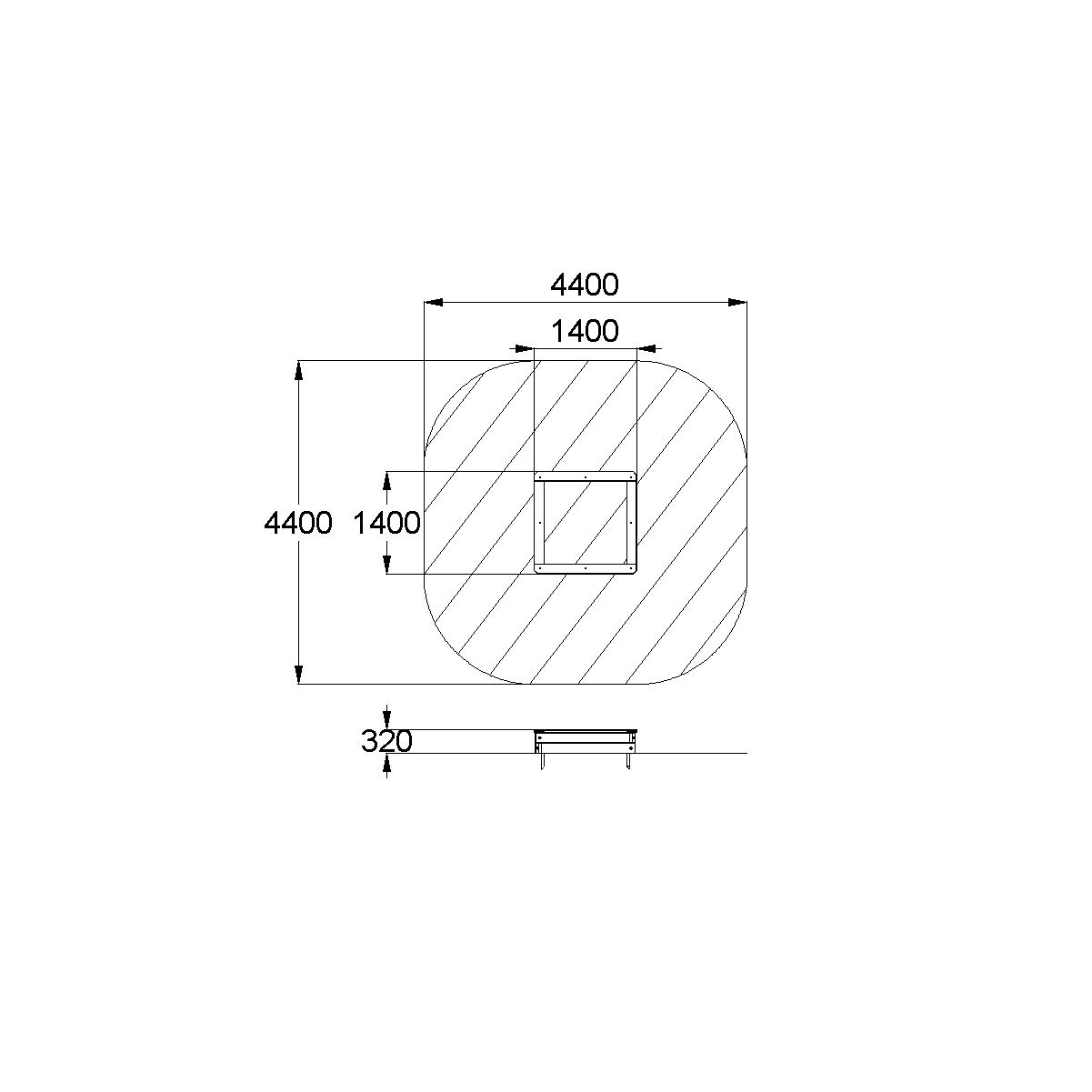 - Габаритные размеры: 1400x1400x320 мм