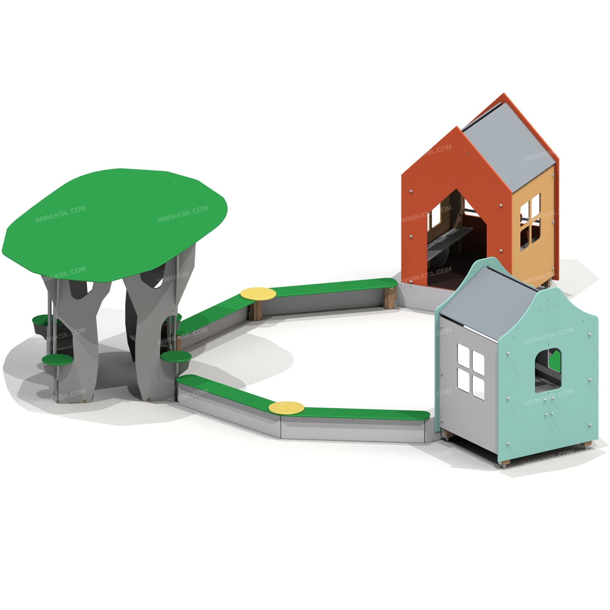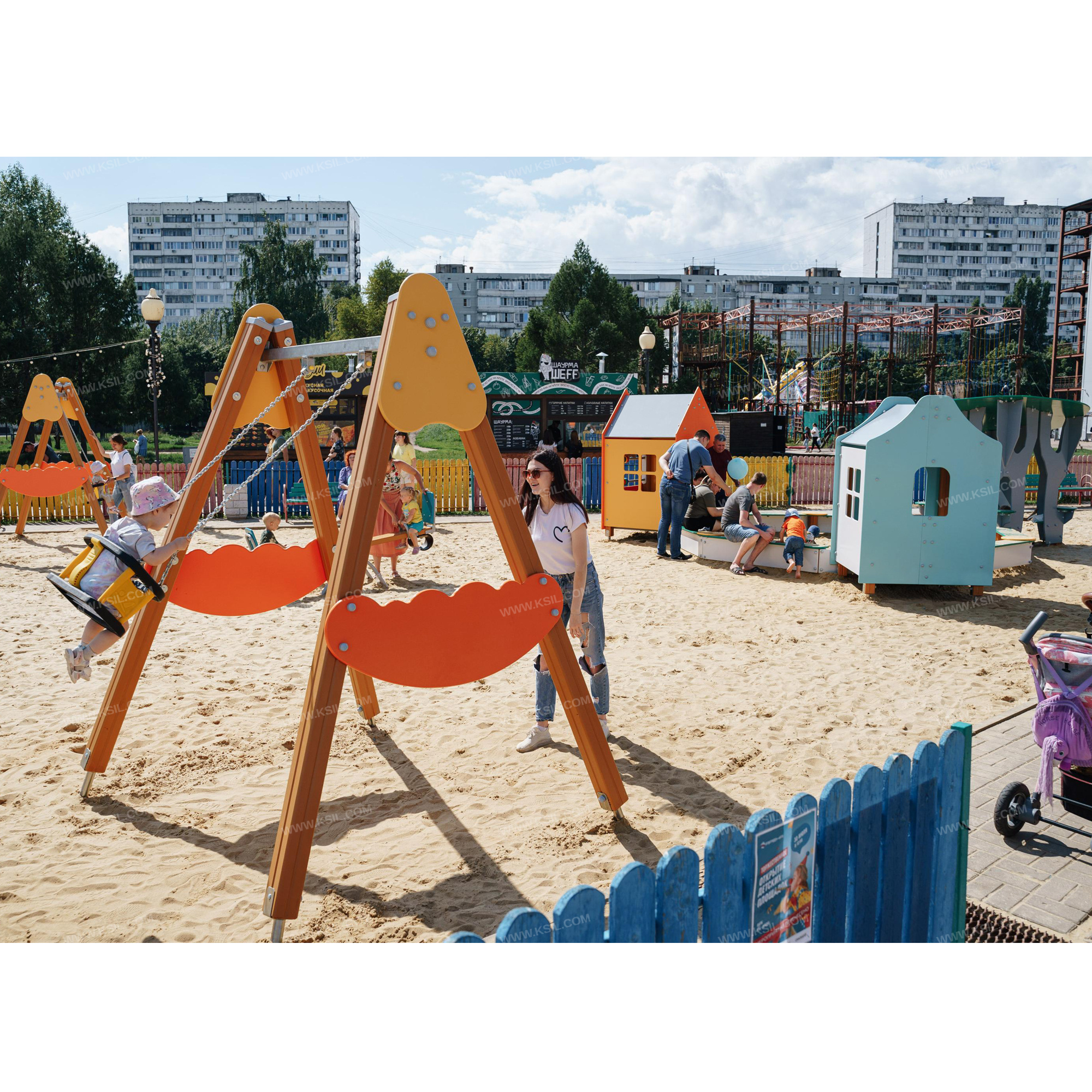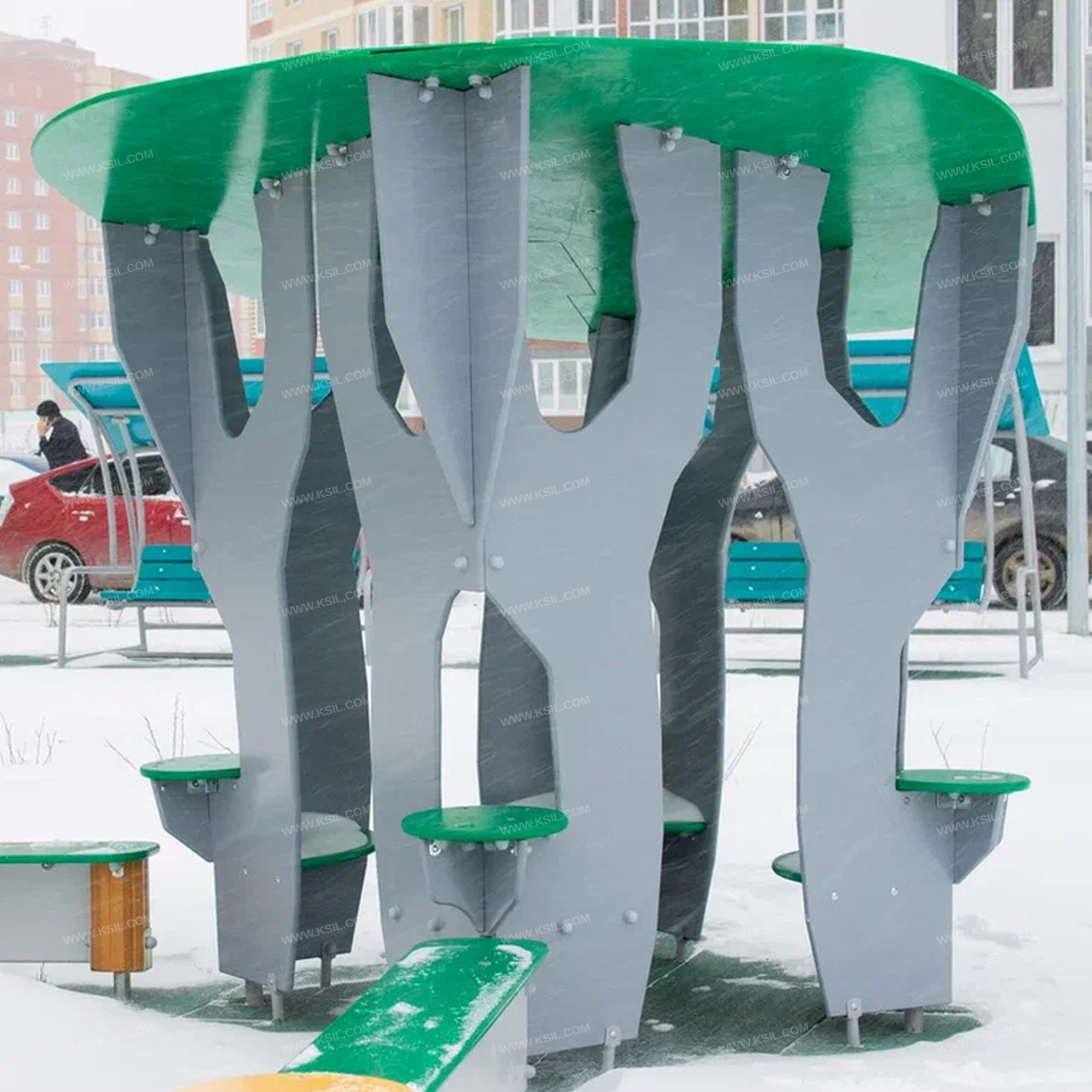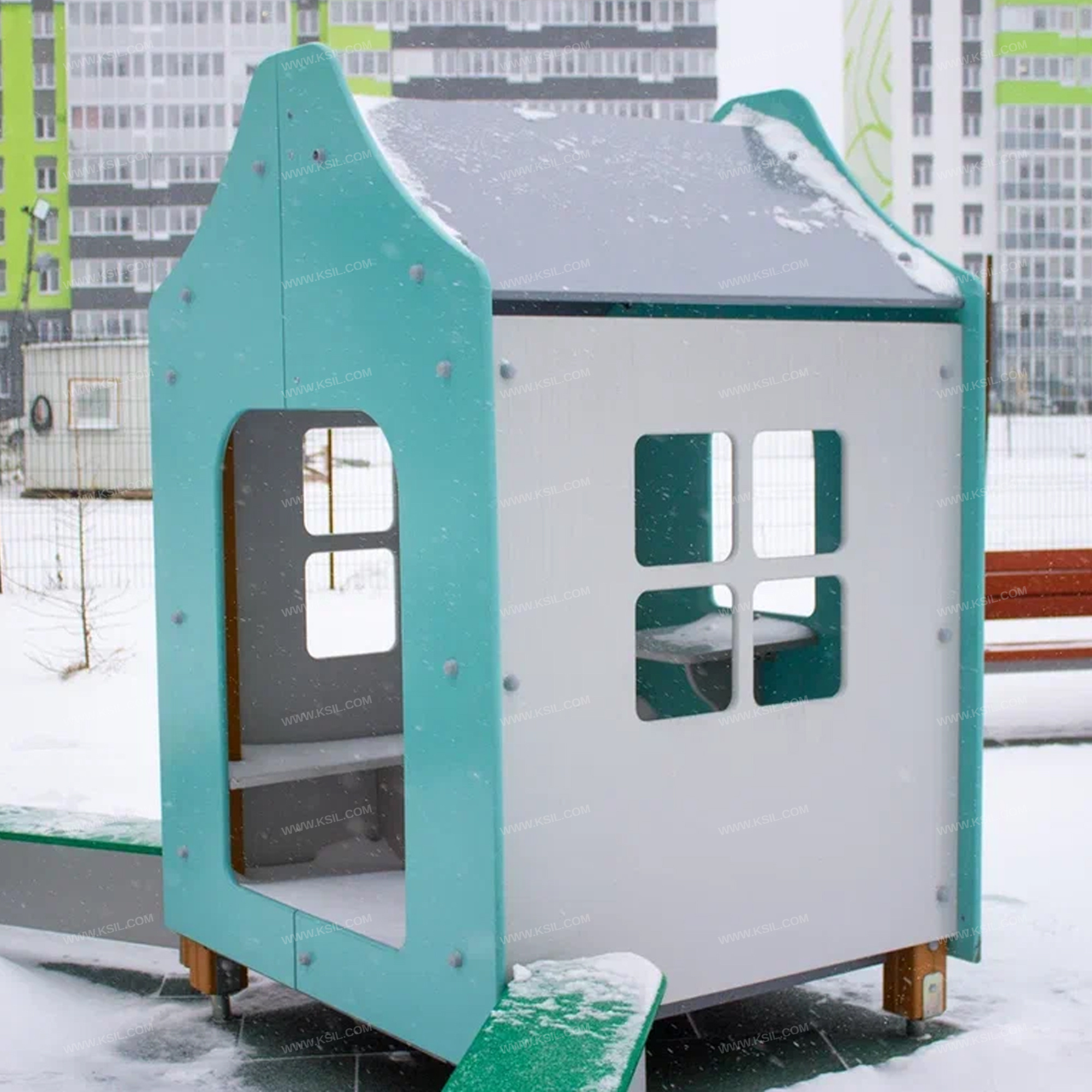 Песочный дворик должен представлять собой устойчивую, модульную конструкцию из игровых и развивающих элементов в том числе два домика и дерево, обеспечивающие ребенку комфортные условия для игры на открытом воздухе Песочный дворик должен состоять из двух домиков, песочницы состоять из 6-ти несущих стоек, 6-ти бортов, 6-ти накрывочных бортов и 3-х круглых сидений, выполненных из влагостойкой фанеры толщиной не менее 21 мм, конструкция имитирующая дерево в виде арки у основания которого 4-е круглых сиденья.Несущие стойки песочницы должны быть выполнены из клееного деревянного восьмигранного бруса сечением не менее 136х136 мм и иметь скругленный профиль с канавкой посередине. Снизу столб должен заканчиваться металлическим оцинкованным подпятником диаметром не менее 42 мм, который бетонируется в землю.Домики, с двускатной крышей, с высотой площадки не менее 300 мм, должны быть пристроены к песочнице. Отверстия в домиках в форме геометрических фигур должны служить входом и окошками домика.Несущие столбы домиков и дерева должны быть выполнены из клееного деревянного бруса сечением не менее 100х100 мм и иметь скругленный профиль с канавкой посередине. Снизу столб должен заканчиваться металлическим оцинкованным подпятником диаметром не менее 42 мм, который бетонируется в землю. Пол домиков, крона дерева и сиденья должны быть изготовлен из влагостойкой ламинированной нескользящей фанеры толщиной не менее 21 мм.