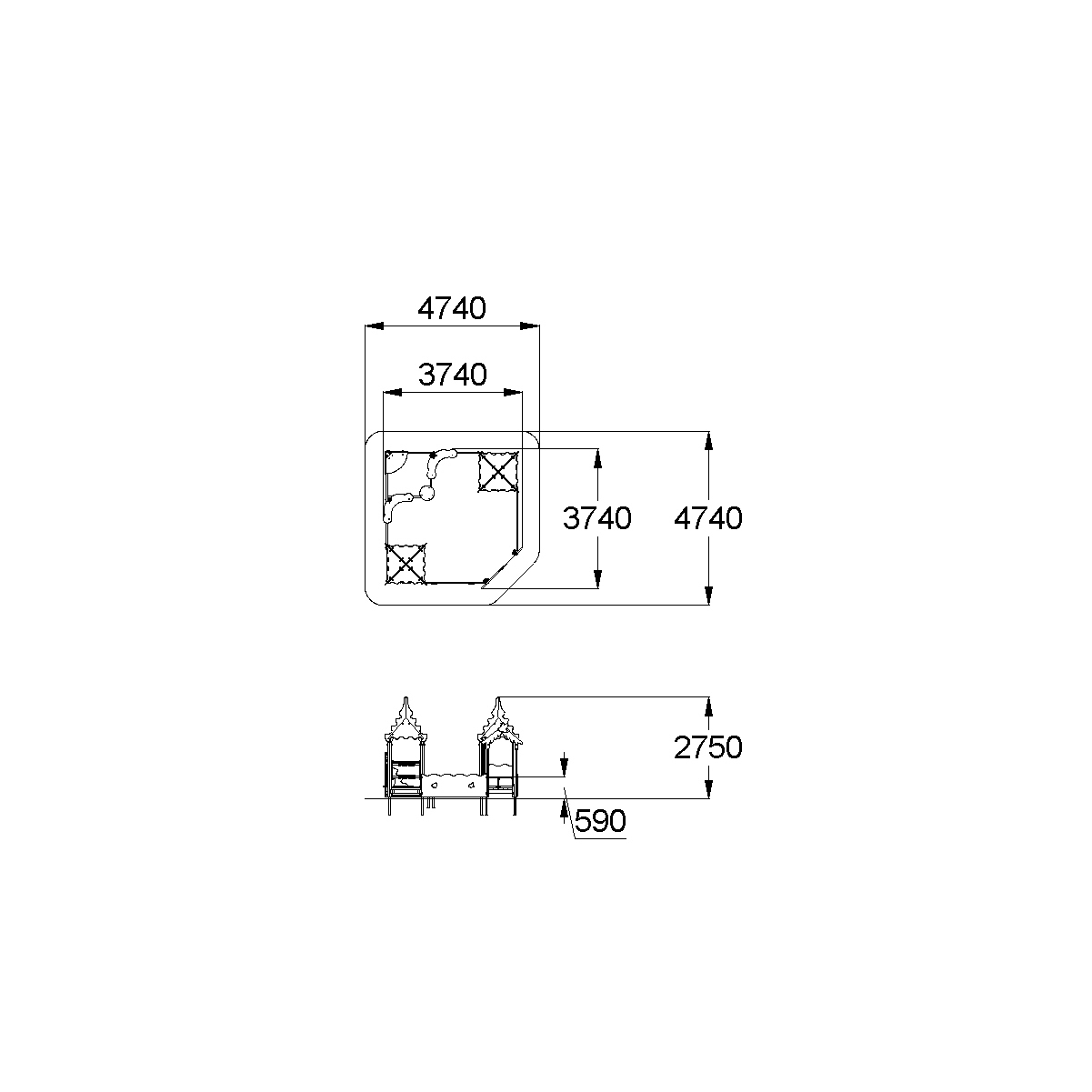 - Габаритные размеры: 3740x3740x2750 мм