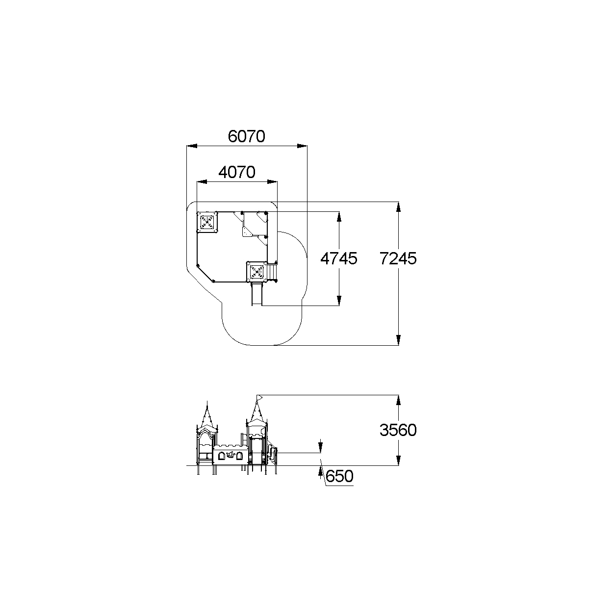 - Габаритные размеры: 4745x4070x3560 мм