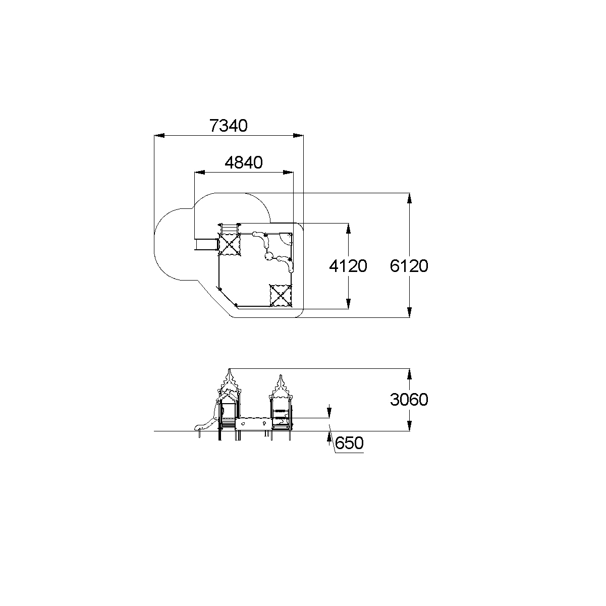 - Габаритные размеры: 4840x4120x3060 мм