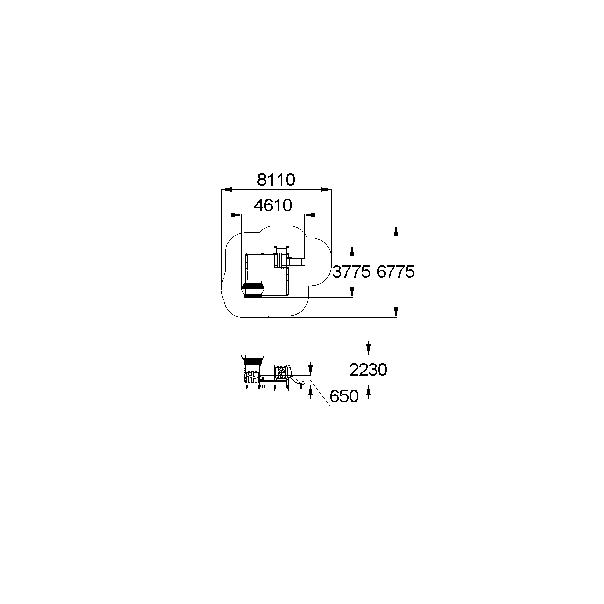 - Габаритные размеры: 4610x3775x2230 мм