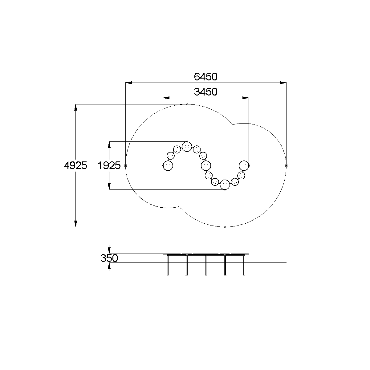 - Габаритные размеры: 3450x1925x350 мм