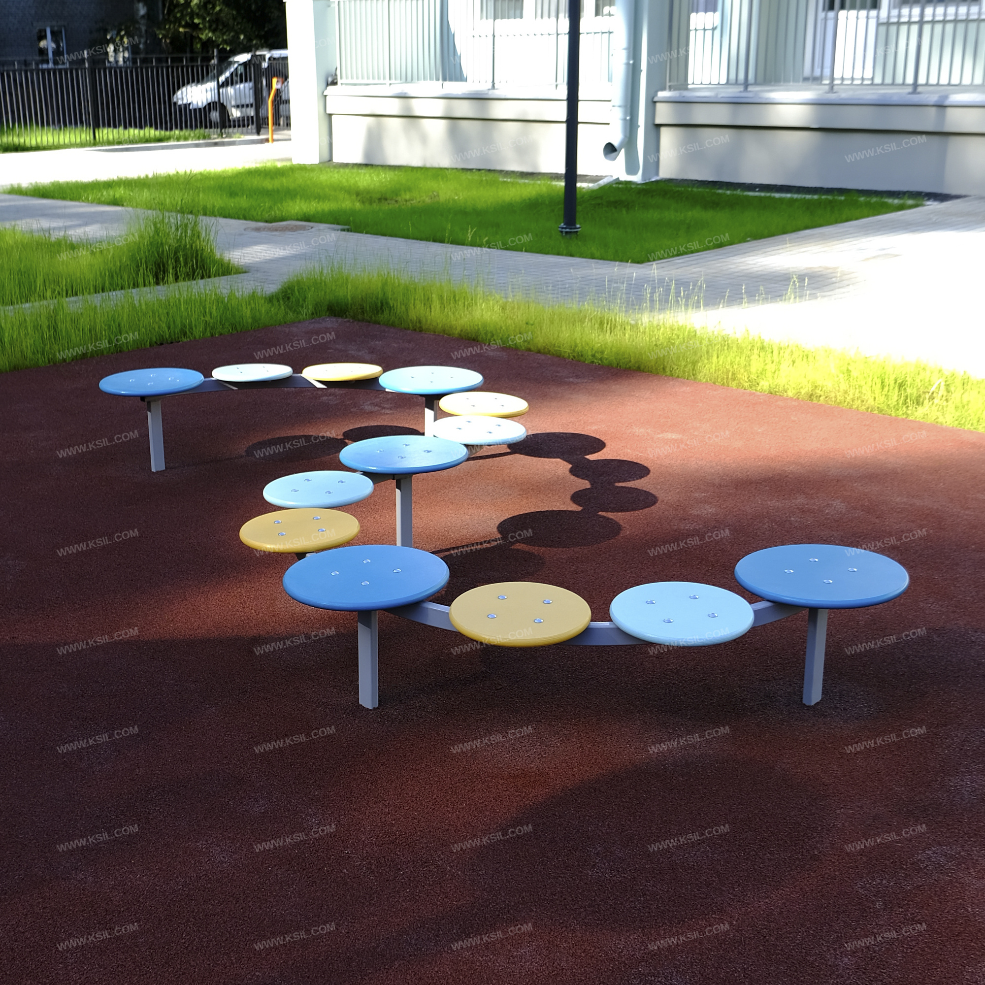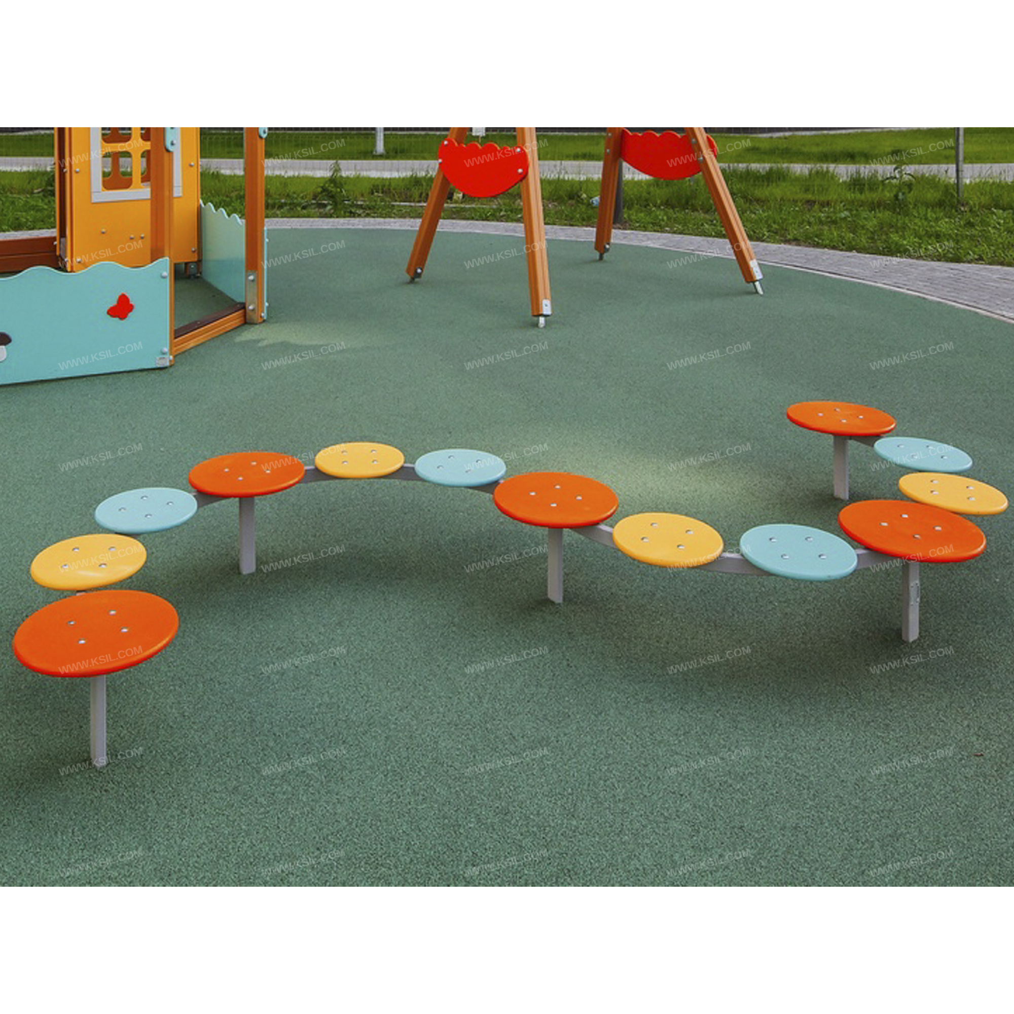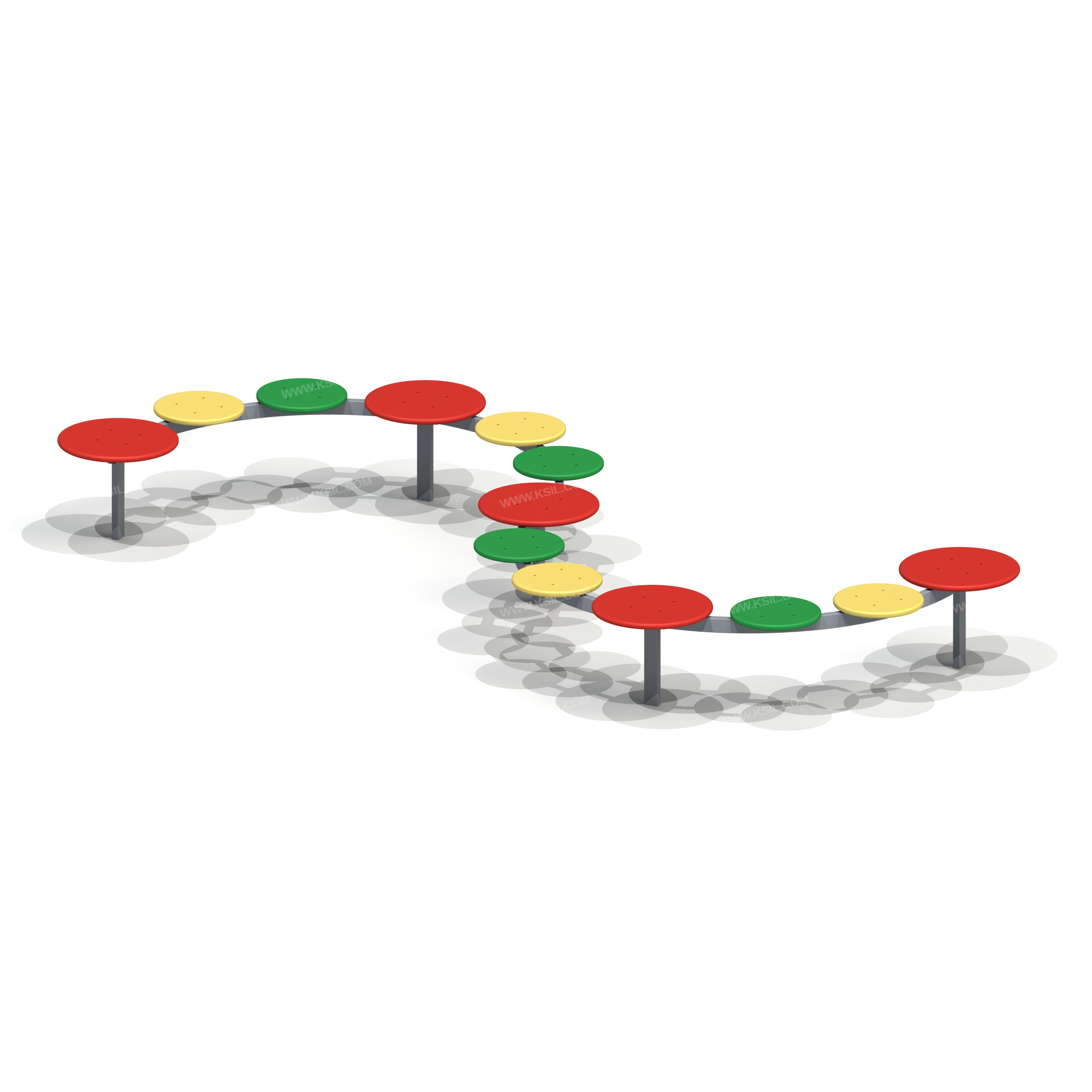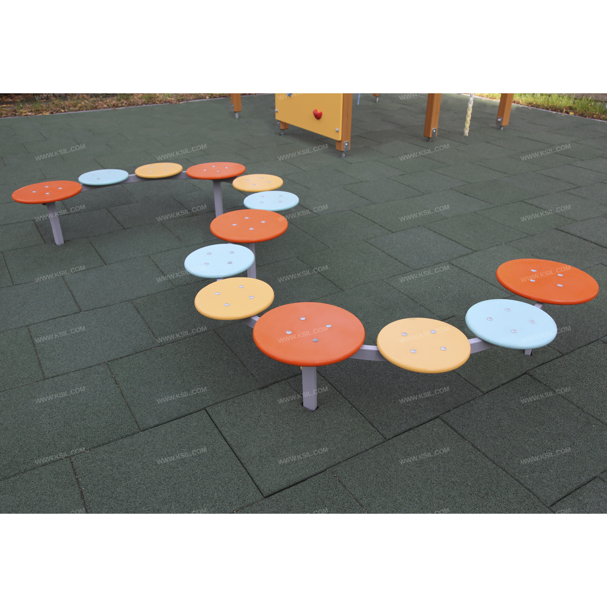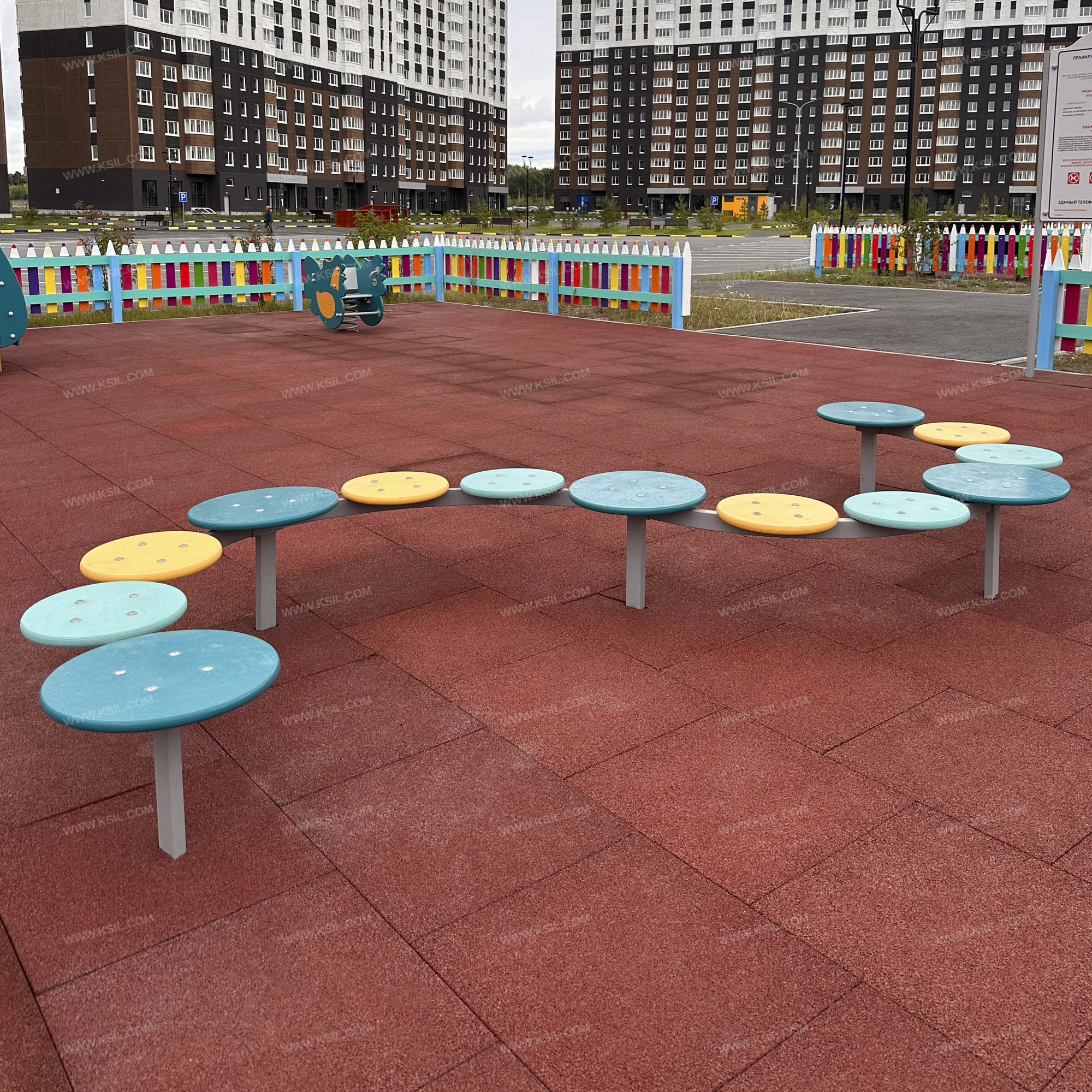 «Дорожка «Змейка» должна представлять собой устойчивую конструкцию, состоящую из каркаса, 5-ти опорных стоек из металлической профильной трубы сечением не менее 50х25 мм, основание которых бетонируется в землю, 5-ти больших сидений «Пуговица большая» и 8-ми малых сидений «Пуговица малая» круглой формы, диаметрами не менее 300 мм и не менее 400 мм. Сиденья и опорные стойки должны быть расположены таким образом, чтобы прохождение дорожки осуществлялось по змееобразной траектории. Стойки и каркас должны быть выполнены из профильной трубы сечением не менее 50х25 мм, основание которых бетонируется в землю.Сиденья должны быть изготовлены из влагостойкой фанеры толщиной не менее 21 мм.