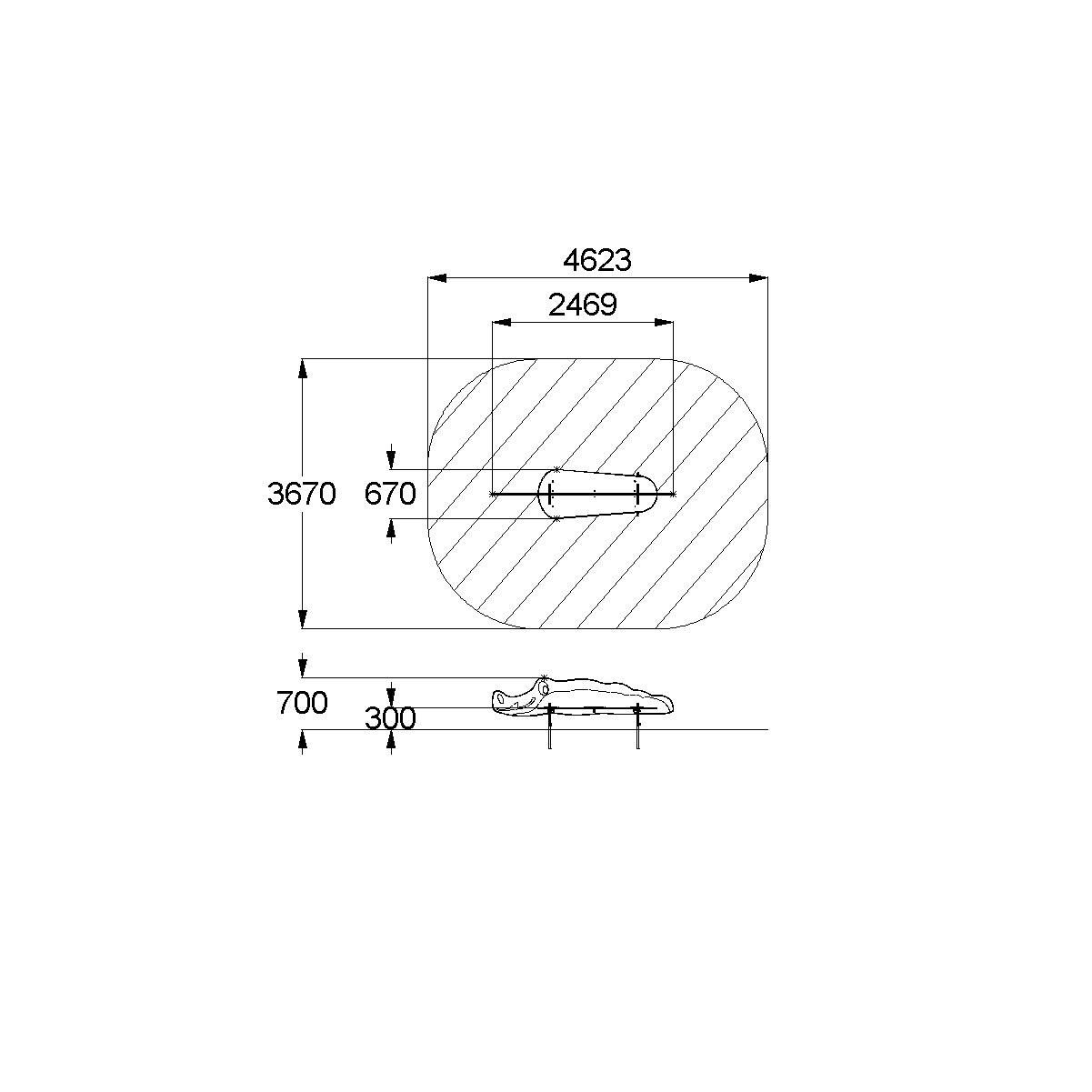 - Габаритные размеры: 2469x670x700 мм