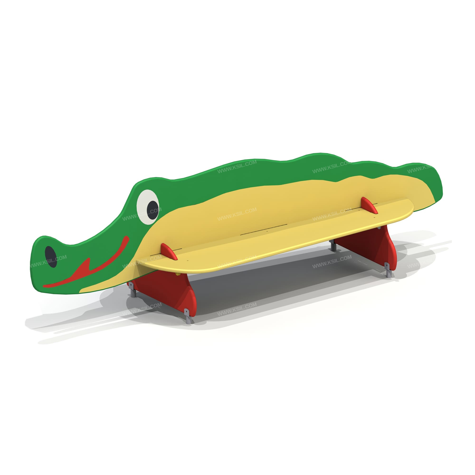 Скамейка в виде крокодила должна представлять собой устойчивую конструкцию, предназначенную для отдыха и состоять из сидений, спинки, опор, установленных на металлических подпятниках. Подпятники в количестве не мене 4-х штук должны быть выполнены из металлической трубы диаметром не менее 26 мм и листового металла толщиной не менее 4 мм. Спинка должна быть выполнена в виде крокодила с художественным оформлением, с двух сторон от спинки должны быть расположены сидения, поперек сидений расположены опоры. Спинка и сиденья должны крепиться в пазы опор. Сиденье, спинка, опоры должны быть выполнены из влагостойкой фанеры толщиной не менее 21 мм.