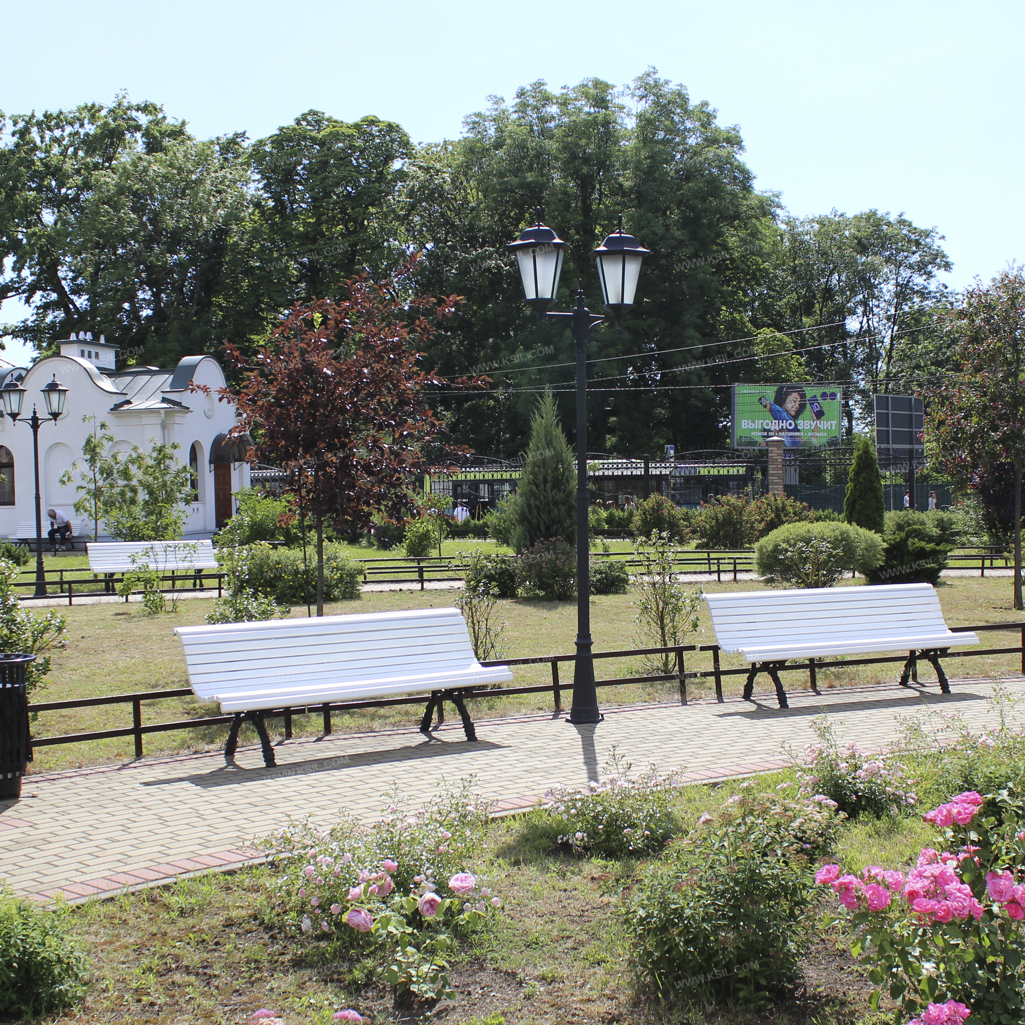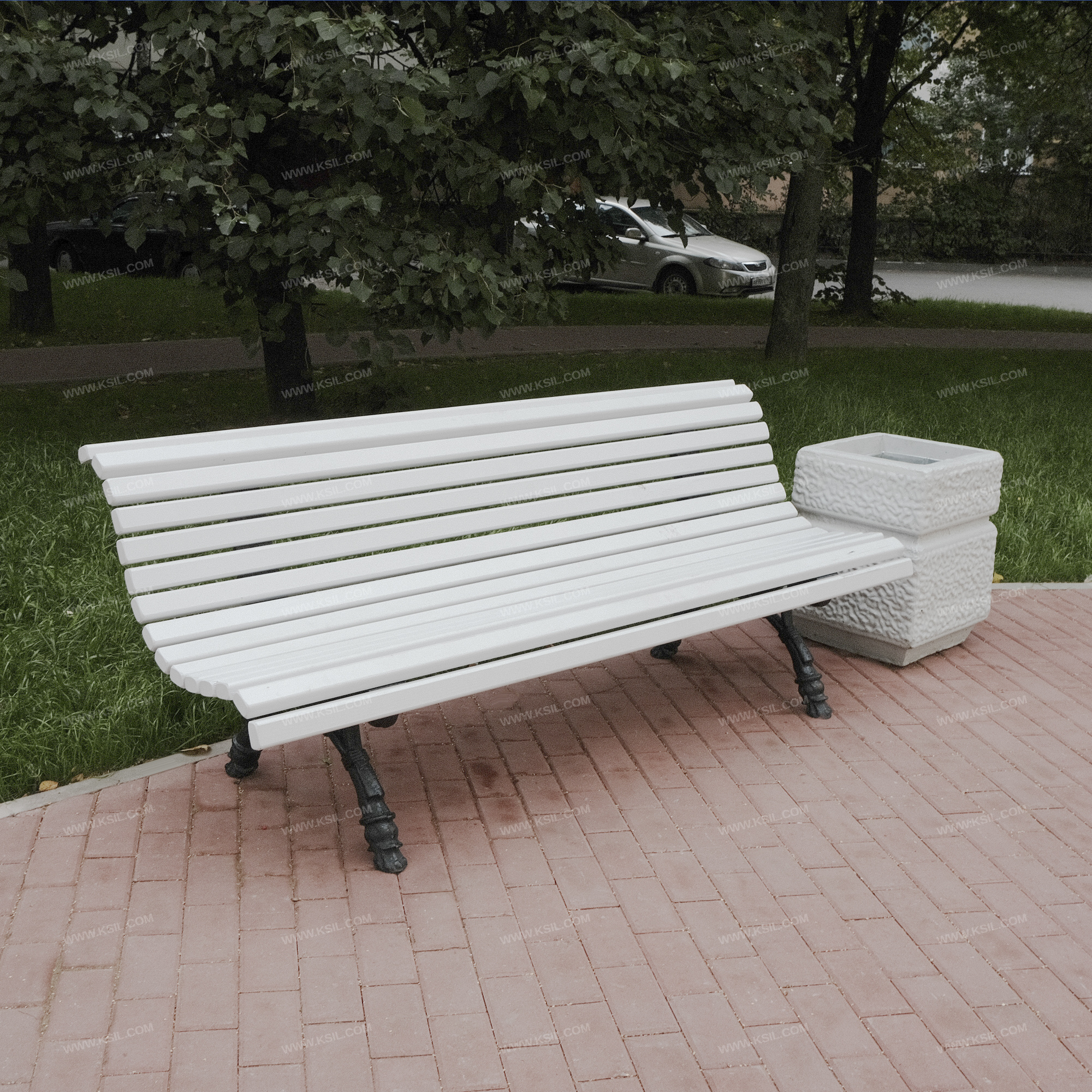 Диван садово – парковый должен представлять собой устойчивую конструкцию, предназначенную для отдыха и состоять из сиденья со спинкой установленных на 2-х монолитных фигурных чугунных ножках с орнаментом. Сиденье и спинка должны быть выполнены из деревянных брусков сечением не менее 50х30 мм.