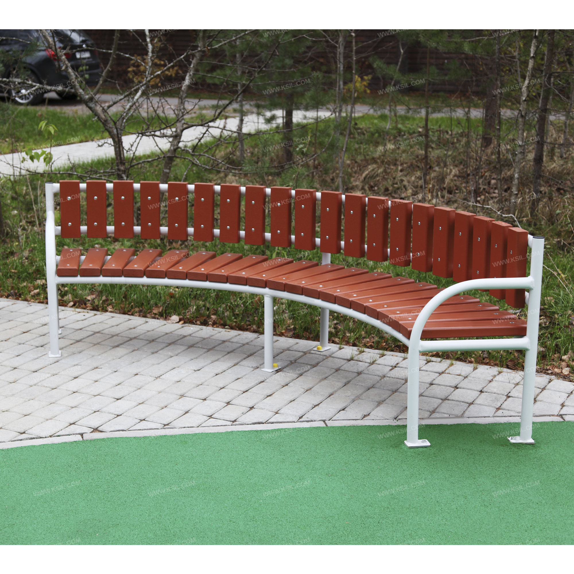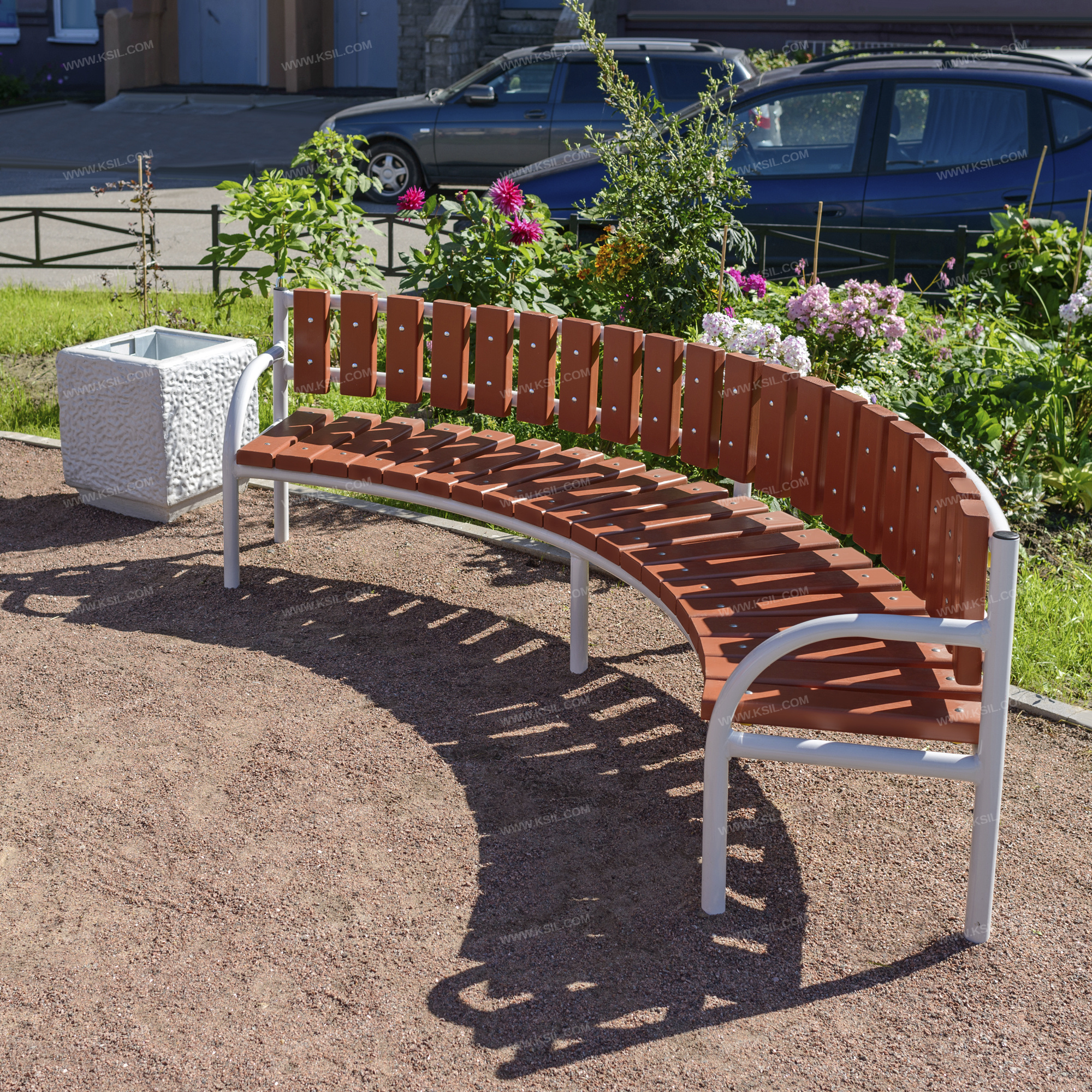 Диван садово – парковый в форме четверти круга должен представлять собой устойчивую конструкцию, предназначенную для отдыха и состоять из сиденья со спинкой установленных на металлическом окрашенном каркасе. Каркас в форме четверти круга должен состоять из 3-х ножек с креплением для спинки и для сиденья с подлокотниками. Спинка должна быть выполнена из деревянных досок сечением не менее 300х100х40 мм в количестве не менее 20-ти штук. Сиденье должно быть выполнено из деревянных досок сечением не менее 515х100х40 мм в количестве не менее 20-ти штук.