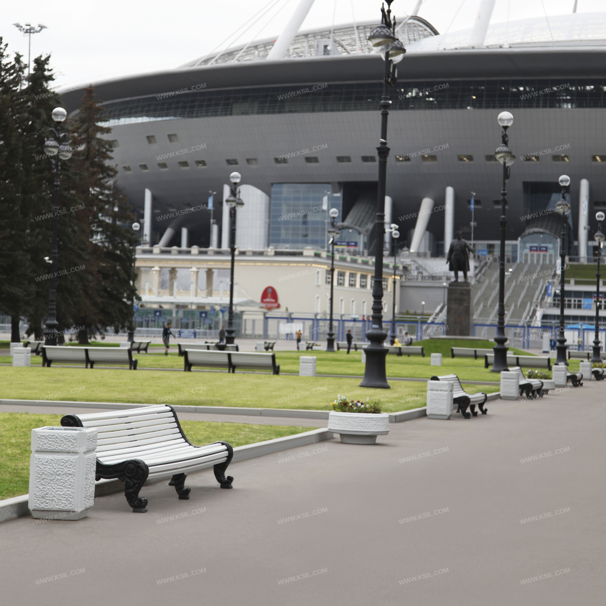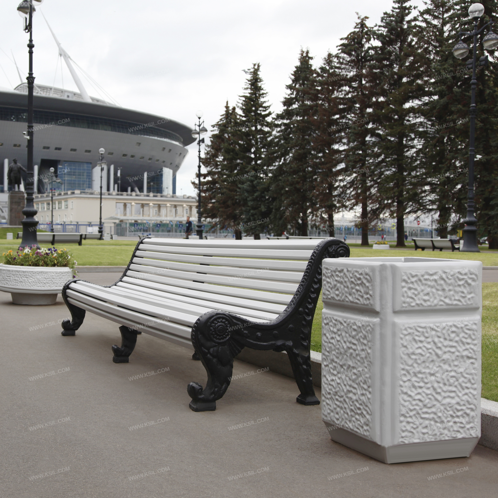 Диван садово – парковый должен представлять собой устойчивую конструкцию, предназначенную для отдыха и состоять из сиденья со спинкой установленных на 3-х монолитных фигурных чугунных ножках с орнаментом. Сиденье и спинка должны быть выполнены из деревянных брусков сечением не менее 50х30 мм.