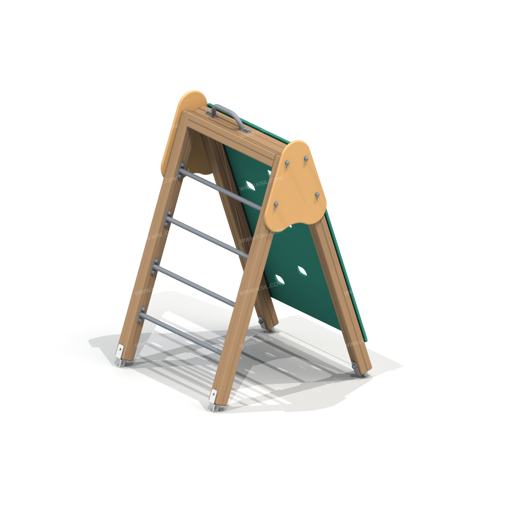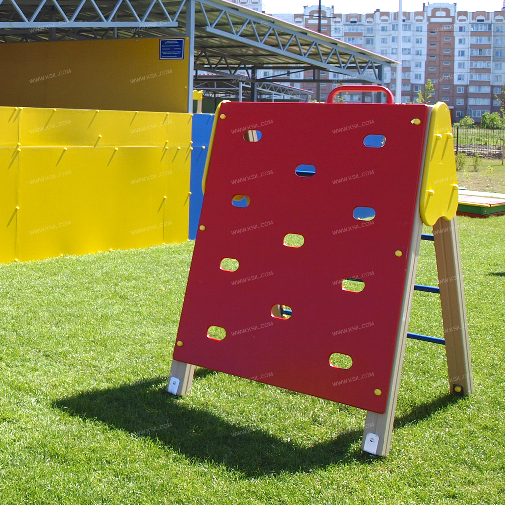 Спортивный комплекс должен представлять собой модульную сборно-разборную конструкцию и состоять из наклонной альпинисткой стенки с отверстиями для рук и ног, наклонной шведской стенки, поручня, 2-х угловых накладных элементов. Все оборудование должно крепиться на деревянном каркасе. Каркас комплекса должен быть выполнен из клееного деревянного бруса сечением не менее 100х100 мм, имеющий скругленный профиль с канавкой посередине. Снизу столб должен заканчиваться металлическим оцинкованным подпятником диаметром не менее 42 мм, который бетонируется в землю.Альпинистская стенка должна быть изготовлена из влагостойкой окрашенной фанеры толщиной не менее 21 мм. Угловые накладные элементы с волнообразной нижней гранью должны быть изготовлены из влагостойкой окрашенной фанеры толщиной не менее 21 мм. Перекладины шведской стенки, поручень должны быть выполнены из металлической трубы диаметром не менее 33 мм.