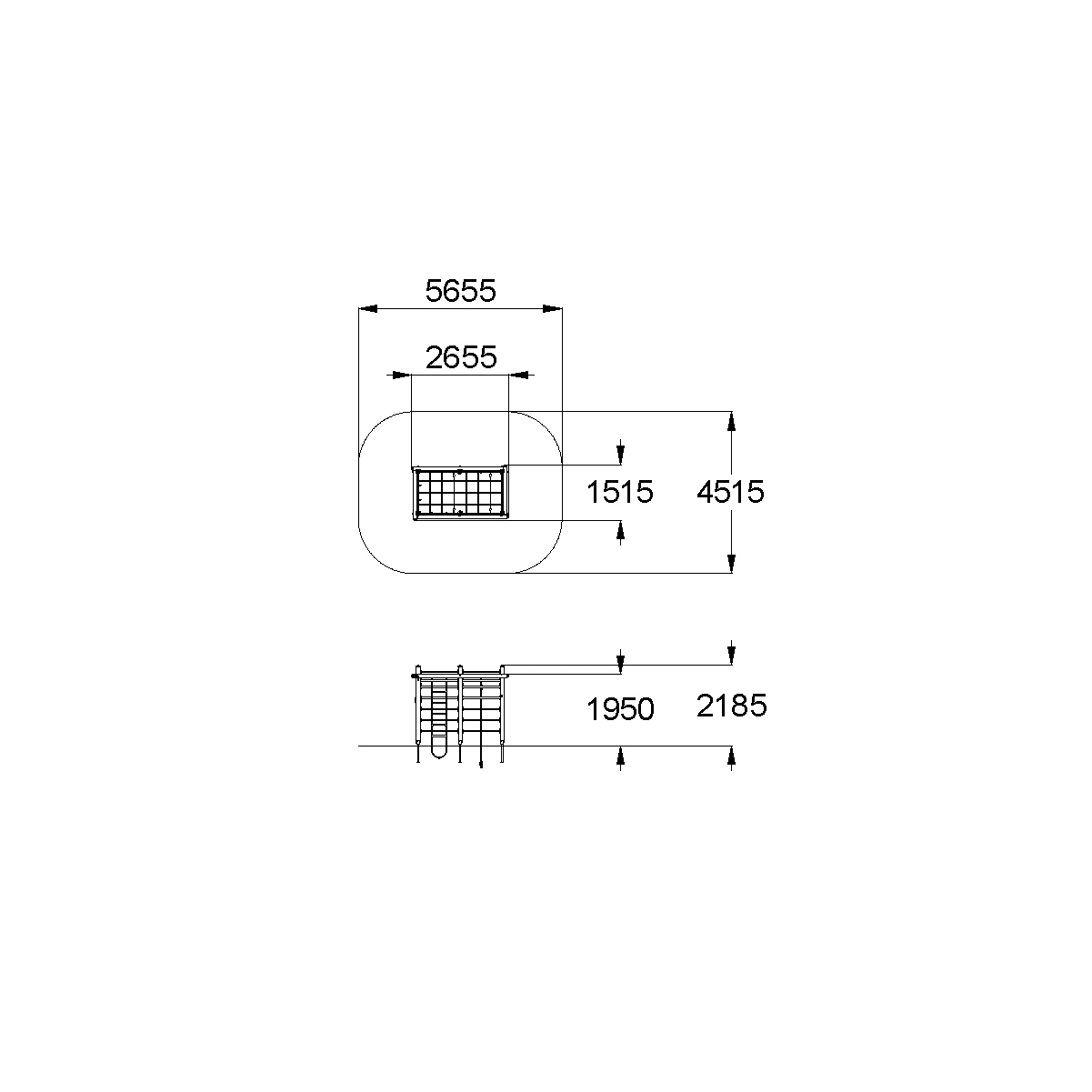Спортивный комплекс должен представлять собой устойчивую модульную сборно-разборную конструкцию, состоящую из несущих столбов, установленных в два ряда, параллельно друг другу. В каждом ряду несущие стойки в верхней части должны быть соединены балками. В верхней части должна быть расположена полипропиленовая сетка, проемы спортивного комплекса должны быть оснащены: шведскими стенками, гимнастическими кольцами, гибкой лестницей, канатом, перекладиной с раскосами.