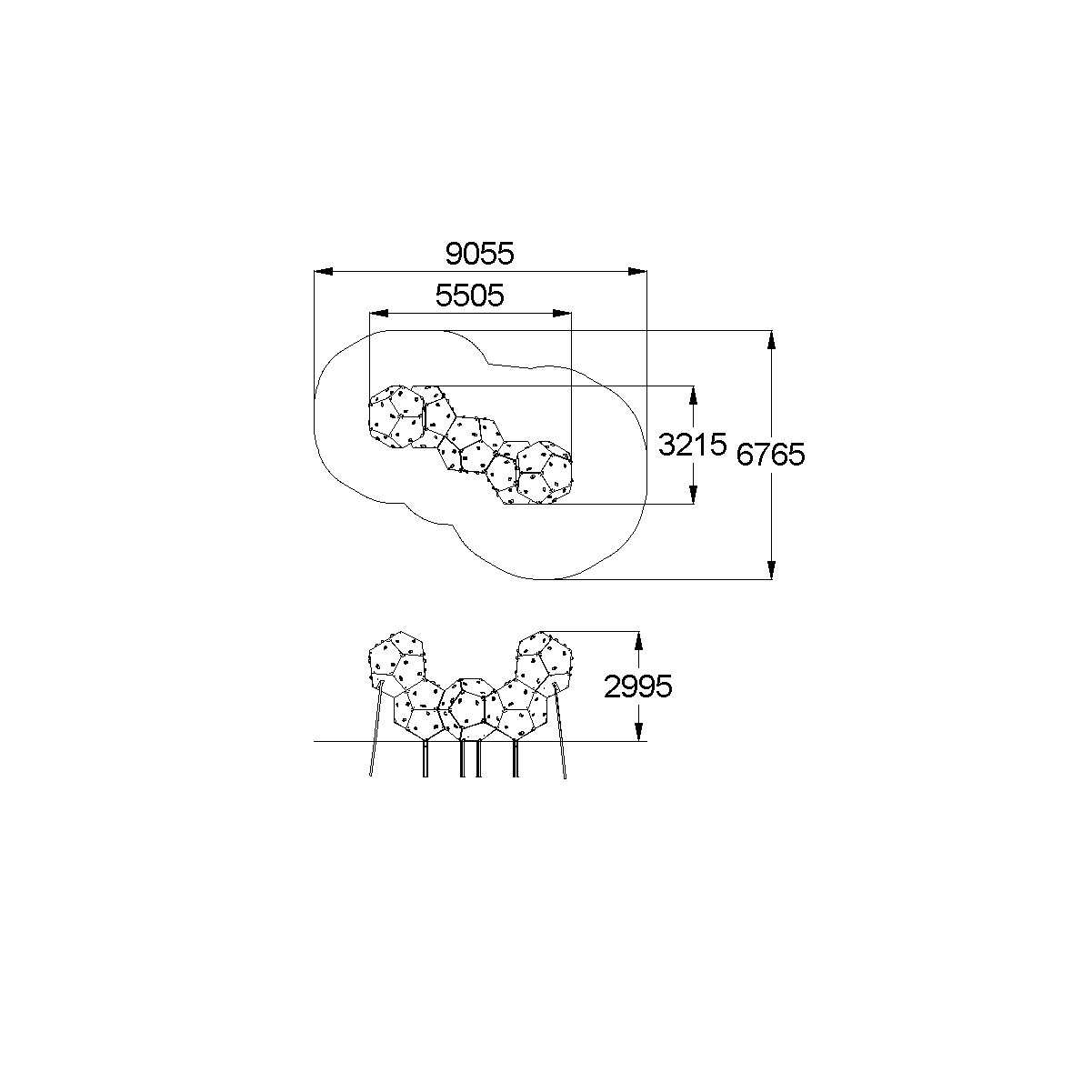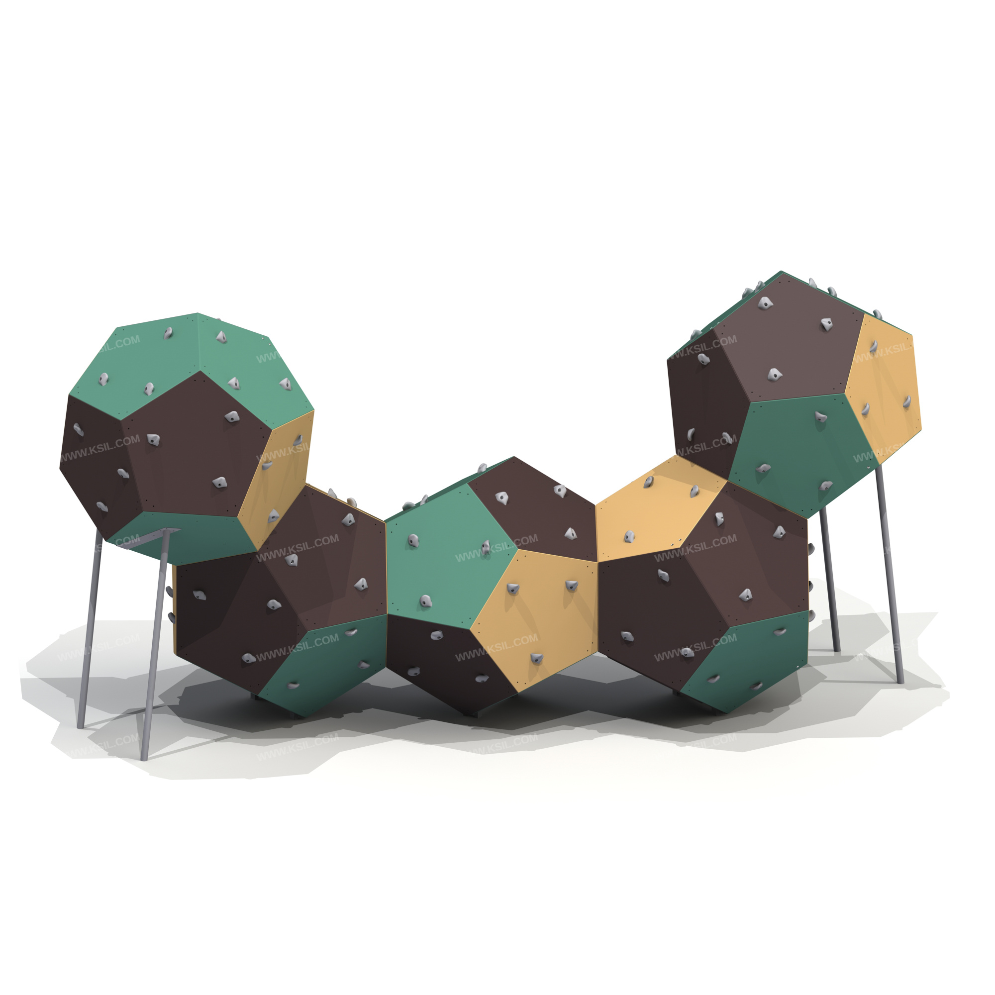 Спортивный комплекс должен представлять собой модульную сборно-разборную конструкцию и представлять собой конструкцию для лазанья, состоящую из пяти додекаэдров с зацепами.Комплекс должен состоять из 50-ти стандартных пятигранников, 8-ми пятигранников – лазов, 2-х пятигранников–люков с крышкой, не менее 126 зацепов и 8-ми опорных стоек. Пятигранники-лазы нужны для возможности монтажа конструкции. Опорные стойки должны бетонироваться в землю, выполнены из профильной трубы 60х30 и круглой трубы диаметром не менее 48 мм.Пятигранники должны быть выполнены из влагостойкой и ламинированной фанеры толщиной не менее 21 мм.