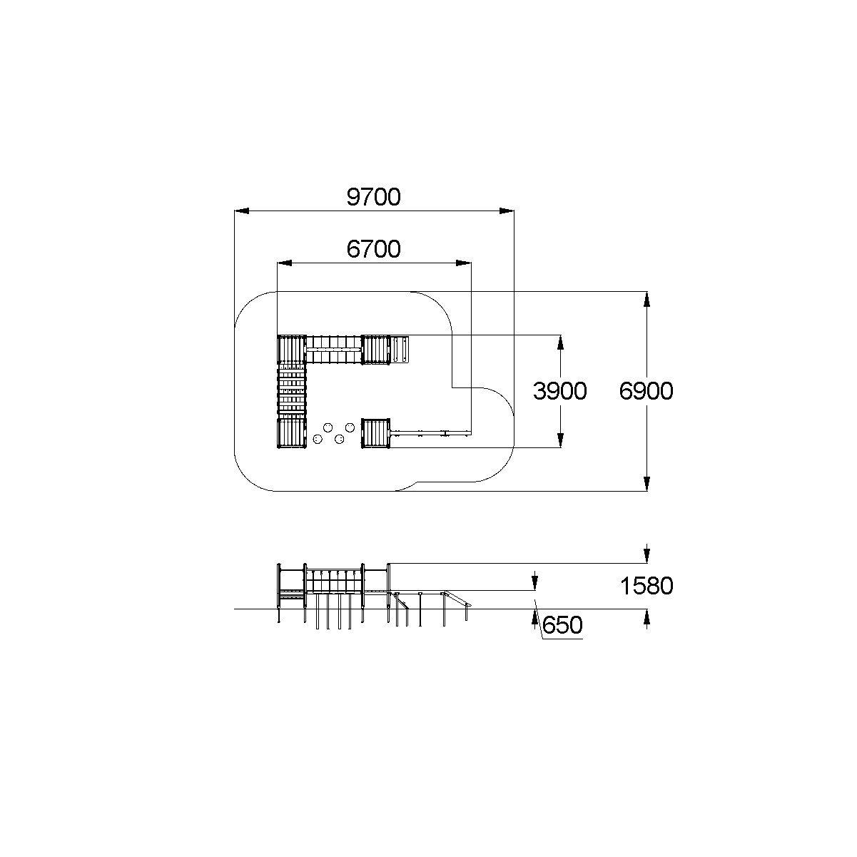 Металлические элементы должны быть покрыты порошковыми красками или подвергнуты гальванизации. Сварные швы должны быть гладкими и исключать возможность травмирования пользователей при контакте. Металлические элементы конструкции не должны состоять из нескольких частей, соединенных между собой.Весь крепеж должен быть оцинкован, все углы закруглены радиусом не менее 3 мм. Концы труб должны быть закрыты.Деревянный брус должен быть склеен под прессом из нескольких отборных сосновых досок, подвергнутых специальной обработке и сушке до мебельной влажности 7-10% для придания особой прочности несущим конструкциям.Деревянные доски хвойных пород дерева должны быть подвергнуты специальной обработке и сушке до мебельной влажности 7-10% для придания особой прочности несущим конструкциямФанера влагостойкая не ниже I сорта изготовленная из шлифованного березового шпона повышенной водостойкости, склеенного клеем класса эмиссии Е1 с предварительной заделкой (замазкой или вставками) естественных дефектов древесины.Материалы из древесины не должны иметь на поверхности дефектов обработки. Концы труб должны быть закрыты. Заглушки пластиковые на места резьбовых соединений и крышки на верхние основания несущих столбов.Промежутки и стыки между элементами оборудования не должны допускать застревания частей тела и одежды пользователей. В конструкции должна быть предусмотрена возможность доступа взрослого при обстоятельствах, требующих посторонней помощи пользователю.C целью повышения качества и безопасности продукции, в документацию на изделие могут вноситься изменения (изображение, размеры, и т.п.).